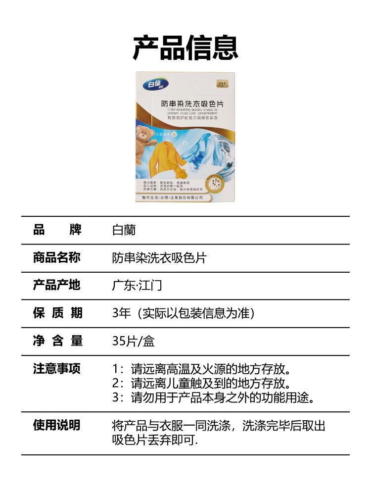 白蘭防串染洗衣吸色片*2盒(35片/盒)
