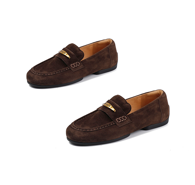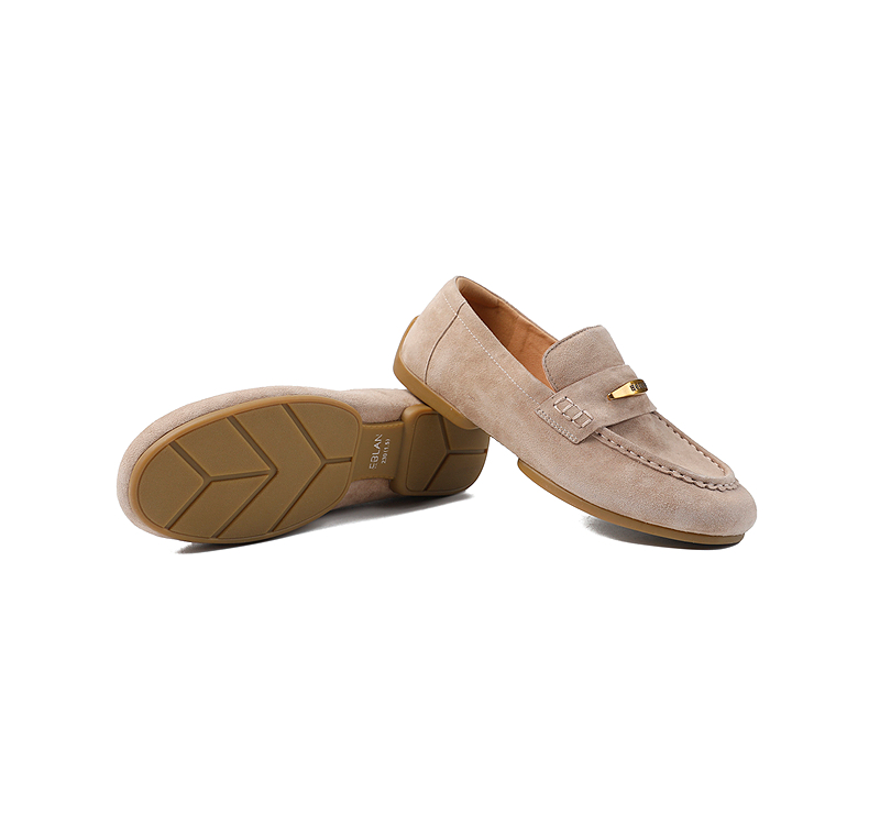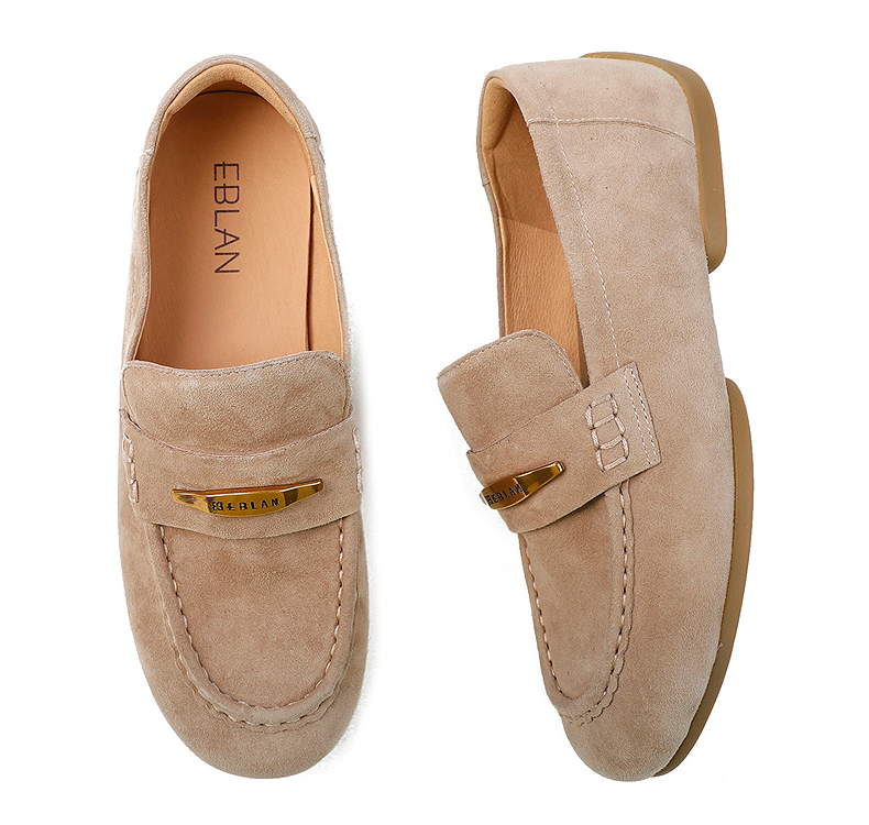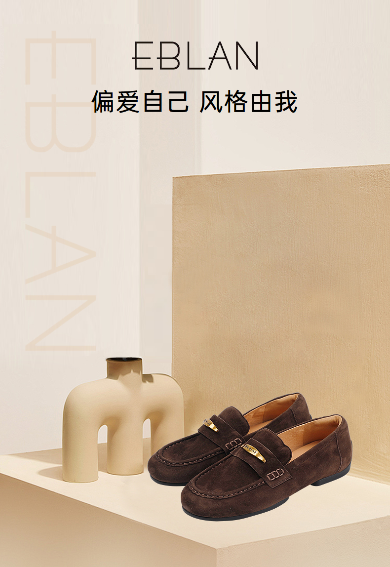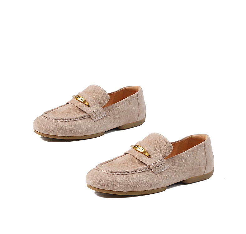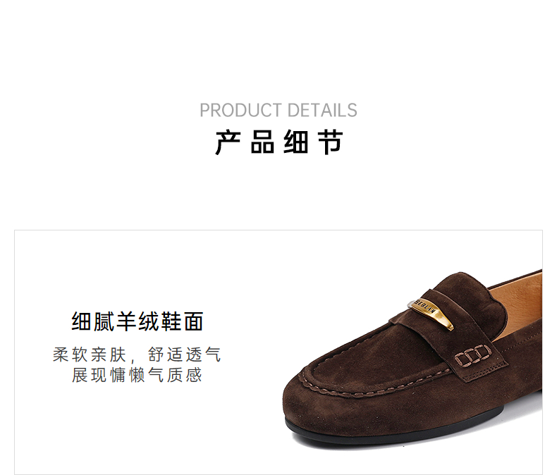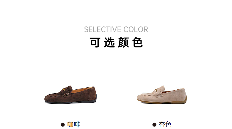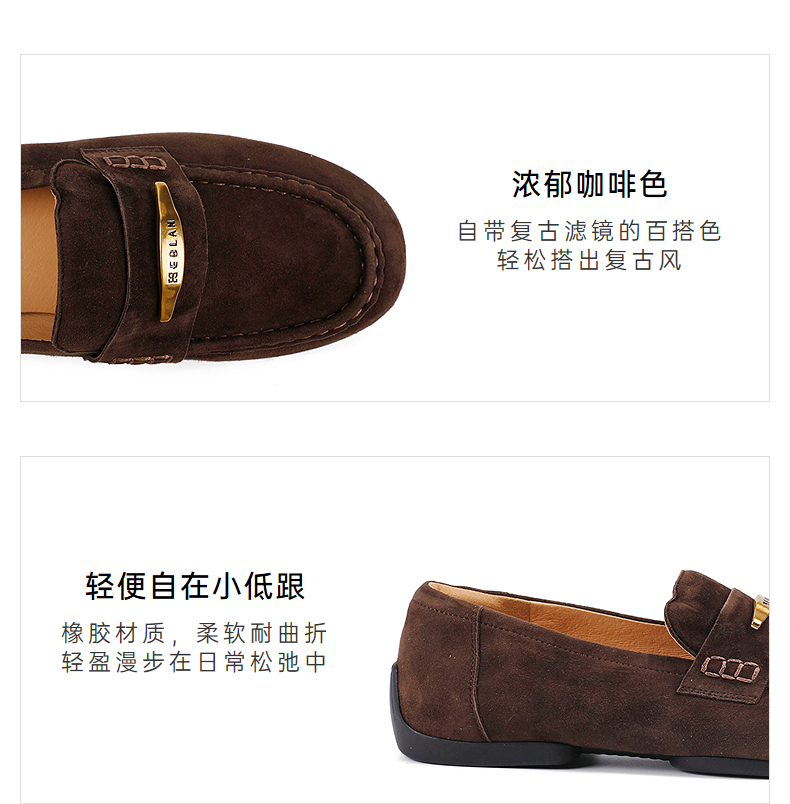 千百度羊皮通勤低跟乐福鞋女款秋季小皮鞋豆豆鞋平底单鞋A24455601