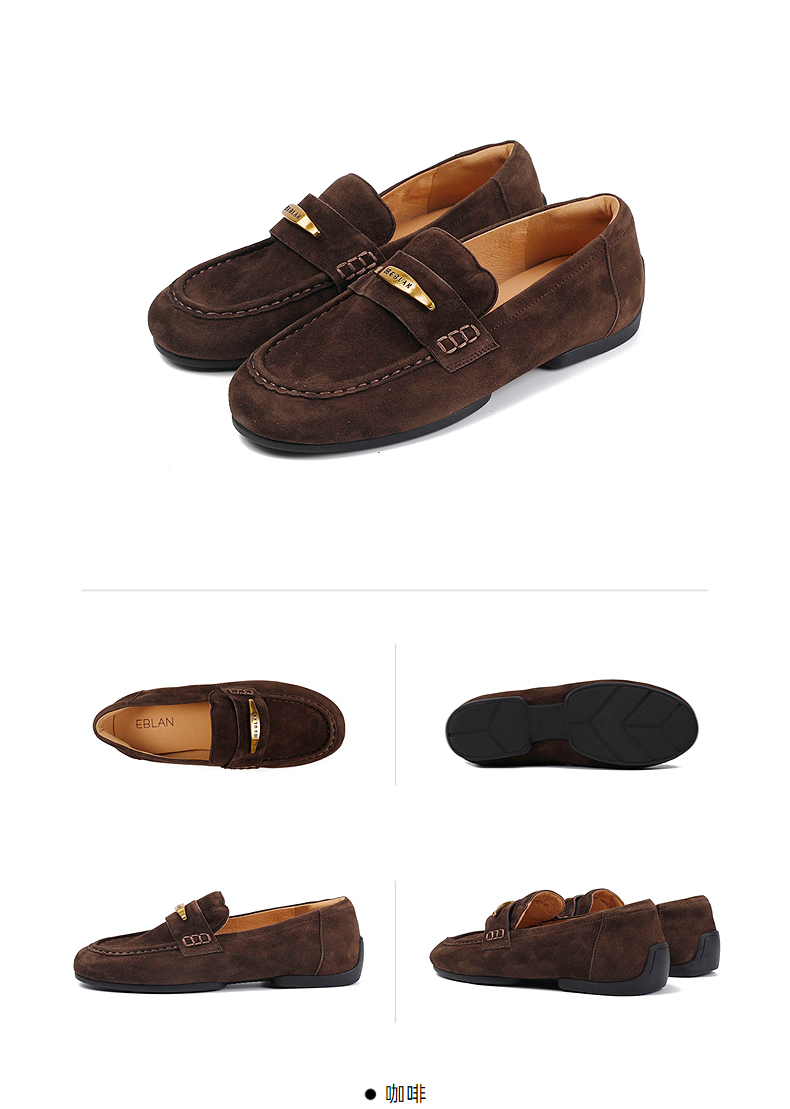 伊伴秋季细腻羊绒鞋面浓郁咖啡色复古感单鞋B25462821