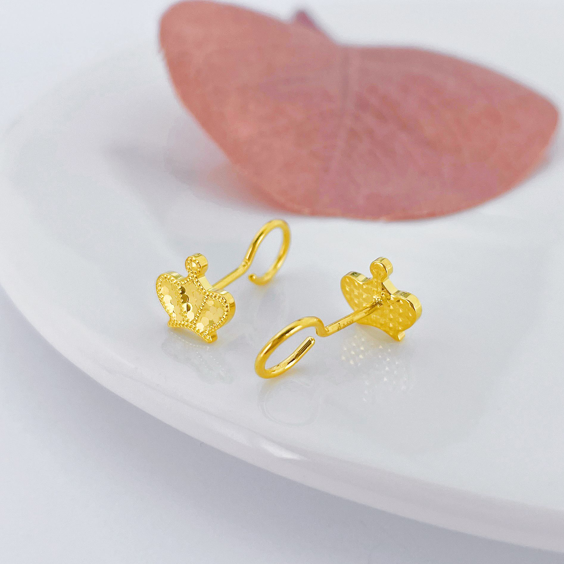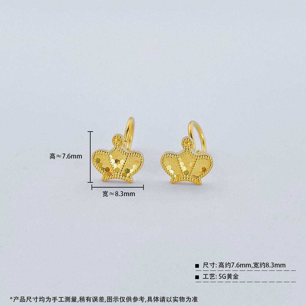 【限时克减150元】足金999 #皇冠 (足金999字印)5G黄金鱼鳞皇冠耳钉(5GES00431)(预售产品下单后不退款不退货不换货不补差价)