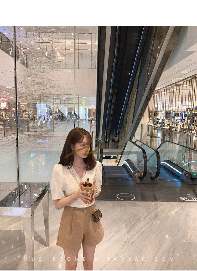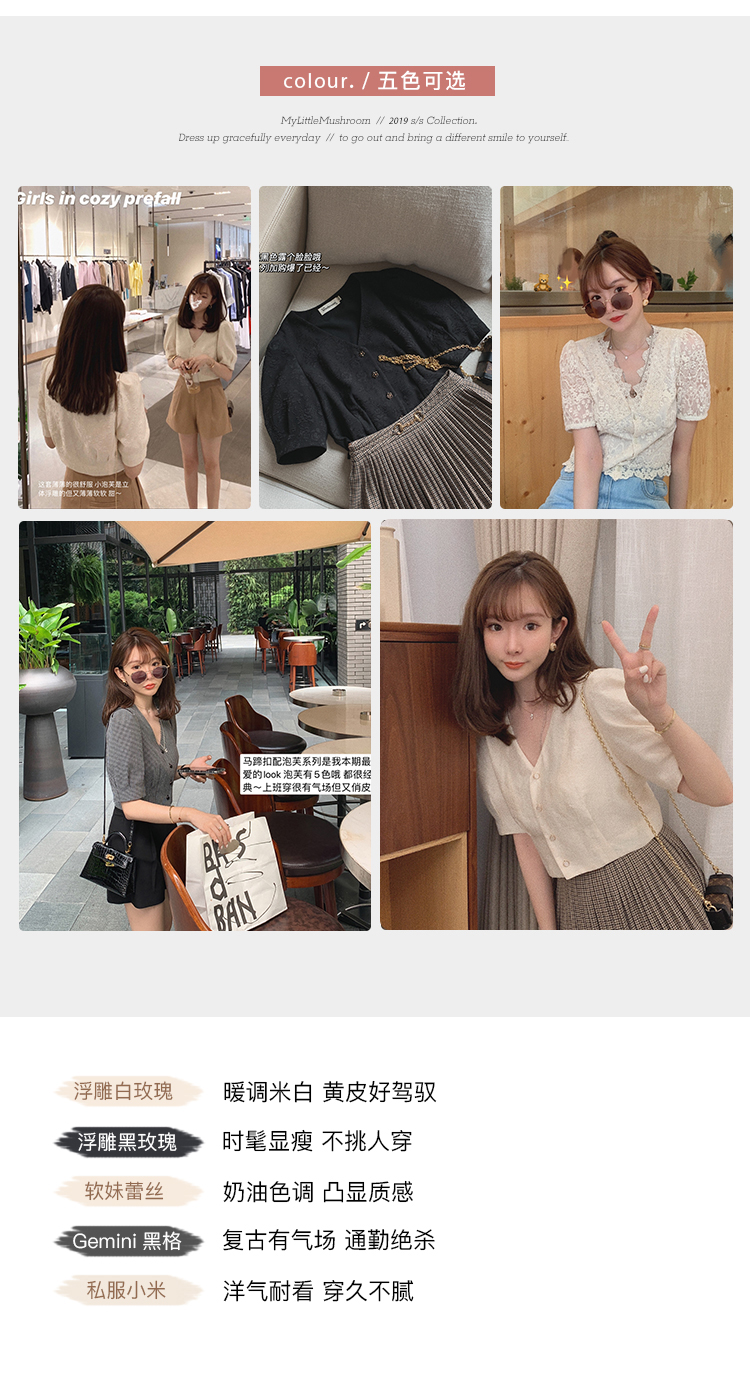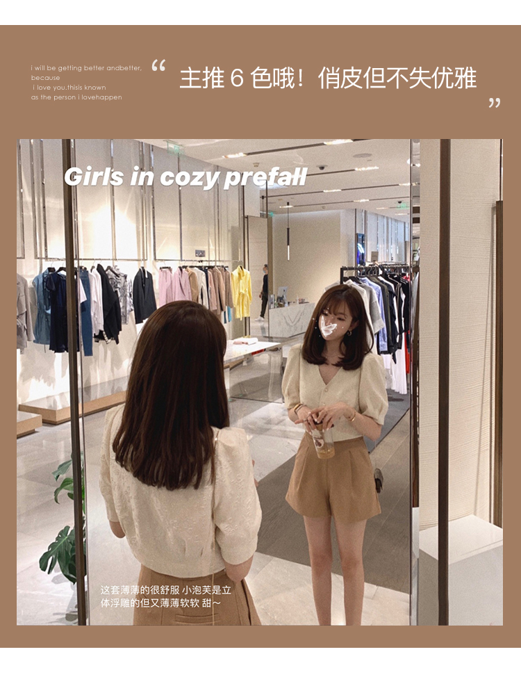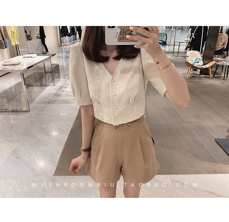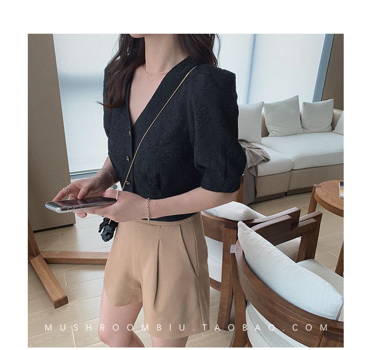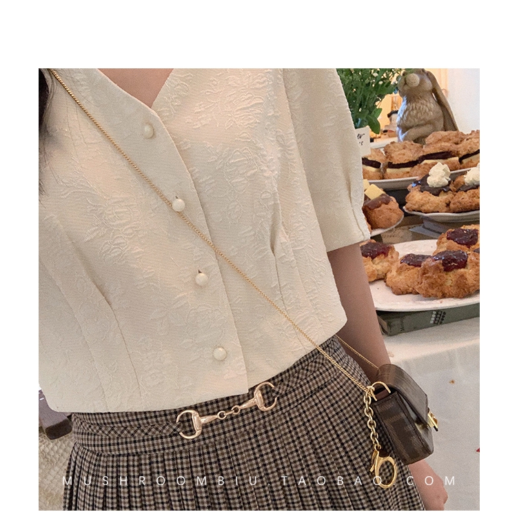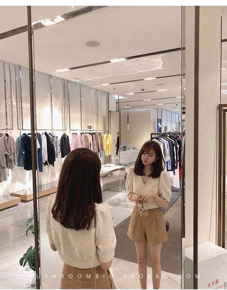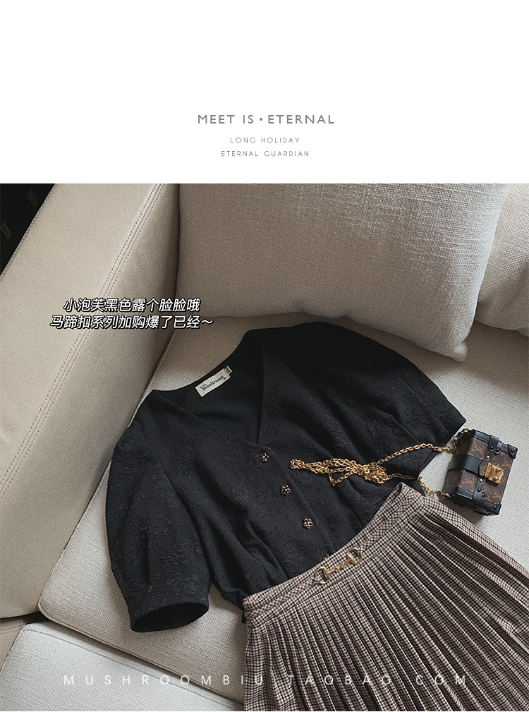 金蘑菇菇【奶油小泡芙】设计感小众收腰短款法式V领