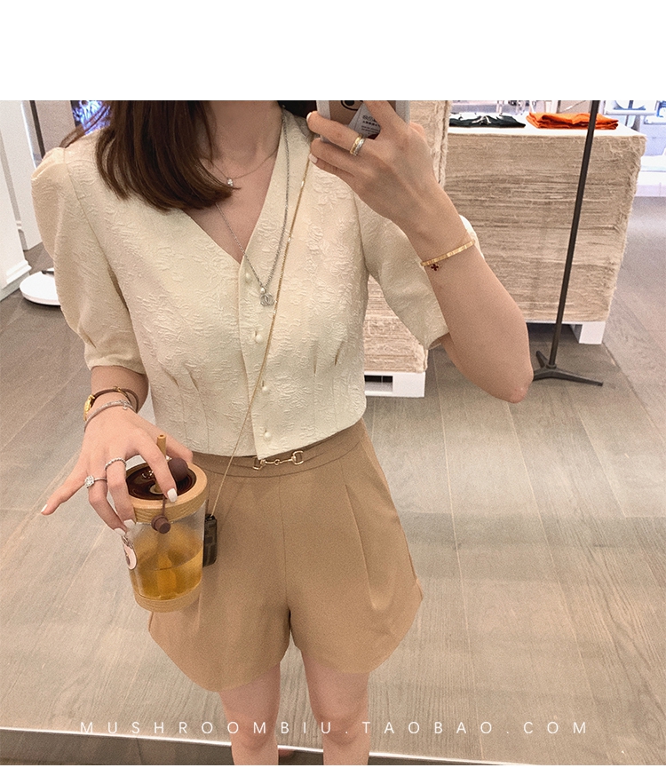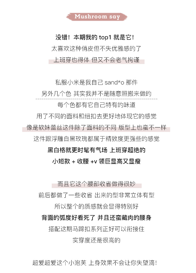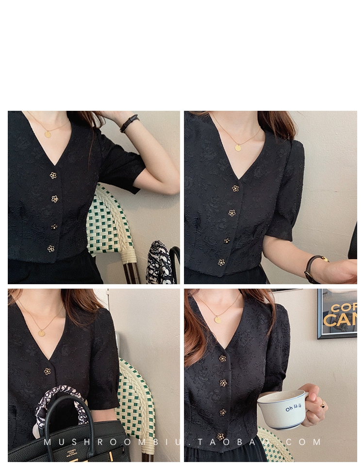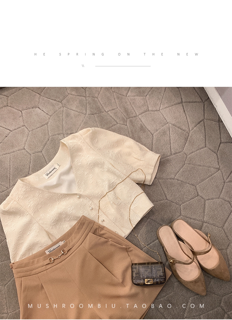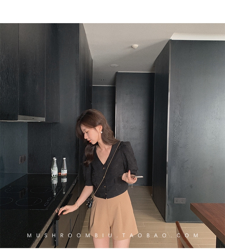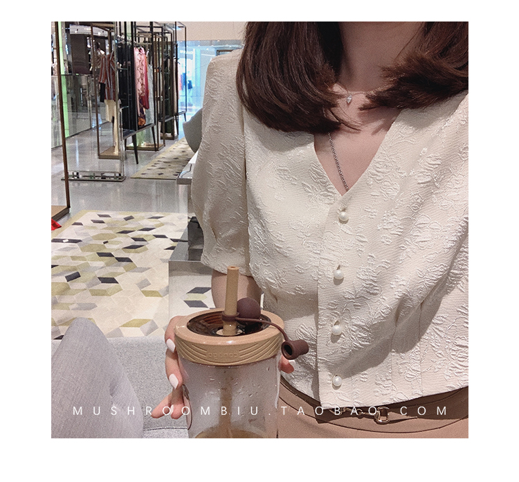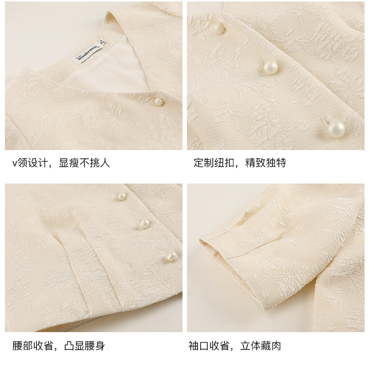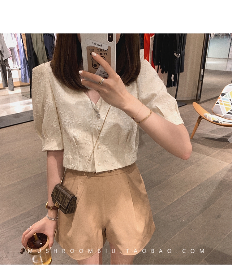 金蘑菇菇【奶油小泡芙】设计感小众收腰短款法式V领