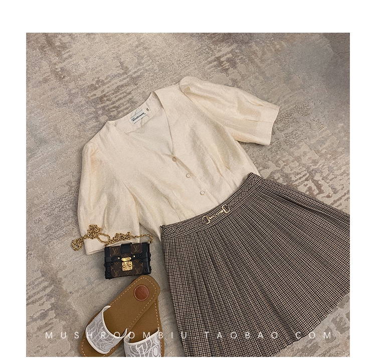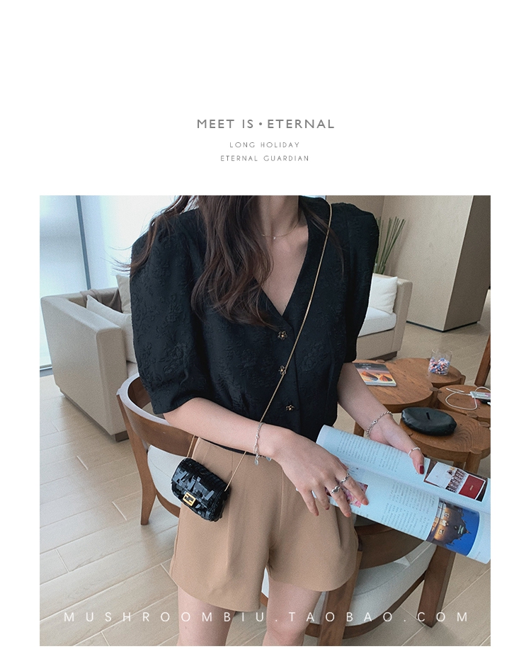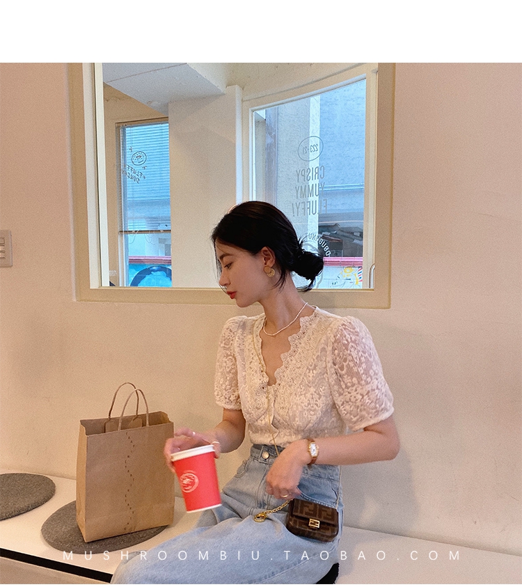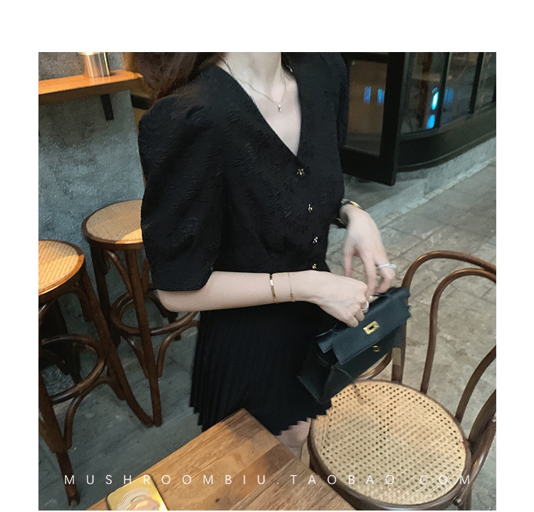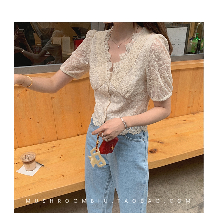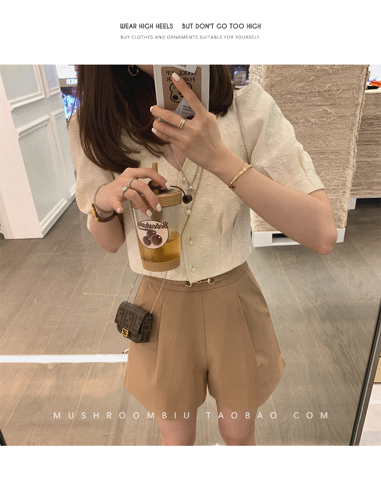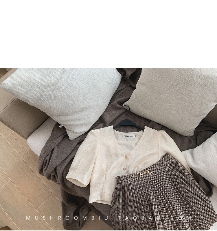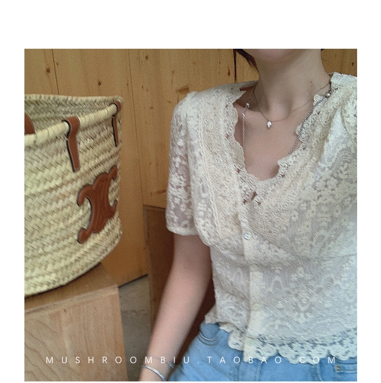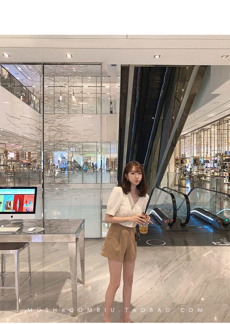 金蘑菇菇【奶油小泡芙】设计感小众收腰短款法式V领