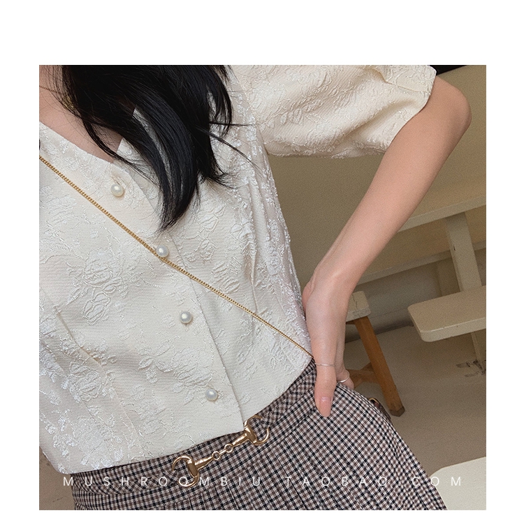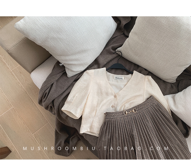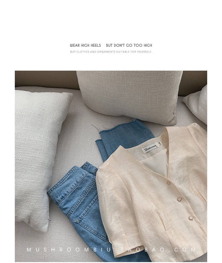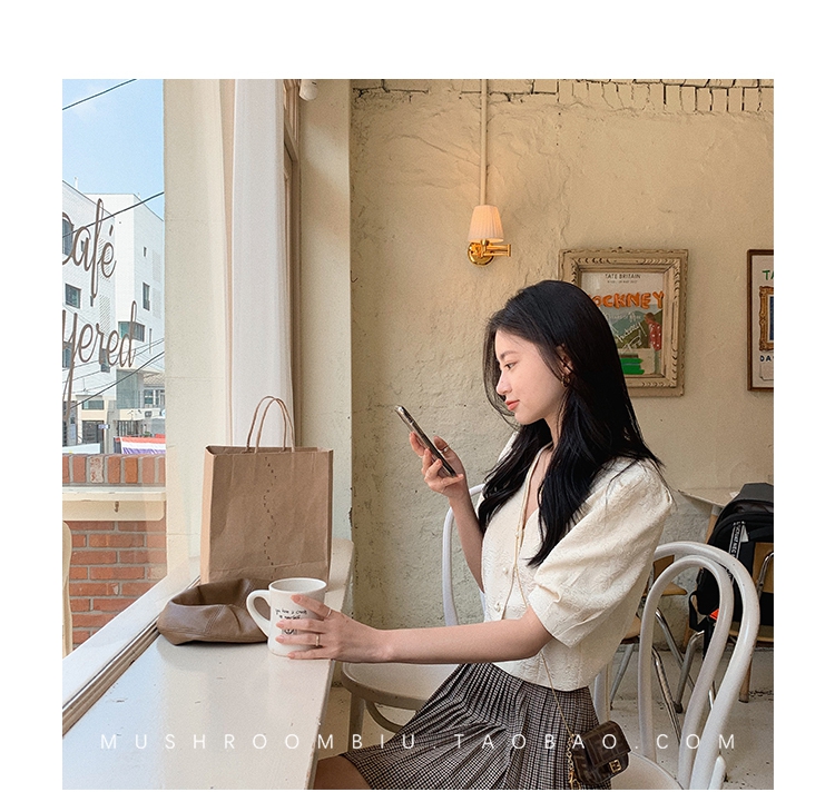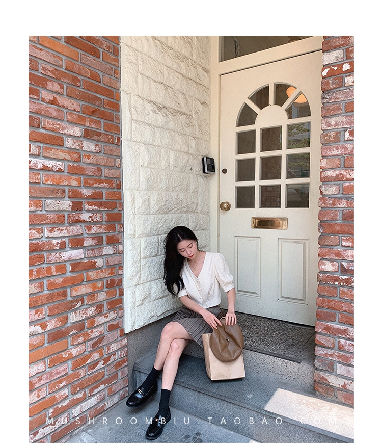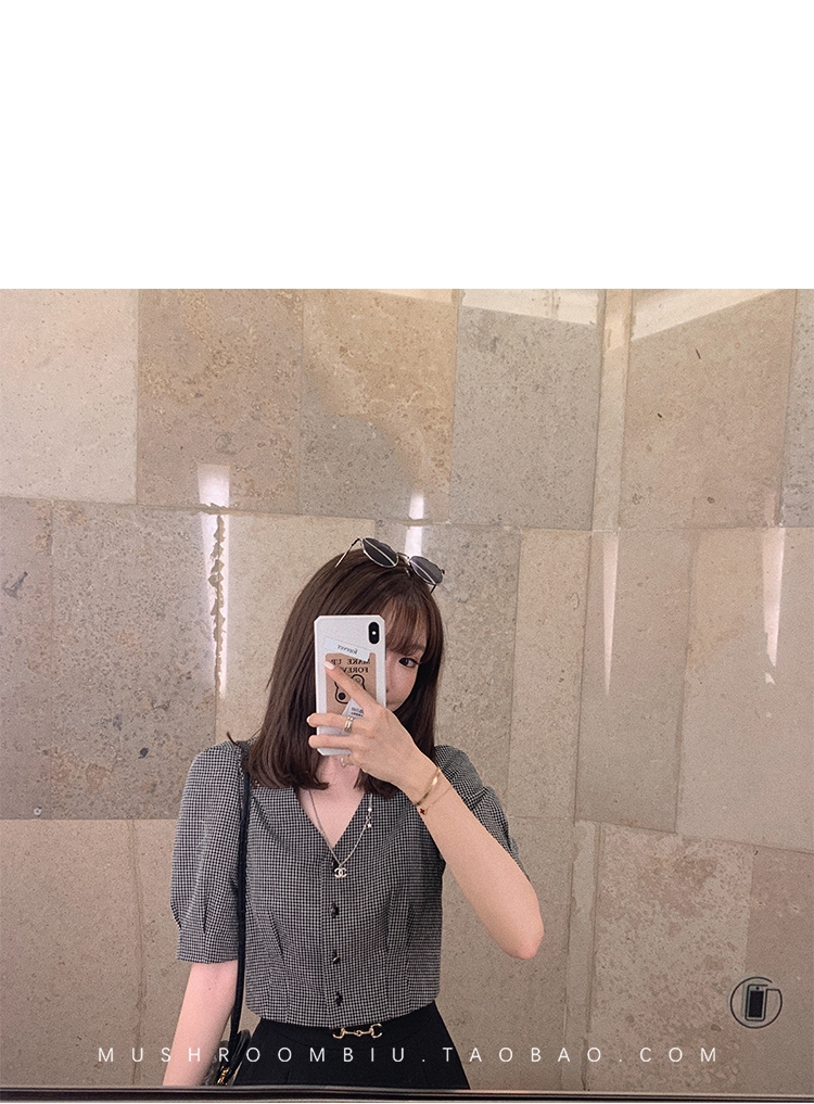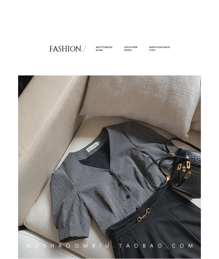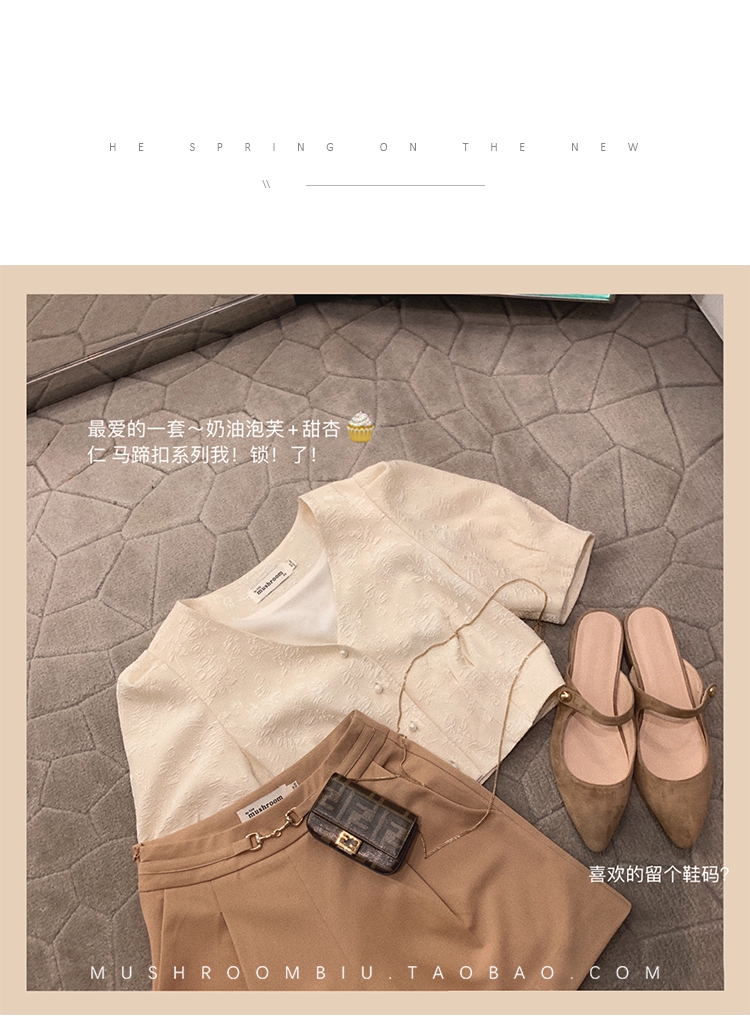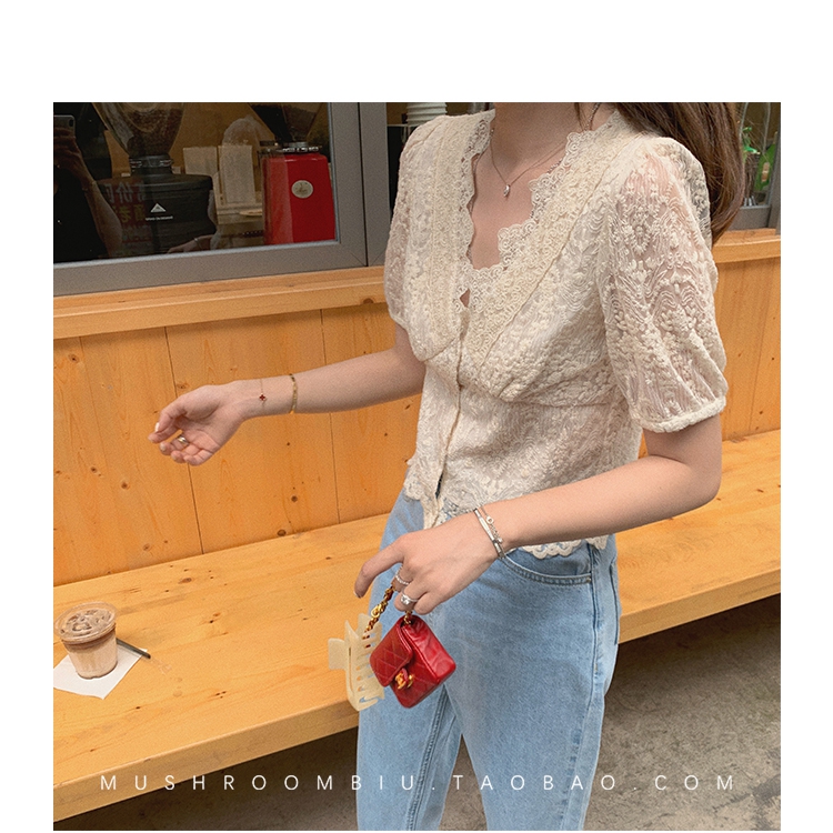 金蘑菇菇【奶油小泡芙】设计感小众收腰短款法式V领
