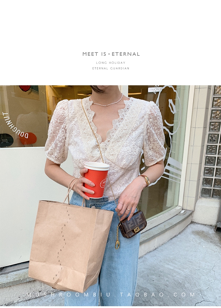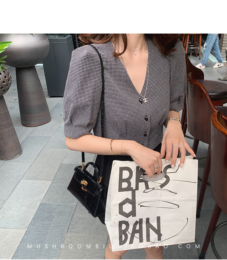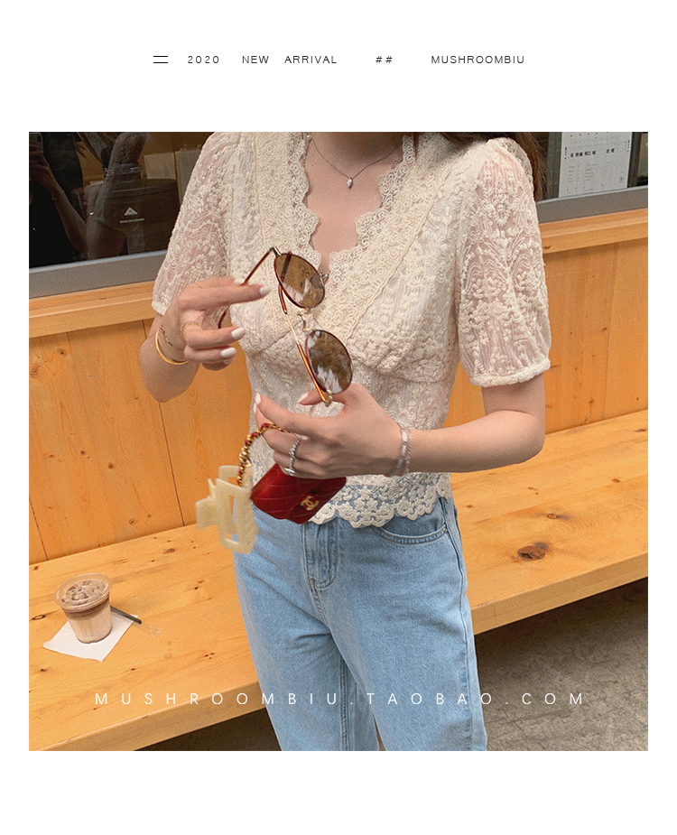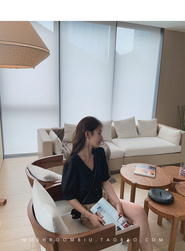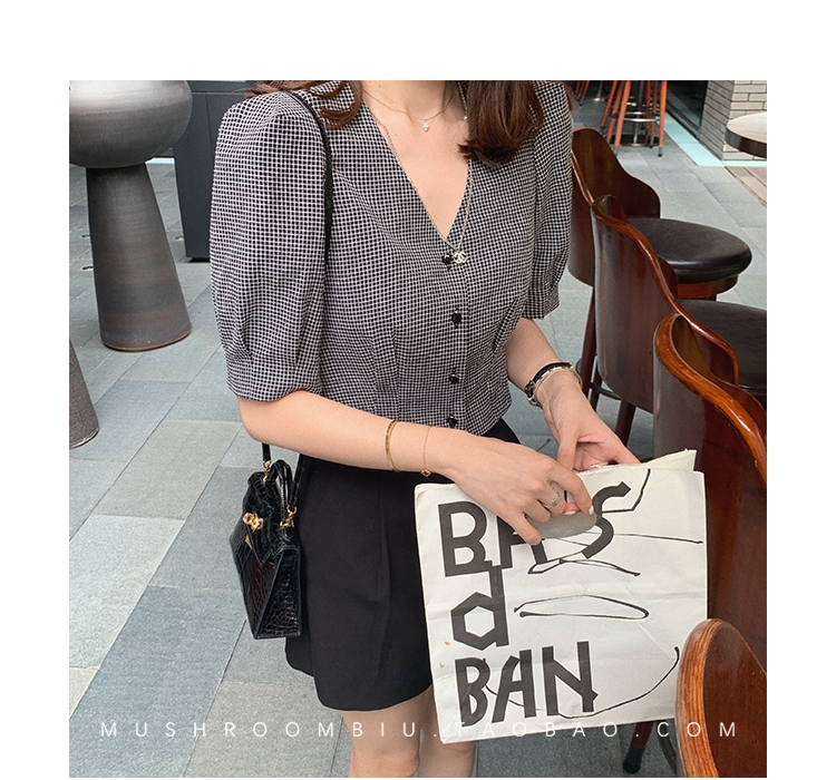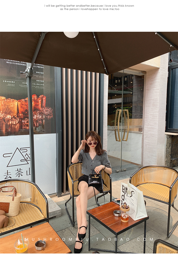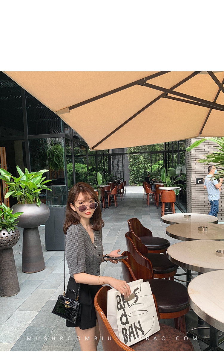 金蘑菇菇【奶油小泡芙】设计感小众收腰短款法式V领