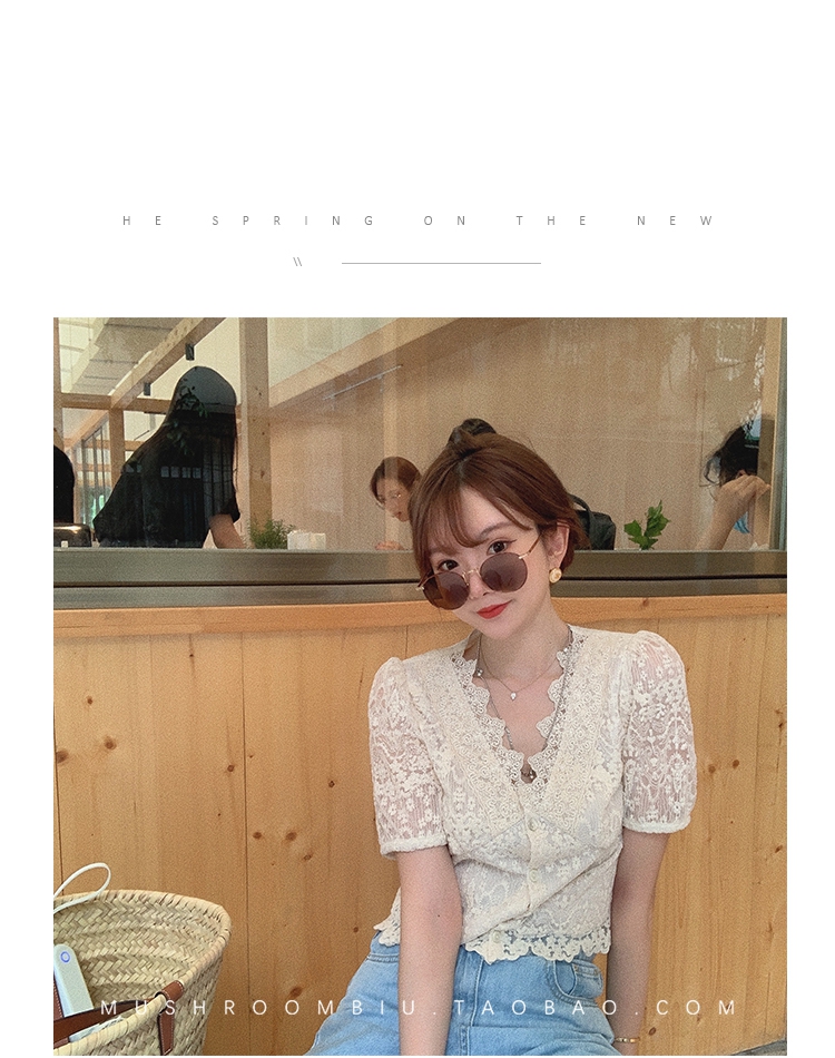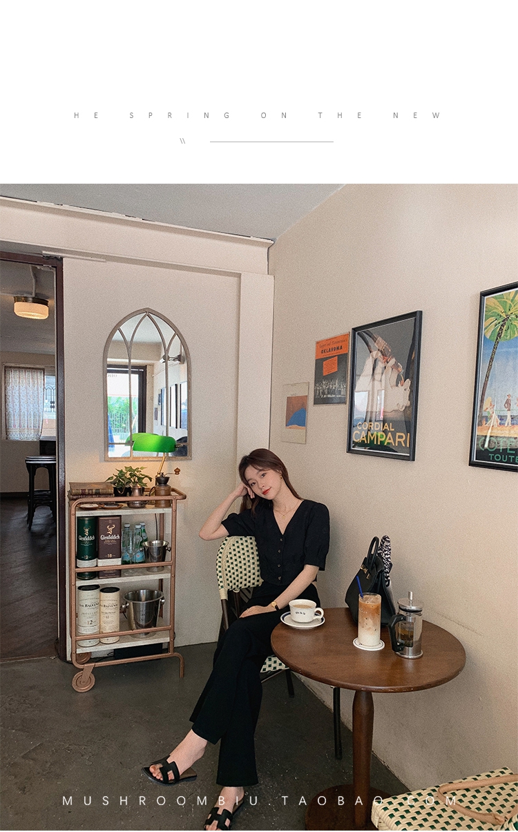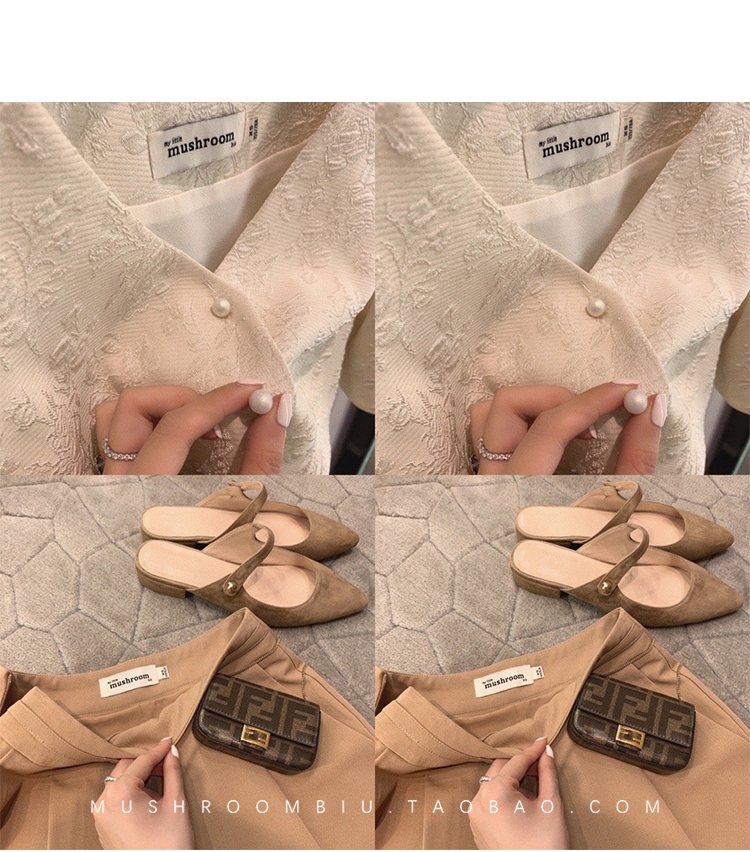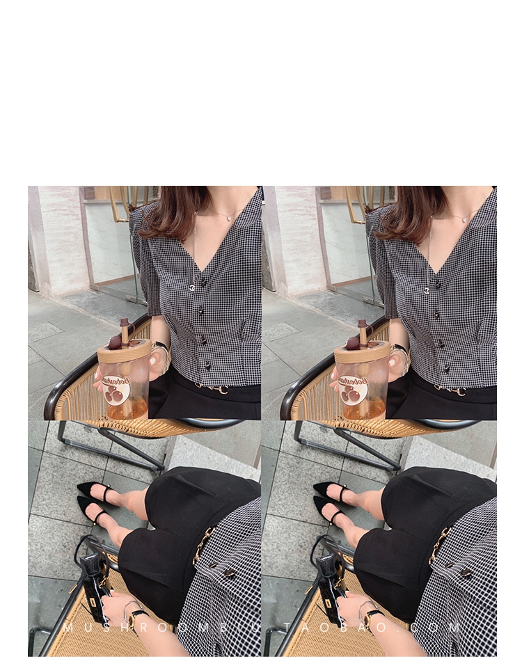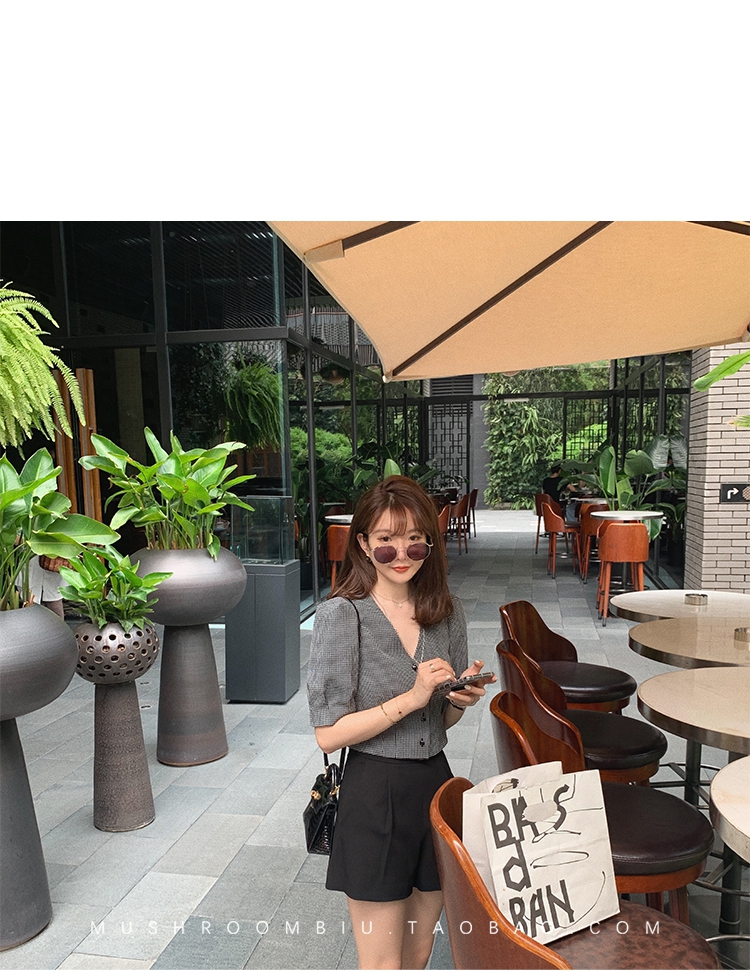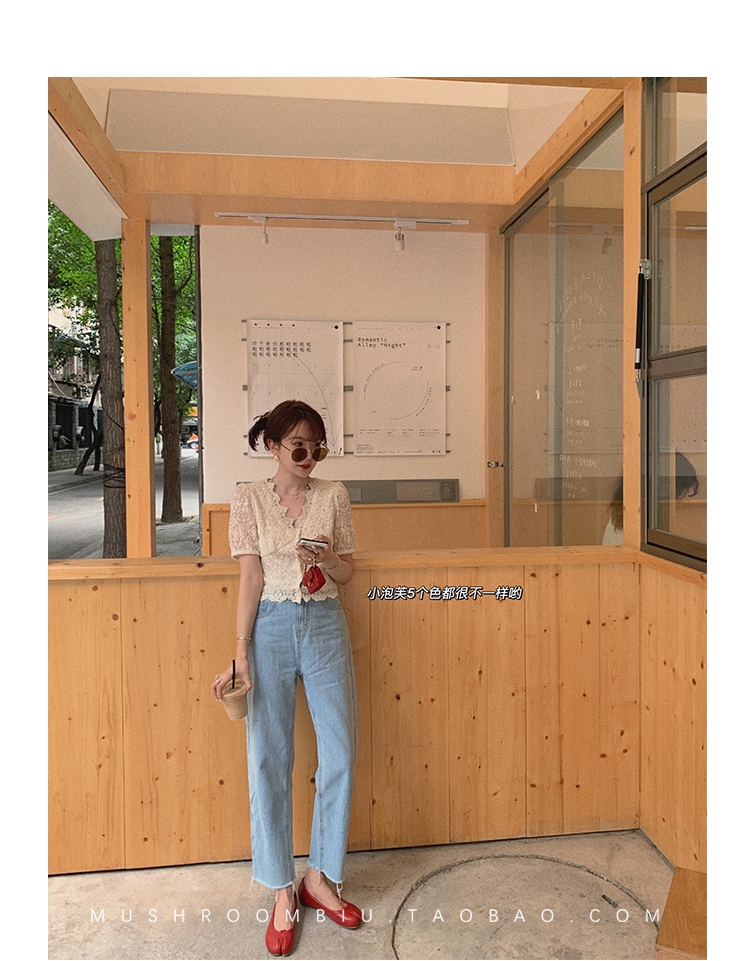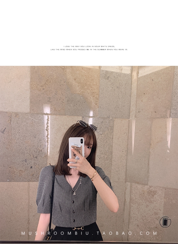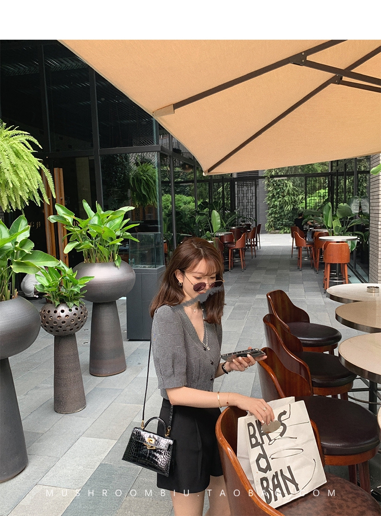 金蘑菇菇【奶油小泡芙】设计感小众收腰短款法式V领