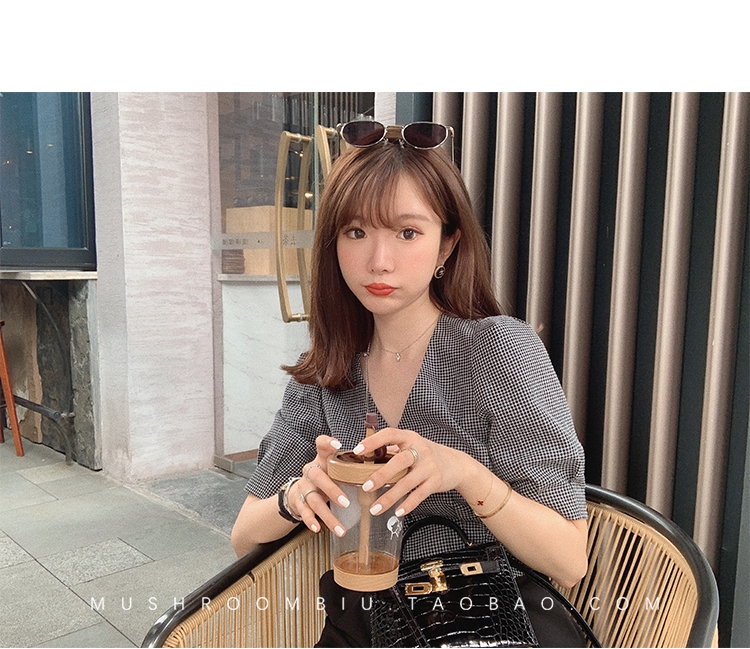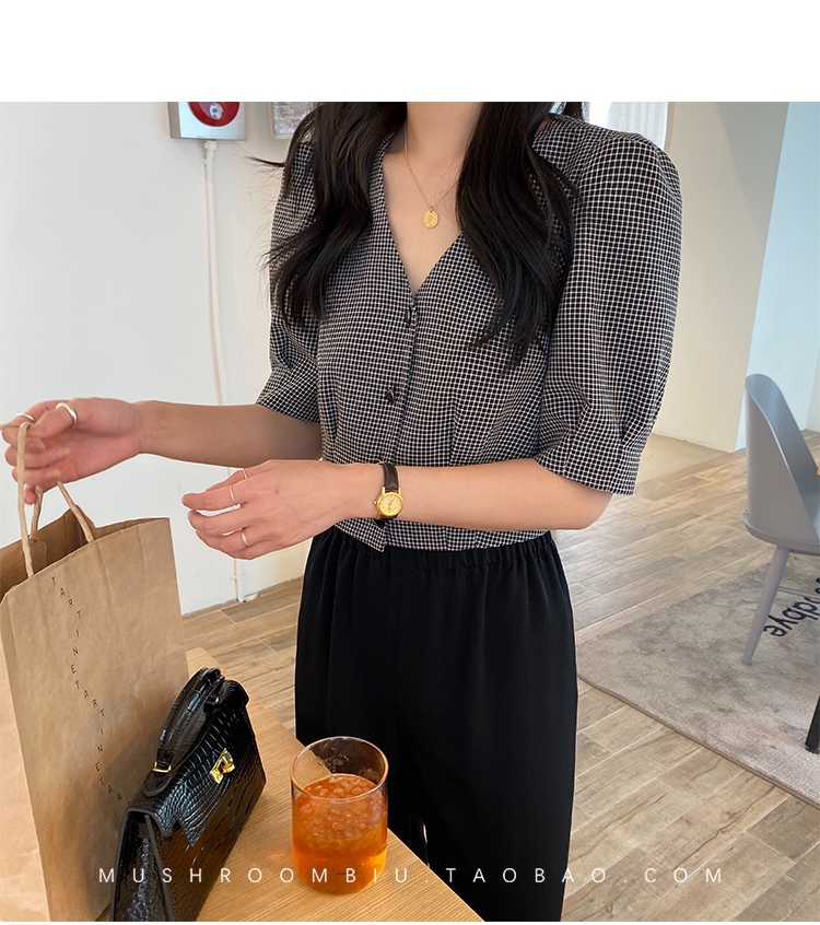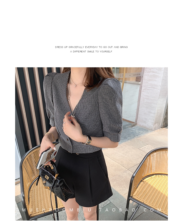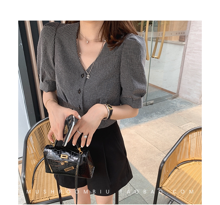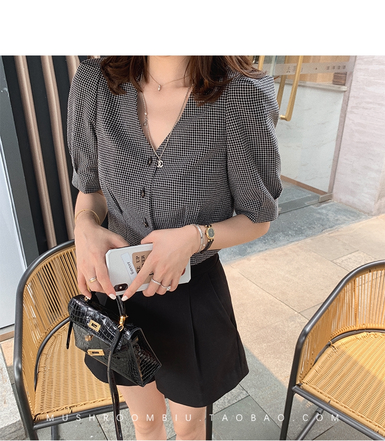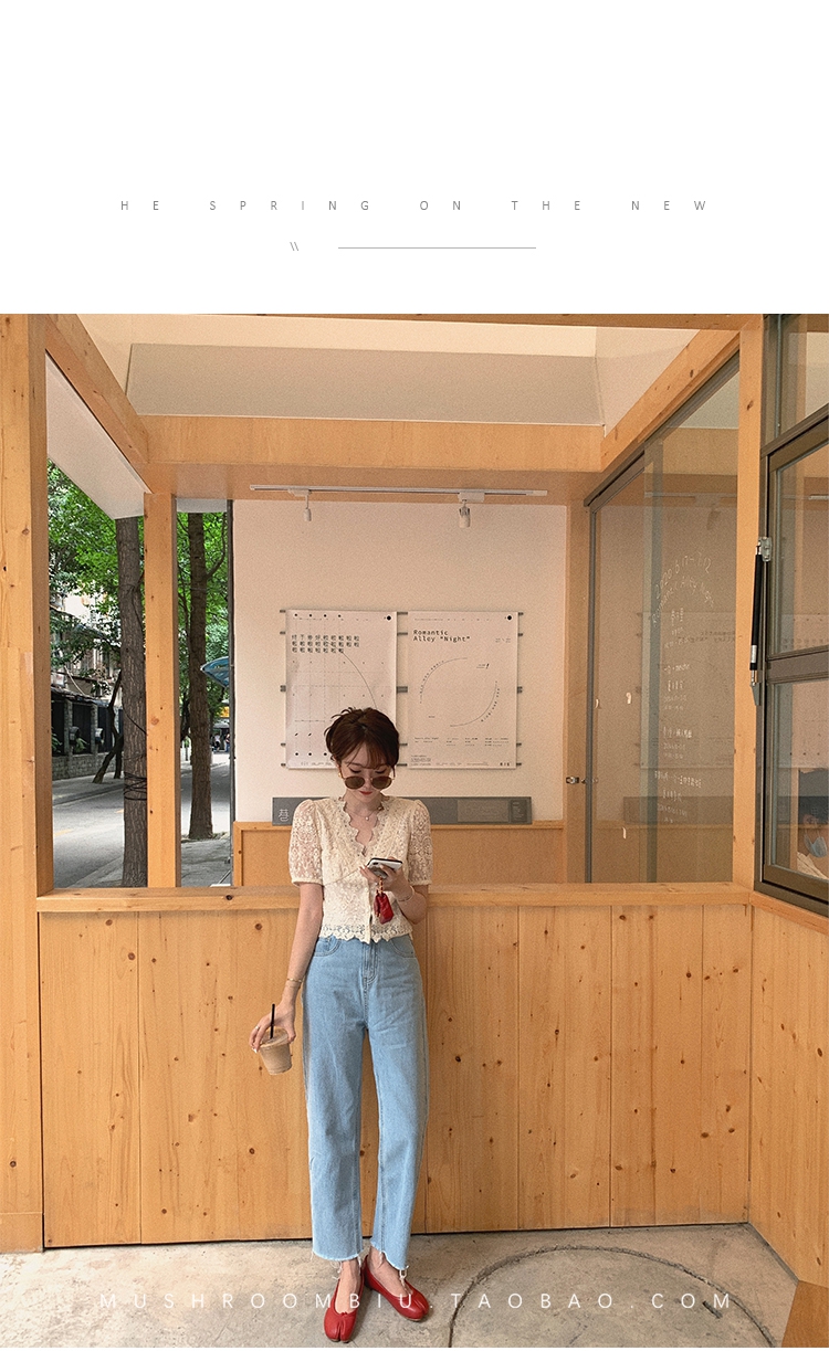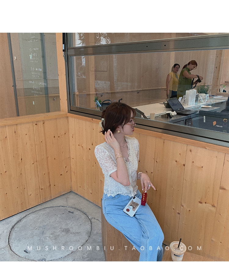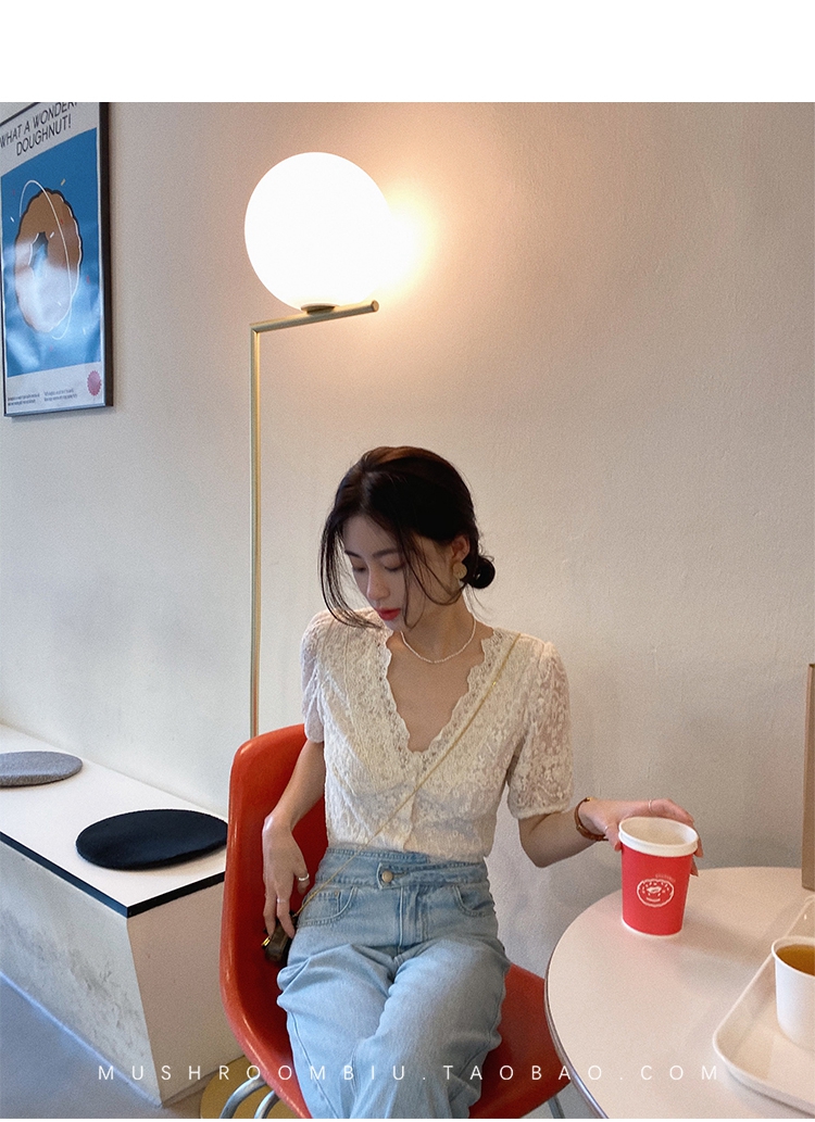 金蘑菇菇【奶油小泡芙】设计感小众收腰短款法式V领