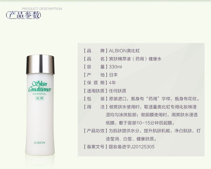 【香港直邮】Albion/奥尔滨爽肤精萃液330ml
