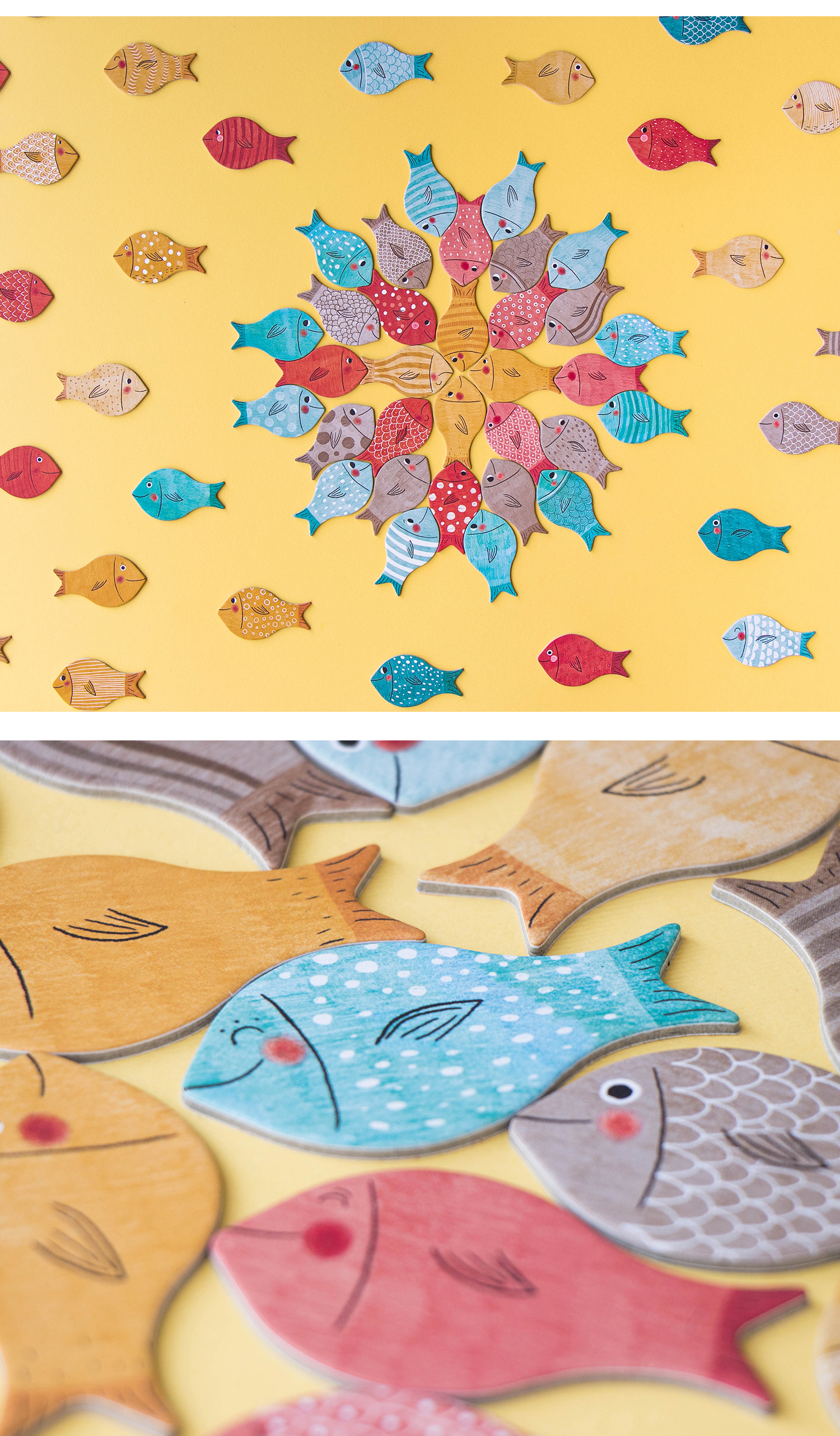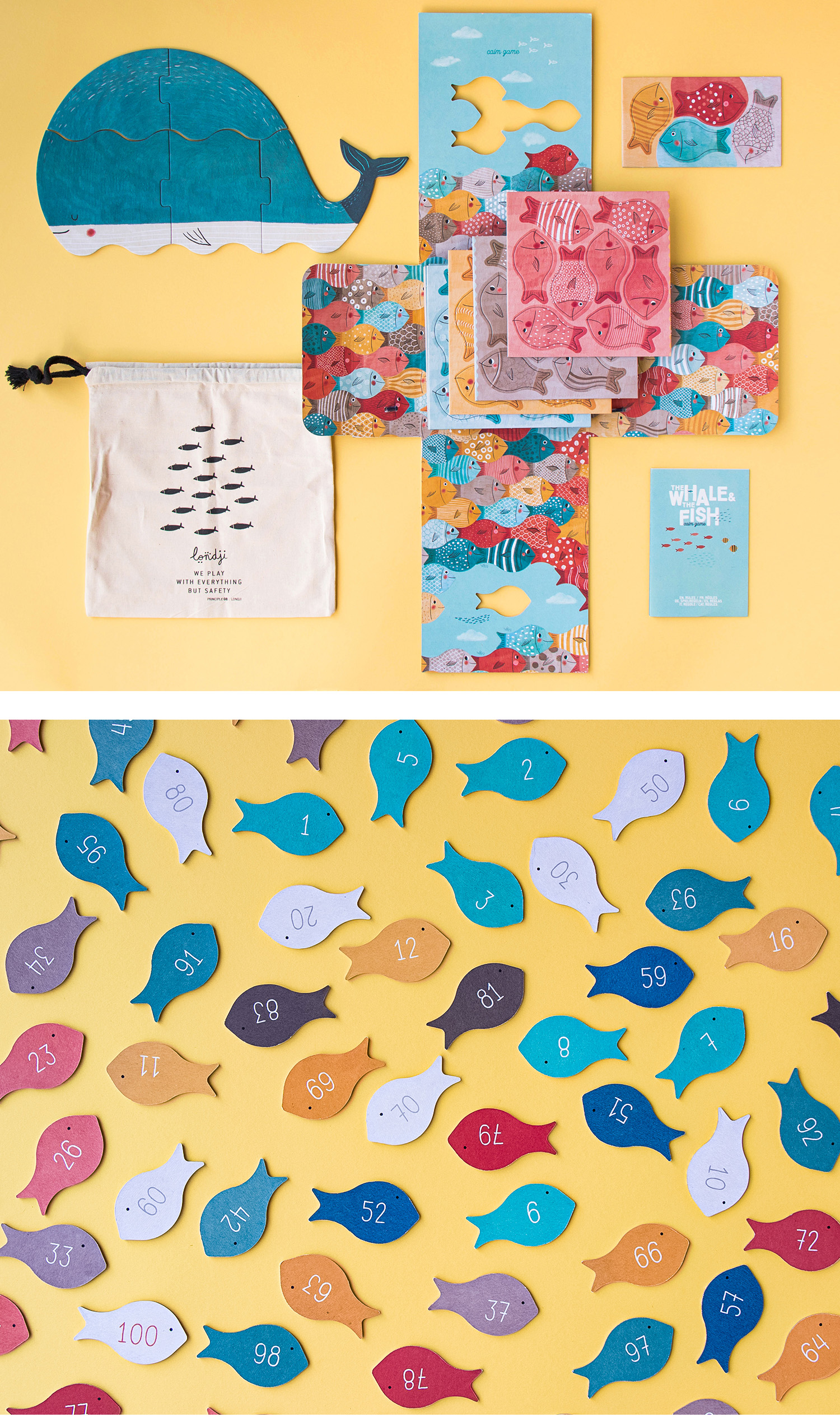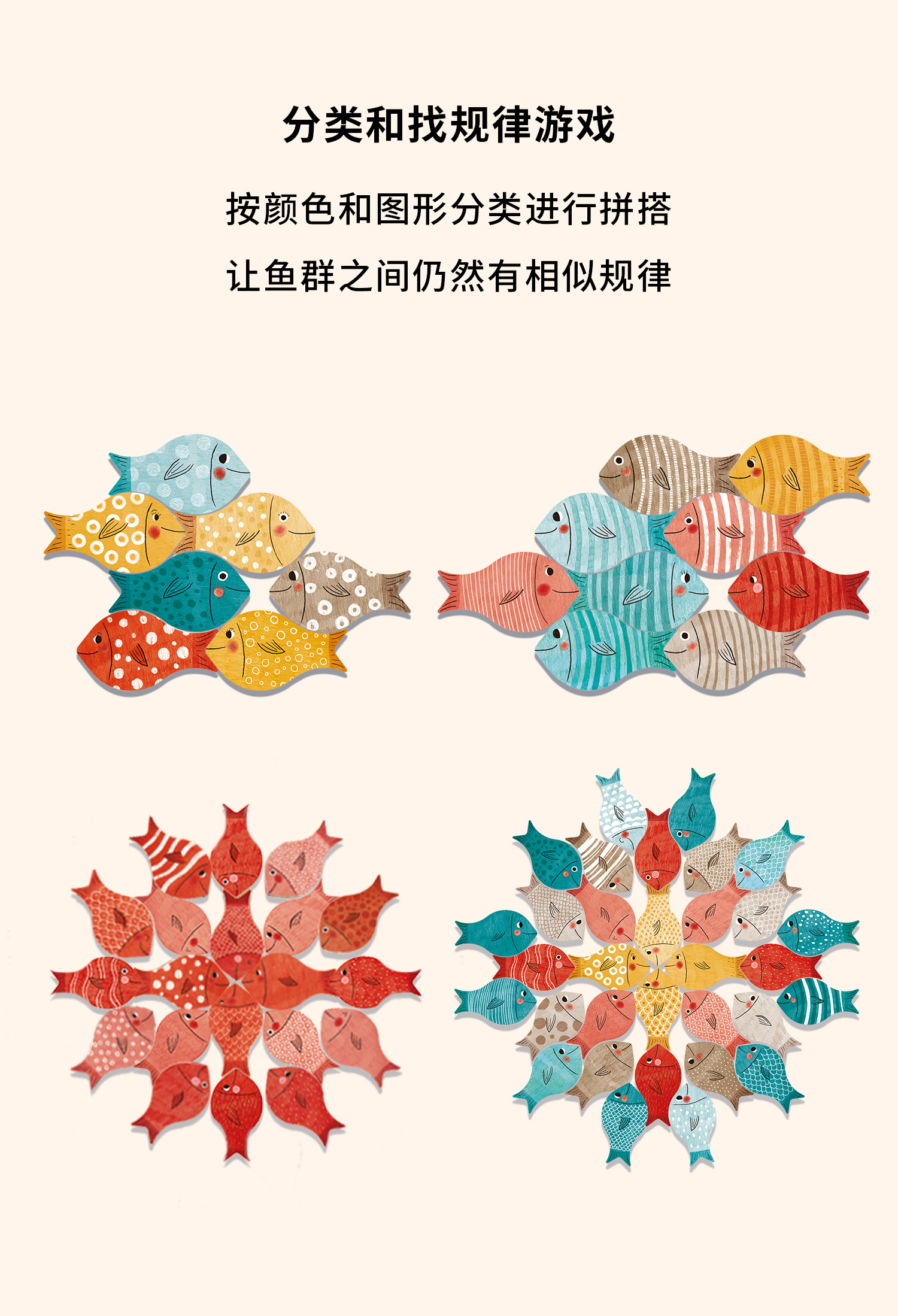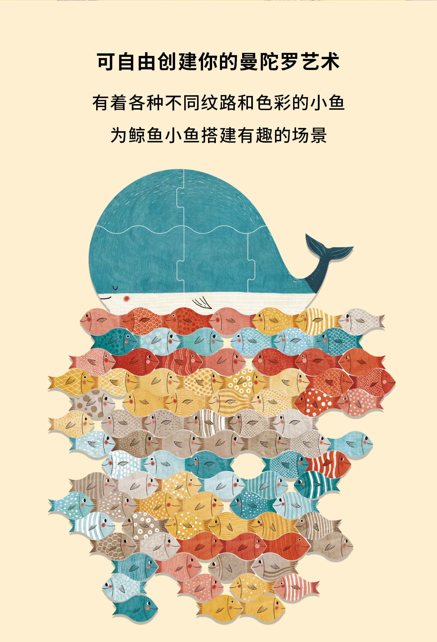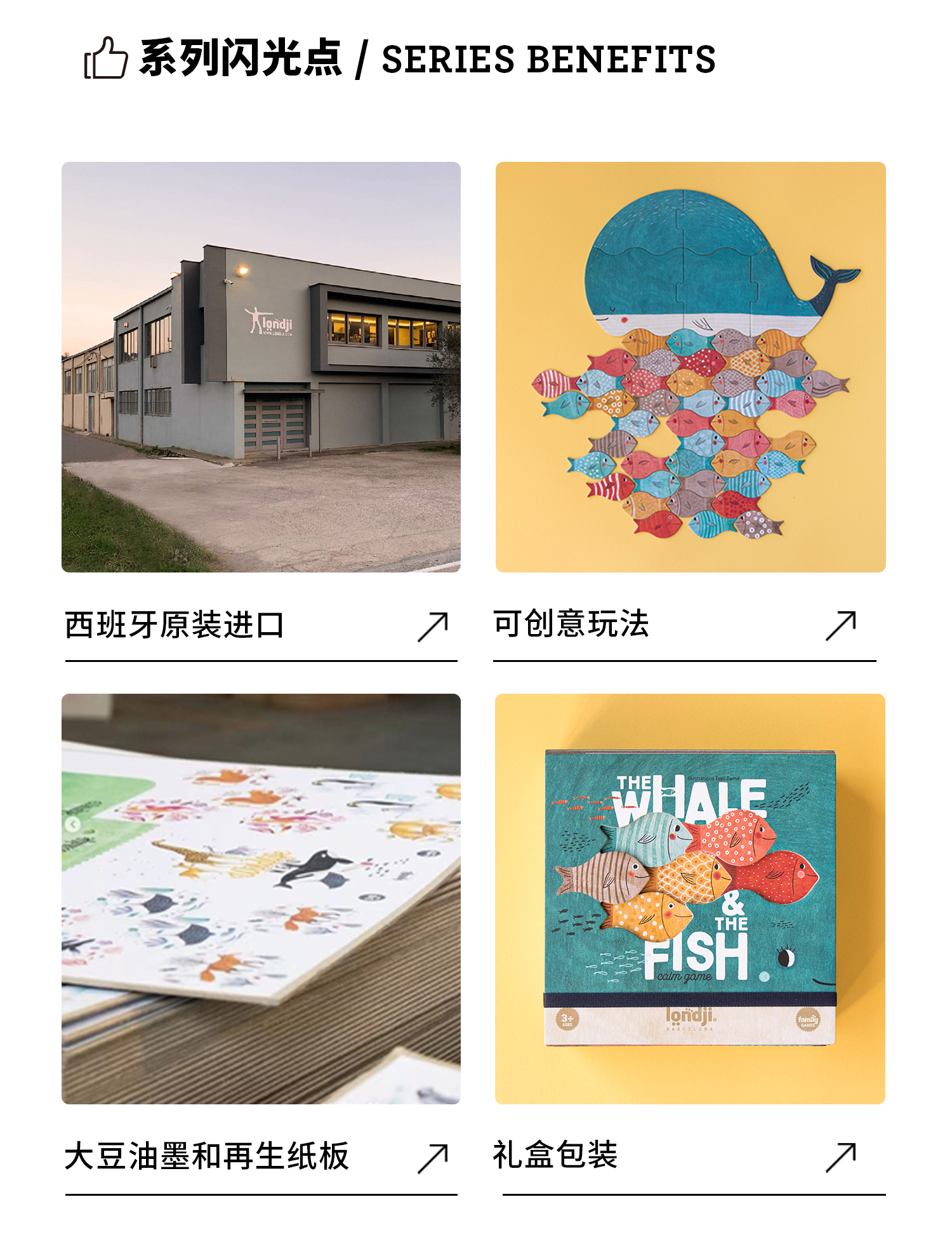 西班牙 Londji 自由拼图 鲸鱼和小鱼 适合年龄3岁+ 多样玩法 激发创造力 FG019U