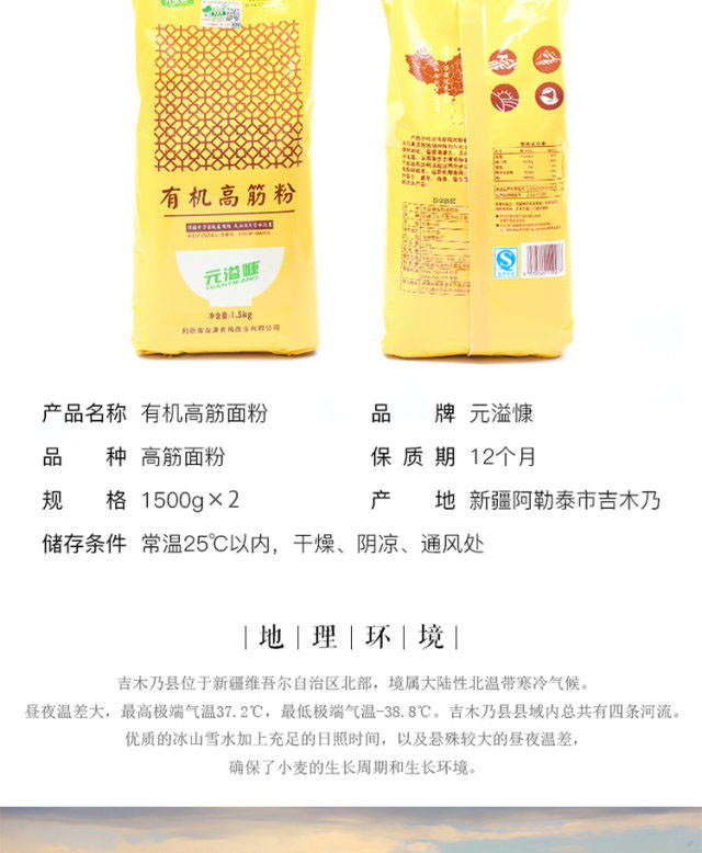 有机高筋面粉1.5kg/袋*2(欧盟有机认证)