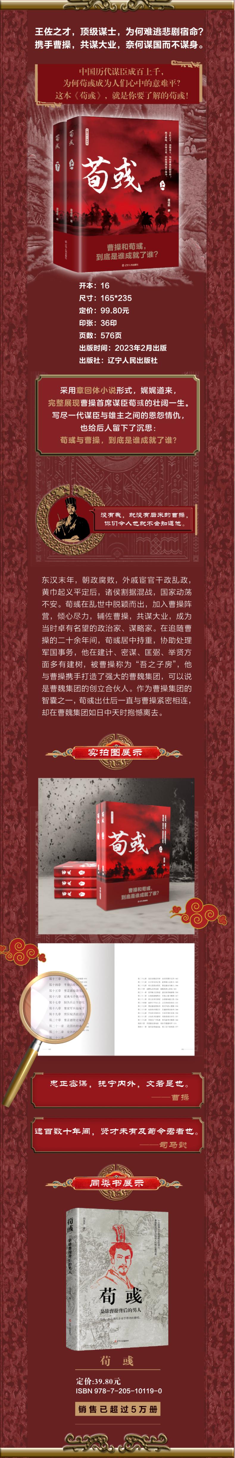 《荀彧》是的历史小说,很适合各类版权开发,在本部作品中,荀彧从王佐之才,到居中持重、未能其志,是贯穿全文的主线,将东汉末年的动荡,曹操与袁绍、董卓、吕布争权夺势,以及曹操挟天子以令诸侯,淋漓尽致地展现出来,突出了荀彧在其中的政治形象,塑造出一个果敢、坚韧、心存正义、不屈不挠的人物形象,弘扬了中华精神、传播了中华文化。