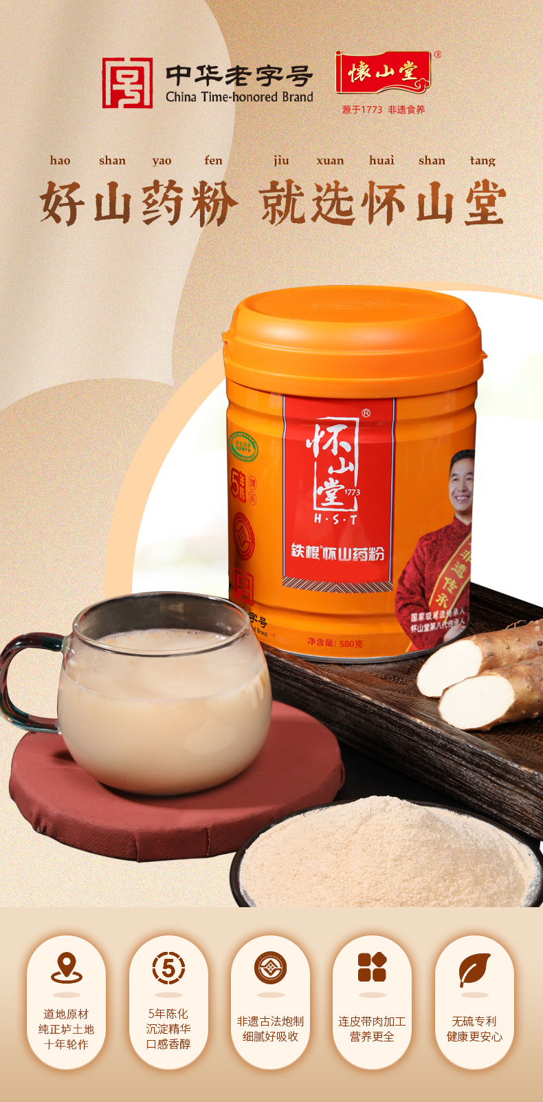 怀山堂 五年陈铁棍山药粉580g温县垆土铁棍怀山药熟粉中华老字号非遗山药粉呵护脾胃送长辈营养代餐