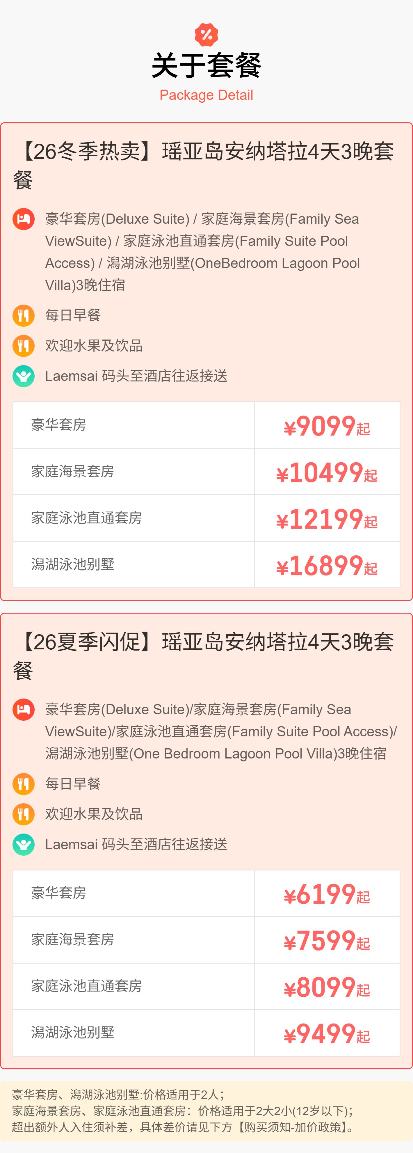4天3晚【普吉岛瑶亚岛安纳塔拉(大长岛)】入住90㎡豪华海景套房,享码头接送、每日早餐、欢迎水果及饮品,更有家庭房及170㎡泳池别墅套餐,打卡瑶亚岛的安逸与悠闲!~