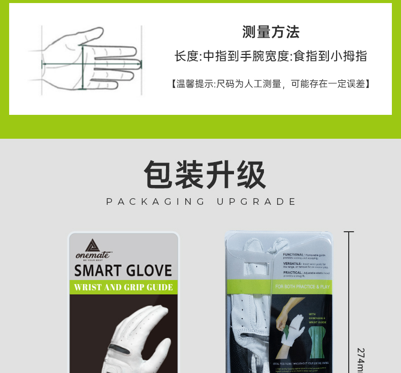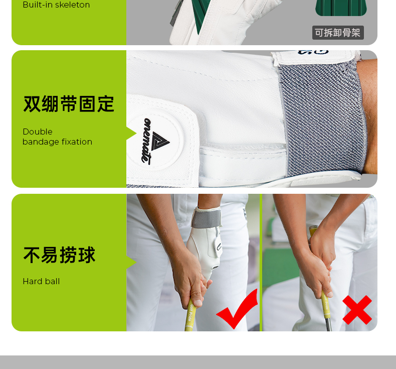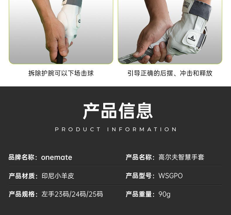 ONEMATE高尔夫握杆纠正手套锁定手腕打更直小羊皮透气防滑golf挥杆练习