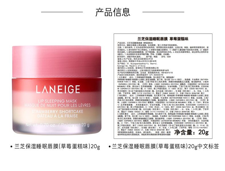 Laneige/兰芝果冻睡眠唇膜20g 夜间补水保湿修护淡化唇纹润唇 一夜拯救唇部干燥