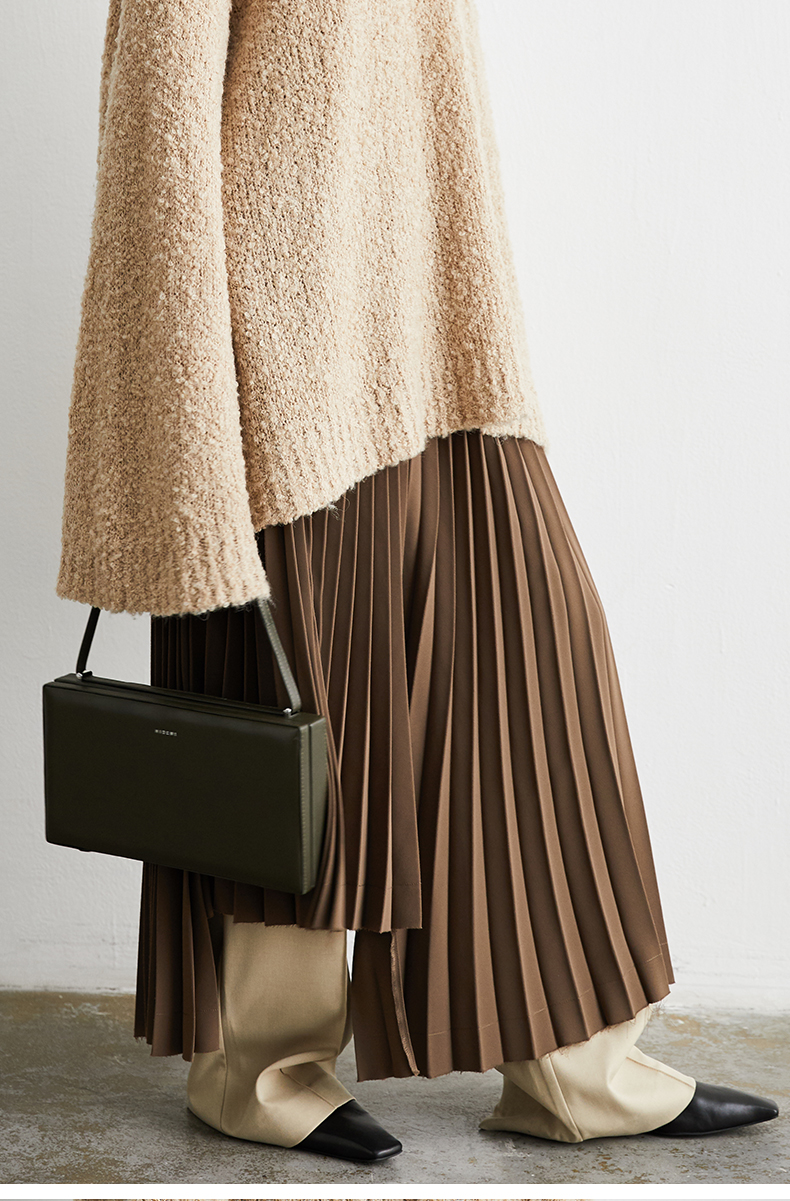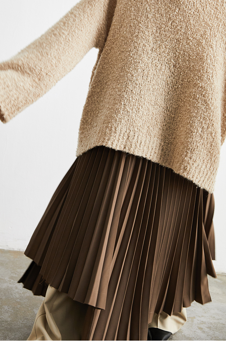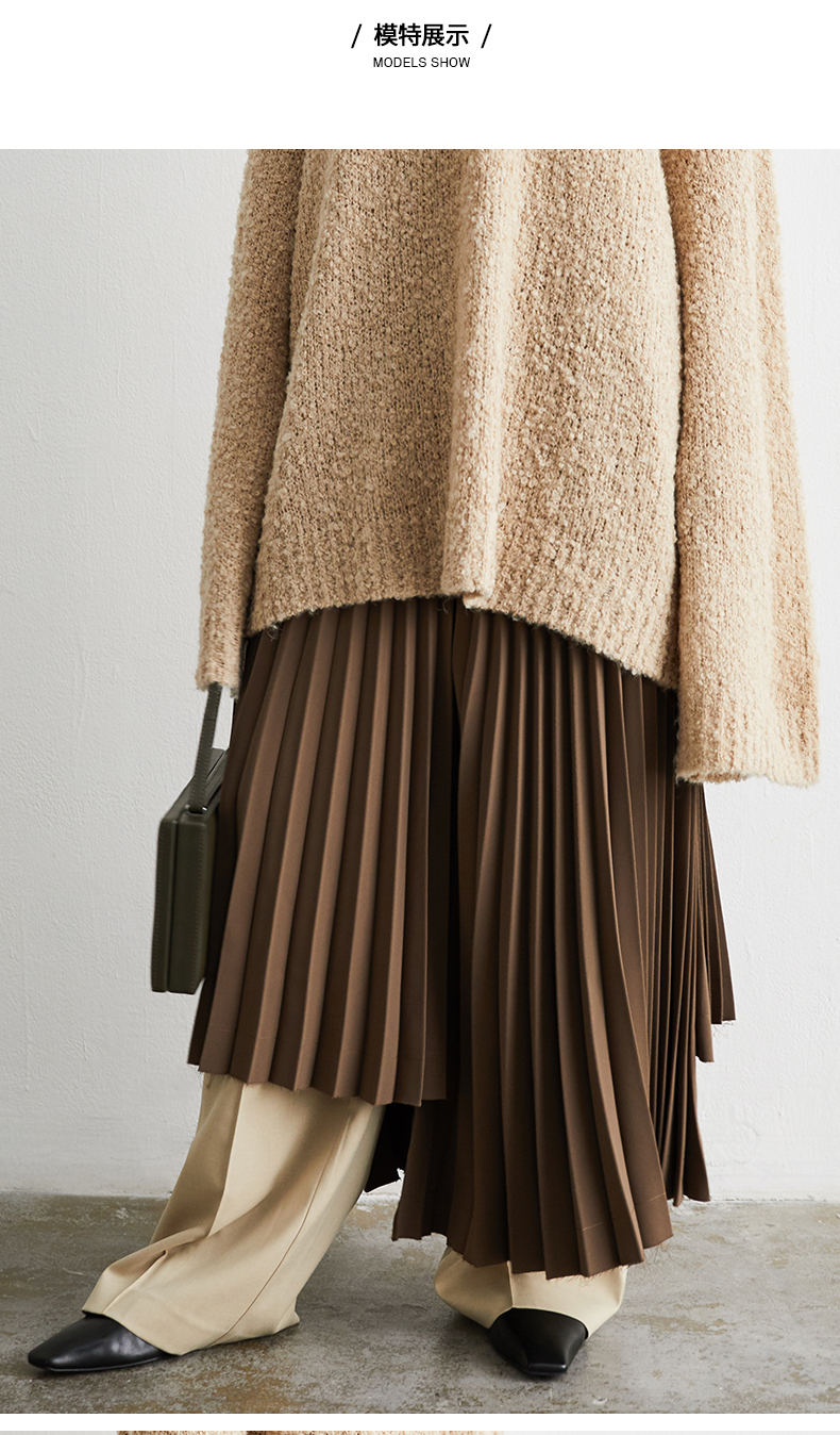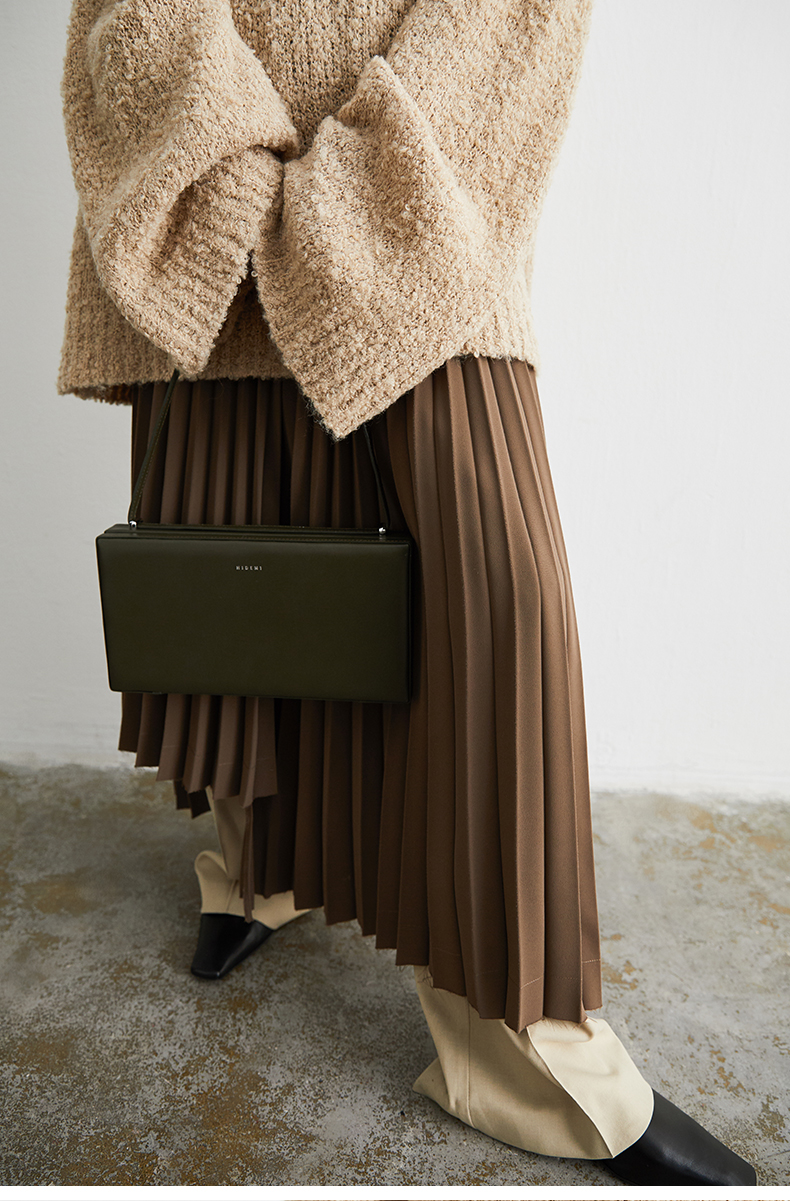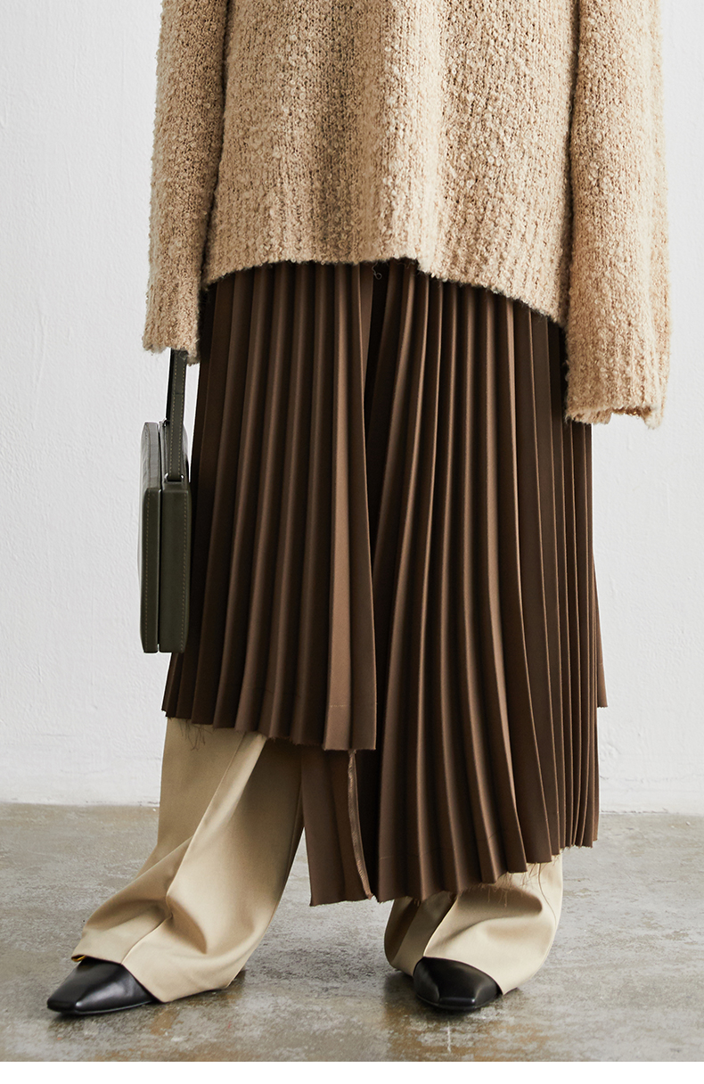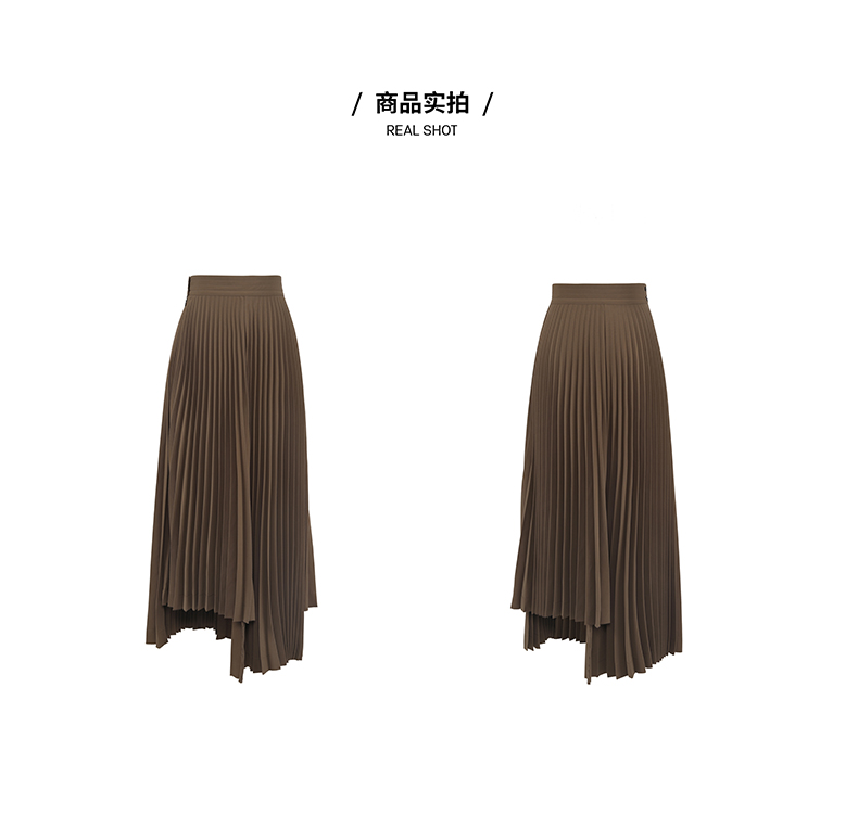 HIDEMI 巧克力色不规则压褶半身裙