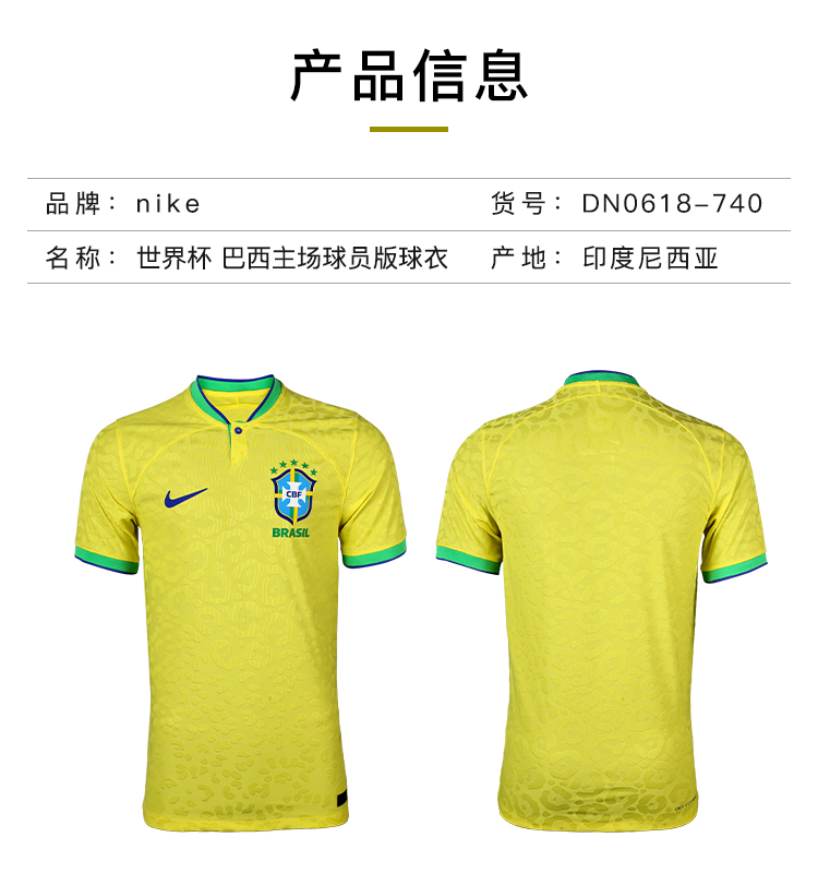 NIKE/耐克 巴西国家队2022世界杯主场球员版短袖球衣 巴西国家队2022世界杯主场球员版短袖球衣