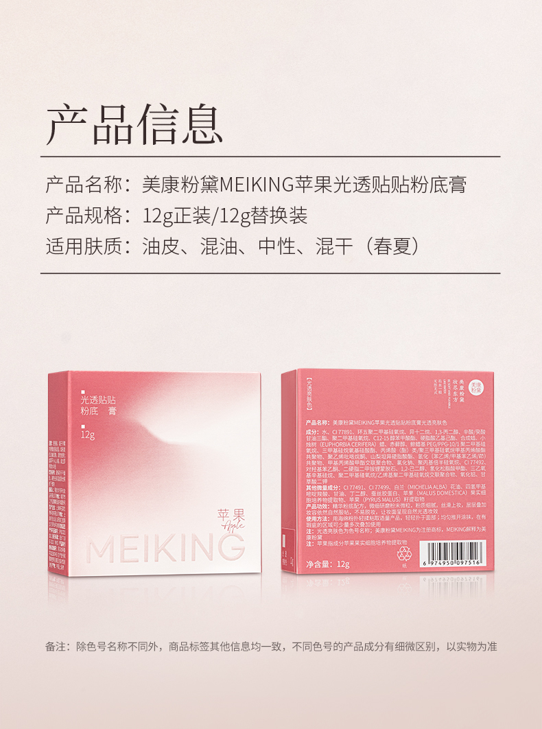 【微商城】【新品上新】美康粉黛 苹果光透贴贴粉底膏