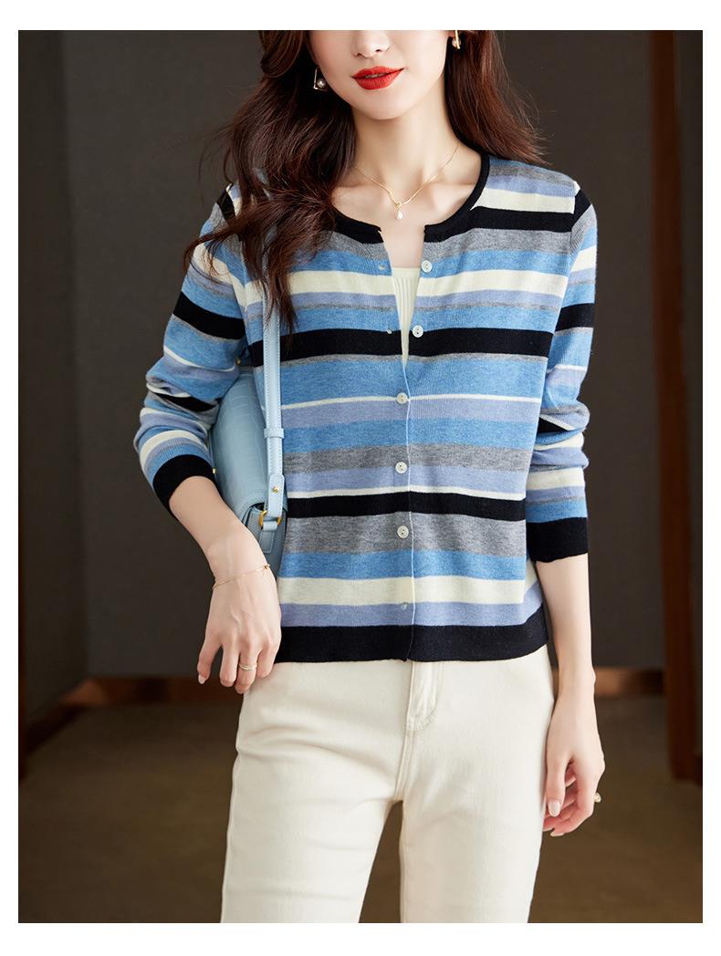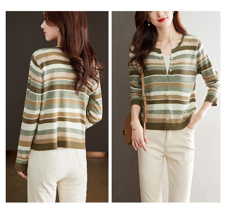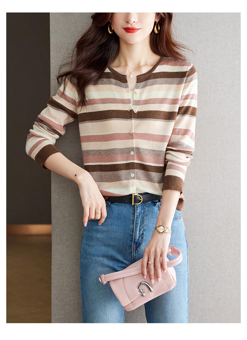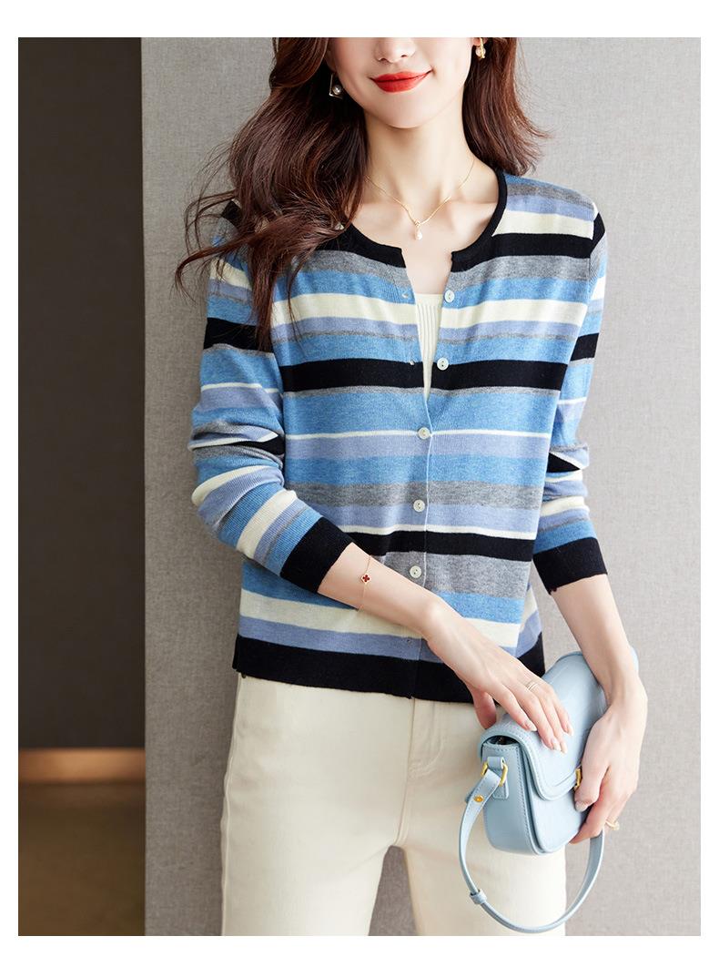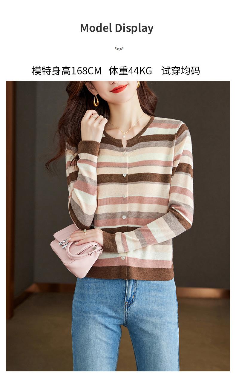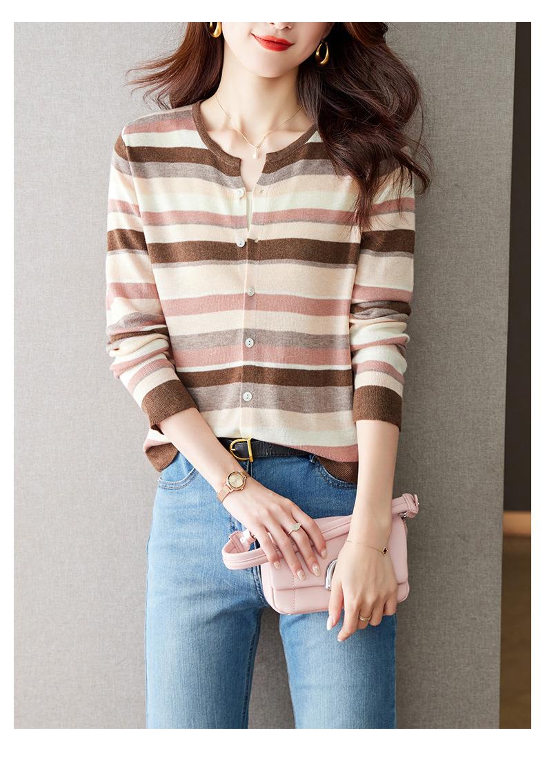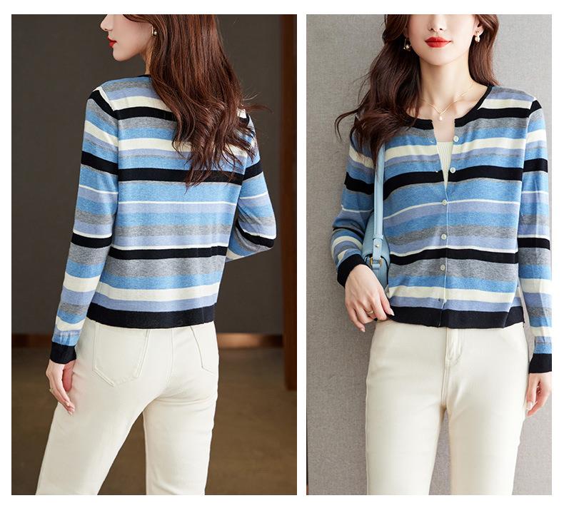 2023新款女长袖彩色针织条纹开衫
