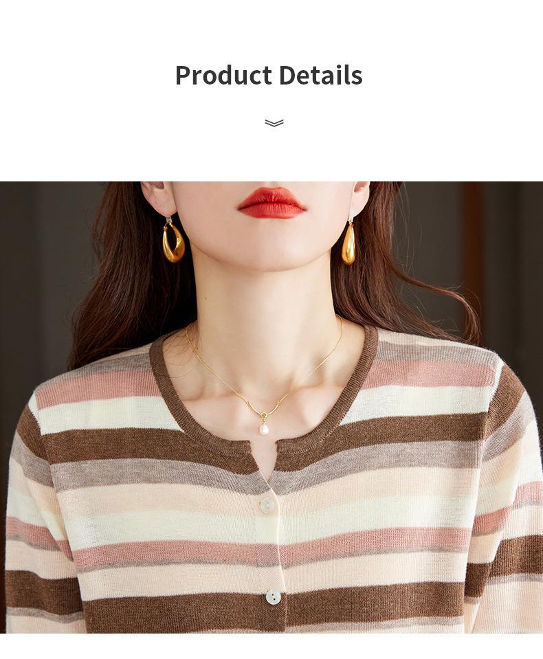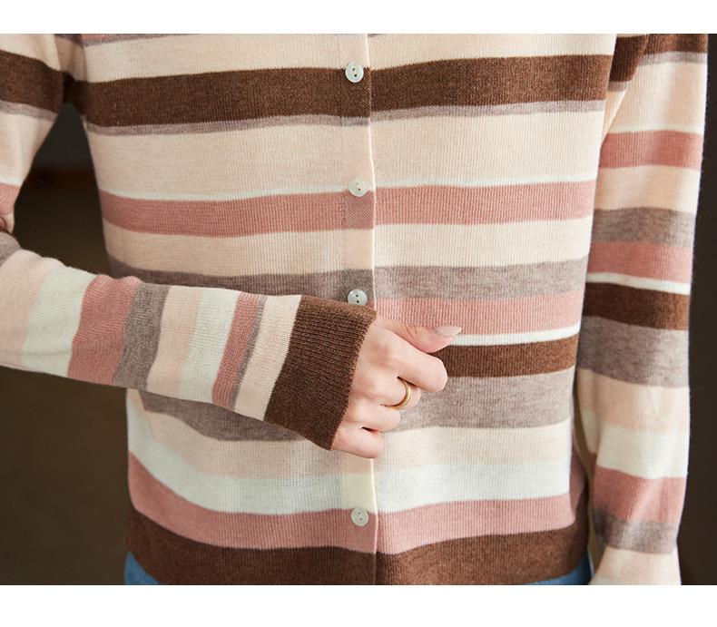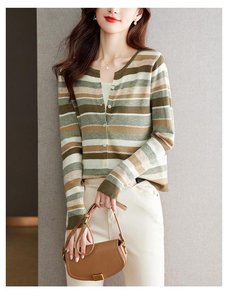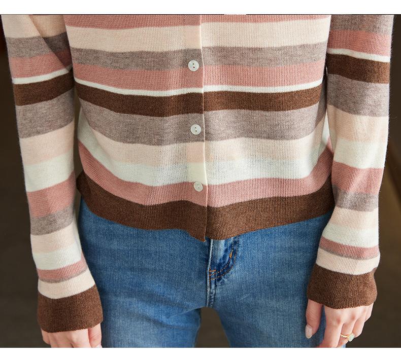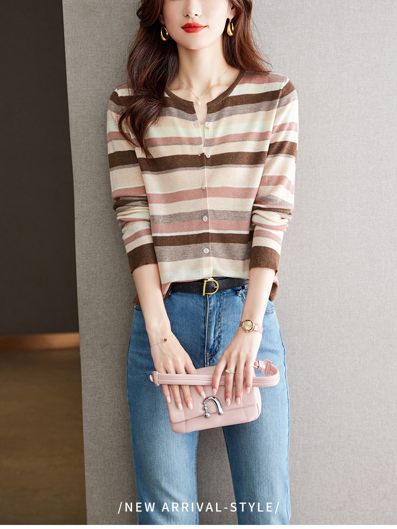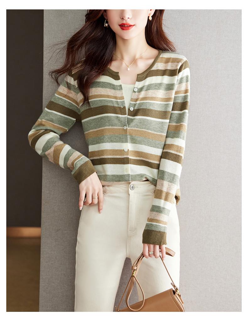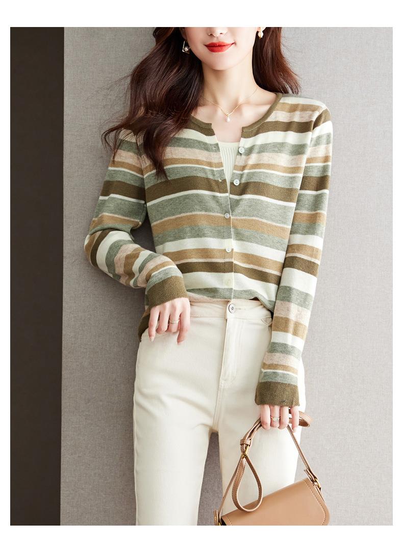 2023新款女长袖彩色针织条纹开衫