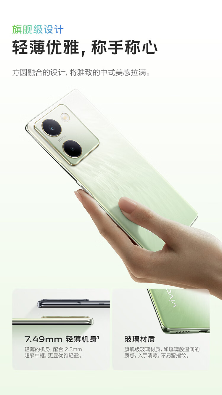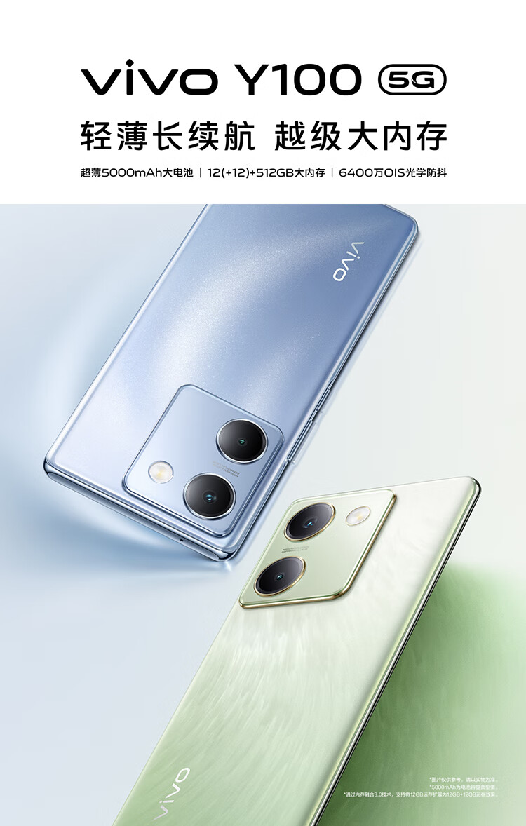 vivo Y100 12GB+512GB 璃光蓝 超薄5000mAh电池 6400万OIS光学防抖 44W超快闪充 5G 快充 拍照 专享