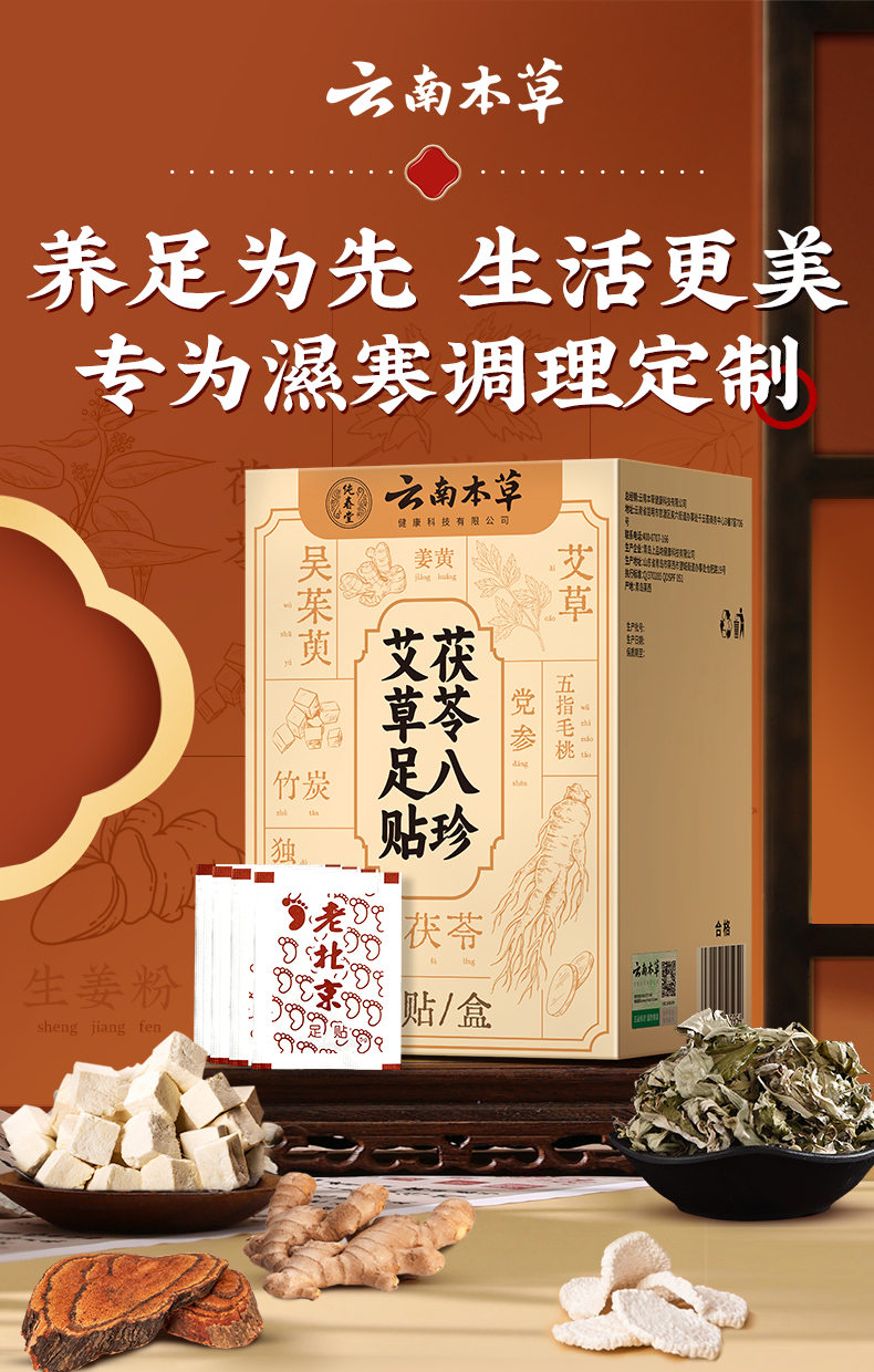 云南本草元气茯苓八珍足贴艾灸艾草贴湿气重排体内湿寒