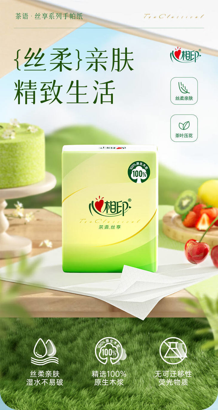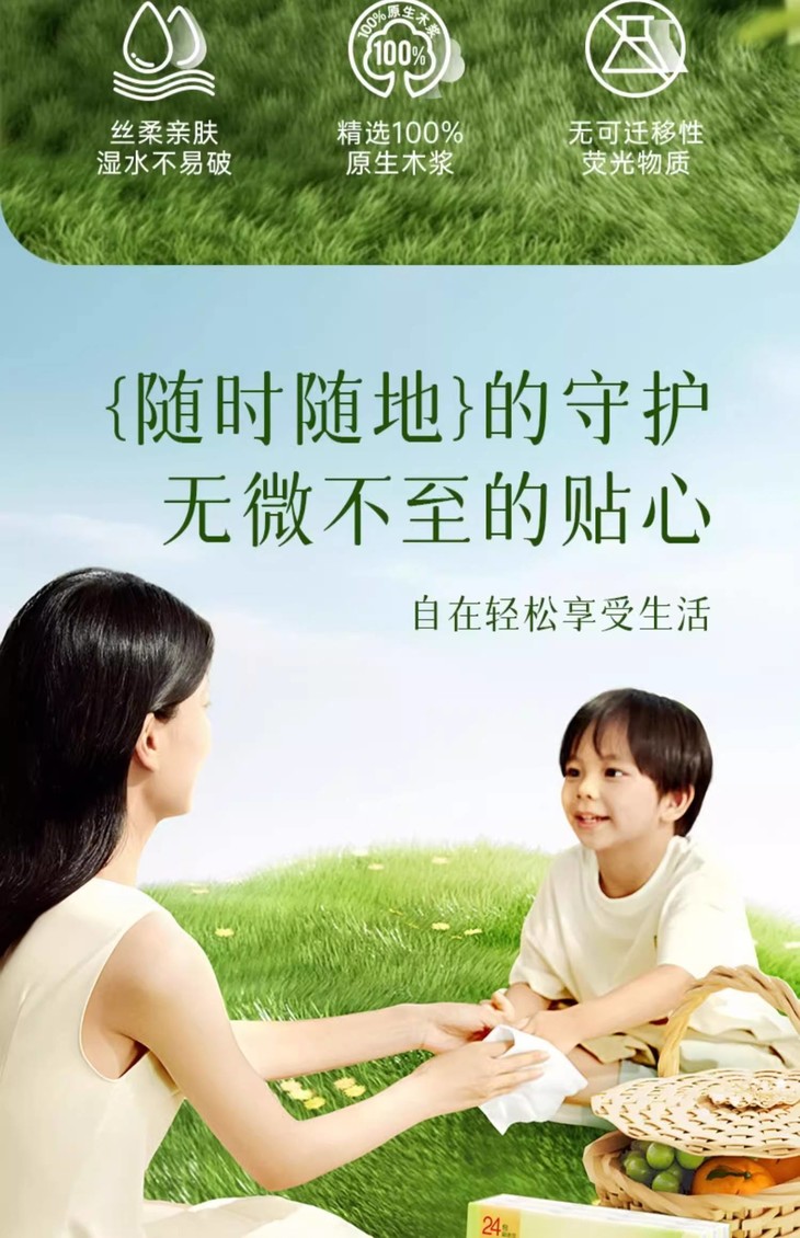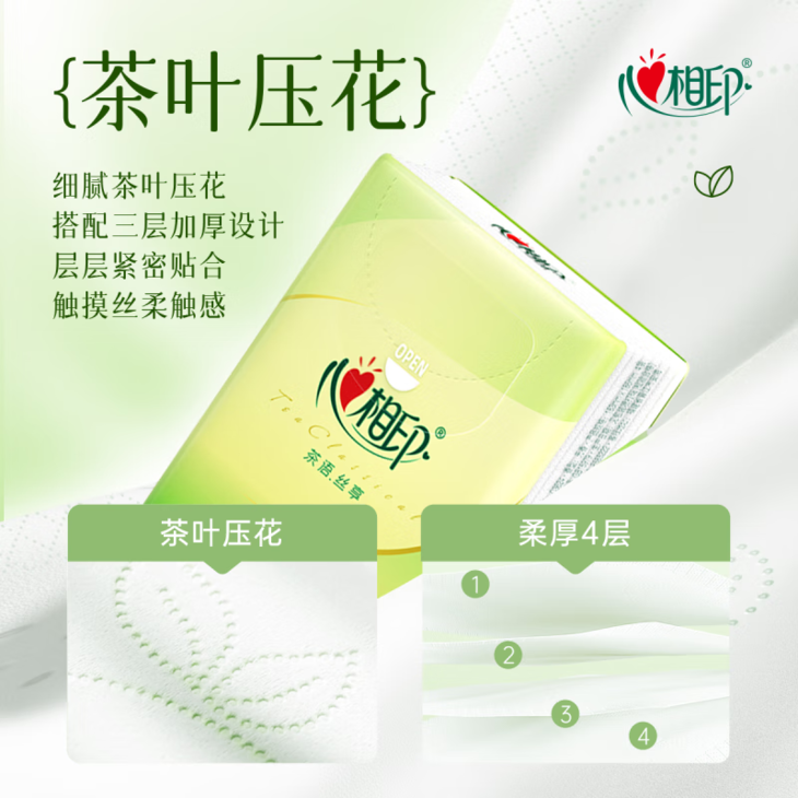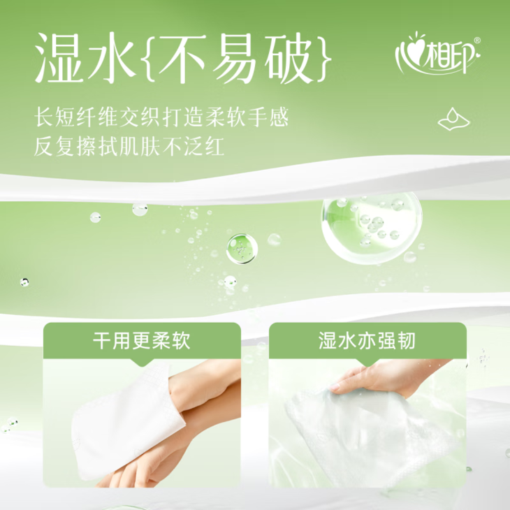 ✨ 为什么它值得囤? 1⃣ 【4层茶叶压花+100%原生木浆】 ✨ 每一张都细腻到像摸云朵!茶叶压花设计不仅颜值高,层层紧密贴合,干用亲肤不泛红,湿水也能强韧不易破!擦汗、补妆、擦手都不掉屑~ 2⃣【安全0添加!母婴可用】 🌿 无香型+无可迁移荧光剂,敏感肌、宝宝擦嘴都超安心!原生木浆的天然触感,用完皮肤滑溜溜~ 3⃣【迷你身材,巨能装!】 📏 183mm×186mm 的黄金尺寸,小包也能塞6张!出差旅行、户外野餐、通勤约会,随手抽一张,再也不怕尴尬时刻!