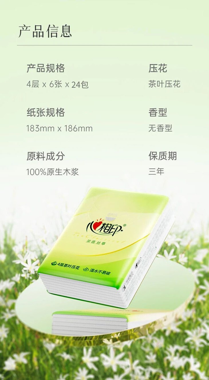 🔥姐妹们!挖到宝了!💖 这款心相印【心相印手帕纸茶语丝享系列】!🌈9.9元到手24包(每包4层6片),性价比高到哭,😄必须安利给你们!