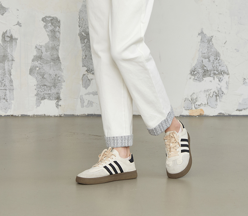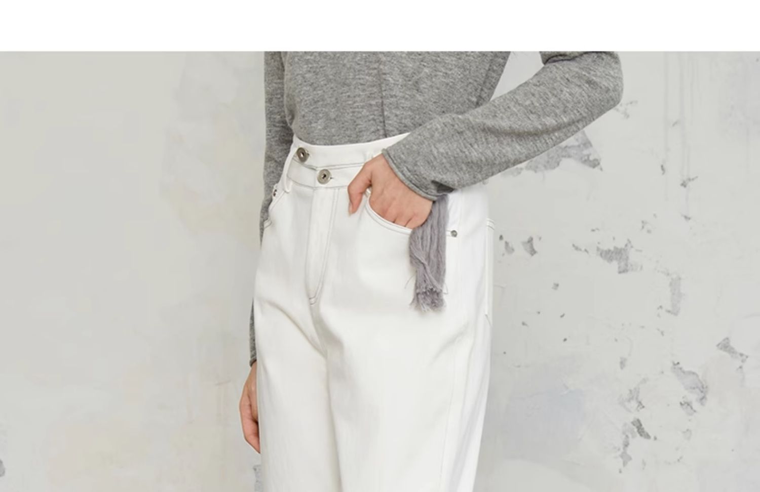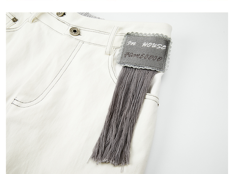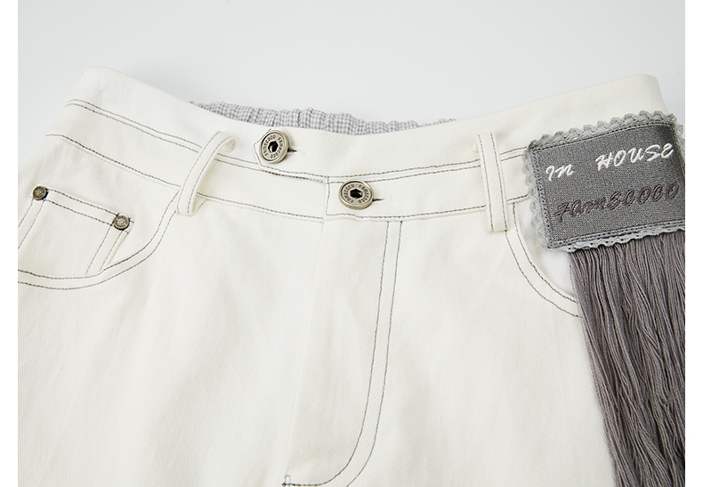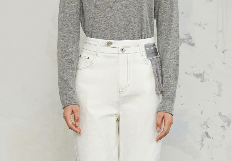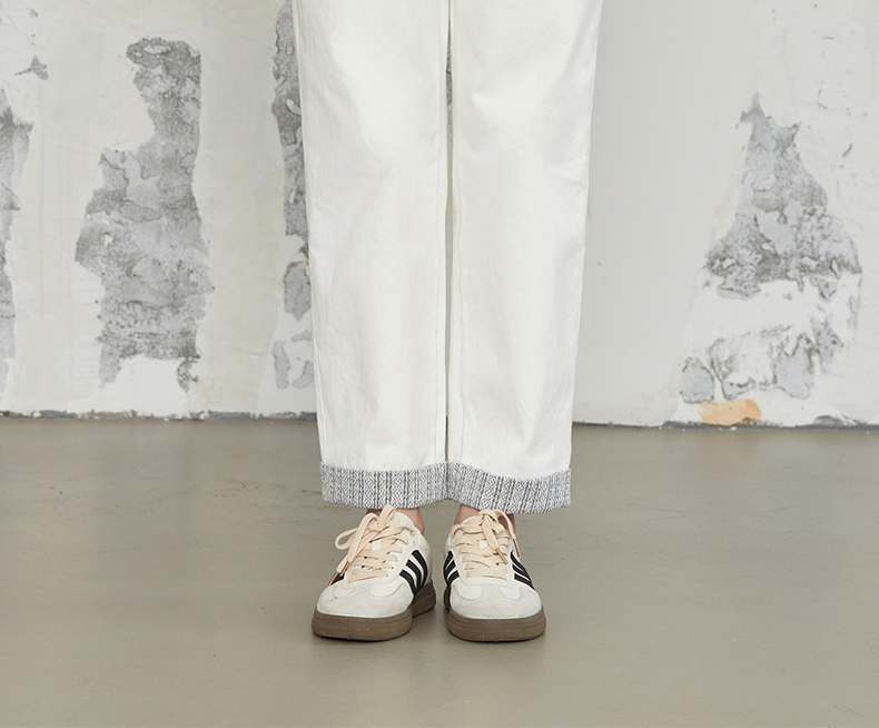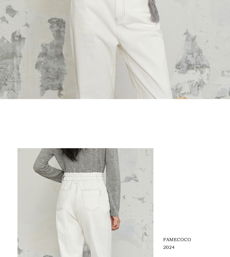 Famecoco商场同款刺绣拼接简约通勤纯棉直筒长裤春秋款FABGGA006