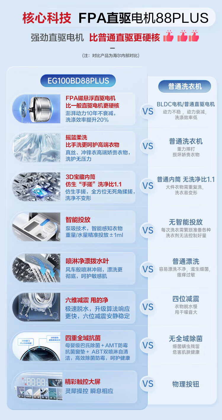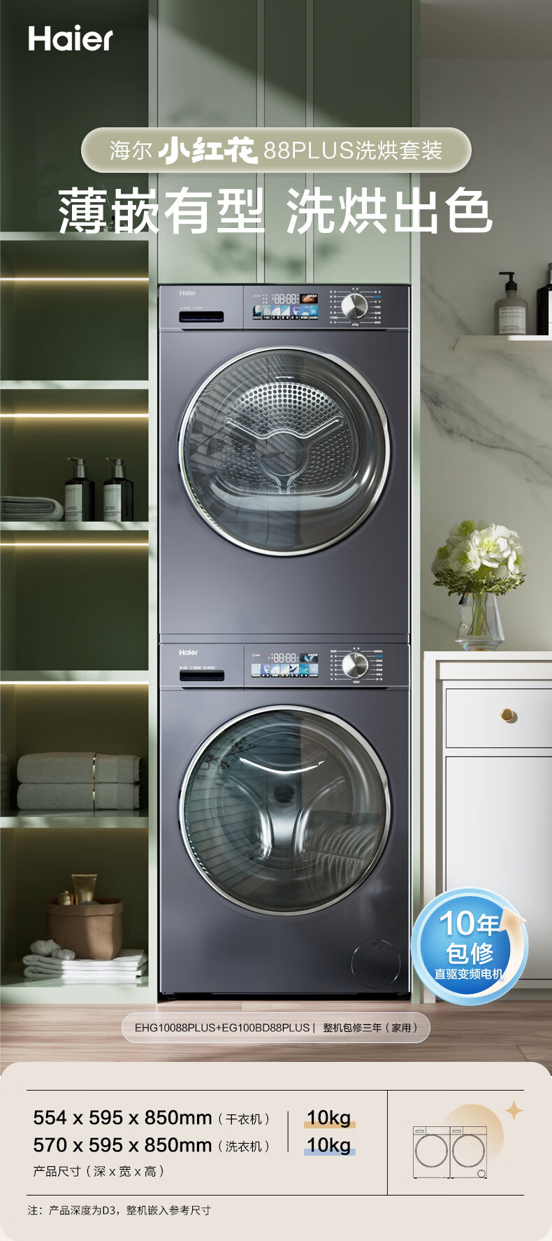海尔(Haier)【小红花套系】洗烘套装 10KG滚筒洗衣机+热泵烘干机 88PLUS+88PLUS