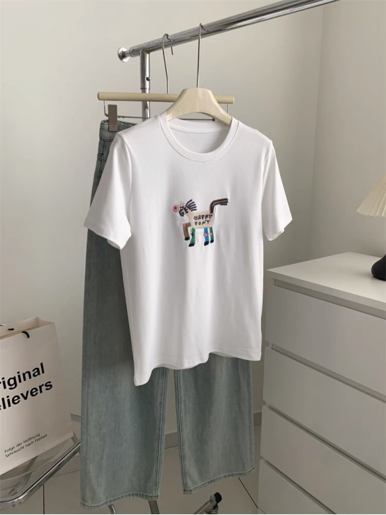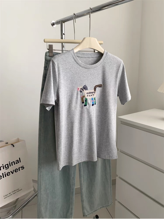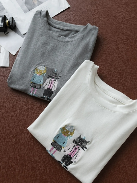 💕【菲诺偲-天丝刺绣T恤】采用精致刺绣工艺,👏图案立体生动,增添童趣与设计感🏆,适合喜欢萌系风格的人群16针机织,把肤感提升到极致 出汗没有发粘感,太舒服了!!💥