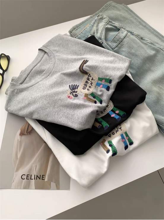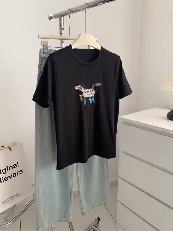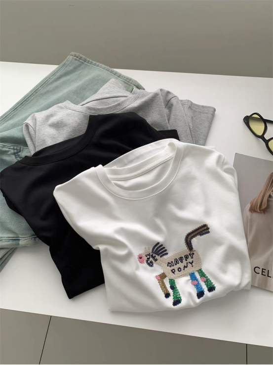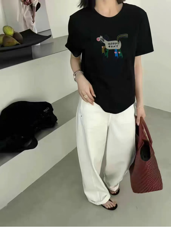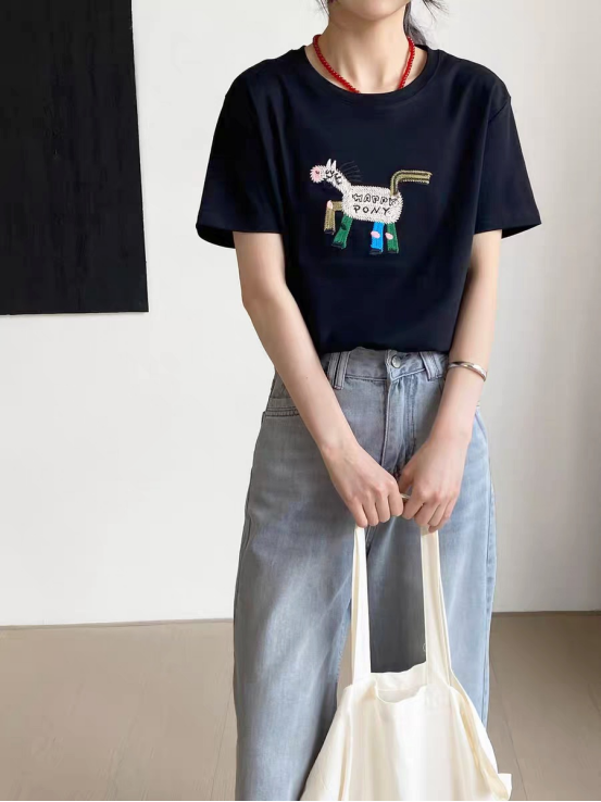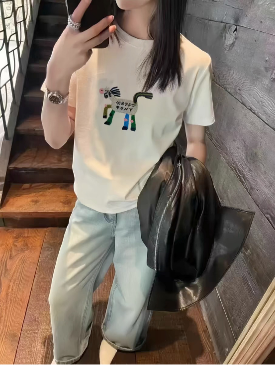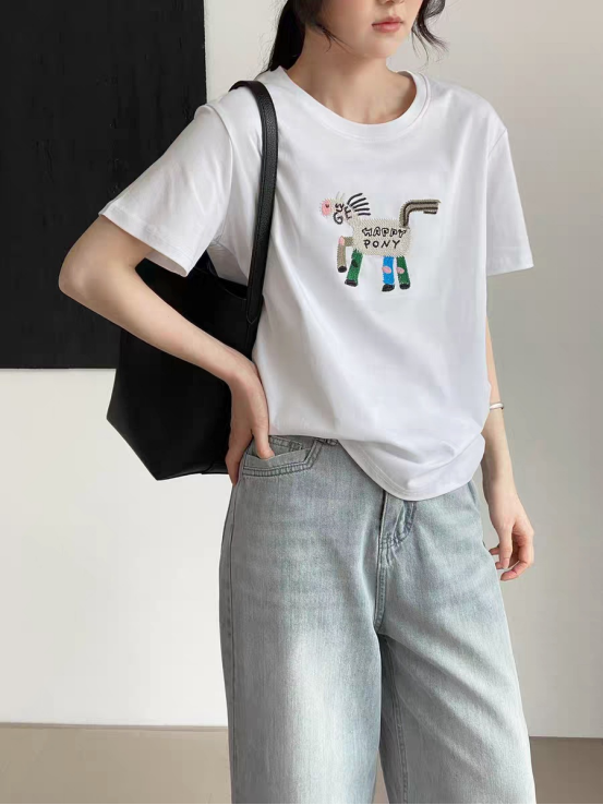 93%天丝~小马/小猫刺绣显瘦短袖T恤 甄选双股32支天丝面料 超细16针机织,把肤感提升到JI致 上身有种suo有毛孔都在呼吸的畅快感 里里外外倍感细腻柔滑 出汗没有发粘感,太舒服了!! 面料强韧度得到升级,回弹恢复性很好 看着肉感强,但是上身感觉不到啥重量 有垂感,穿着不紧贴肉 柔软舒适度灰常高~ 天丝面料搭配刺绣小马设计 视觉显瘦也狠有视觉冲击感 让你在人群中格外出彩~