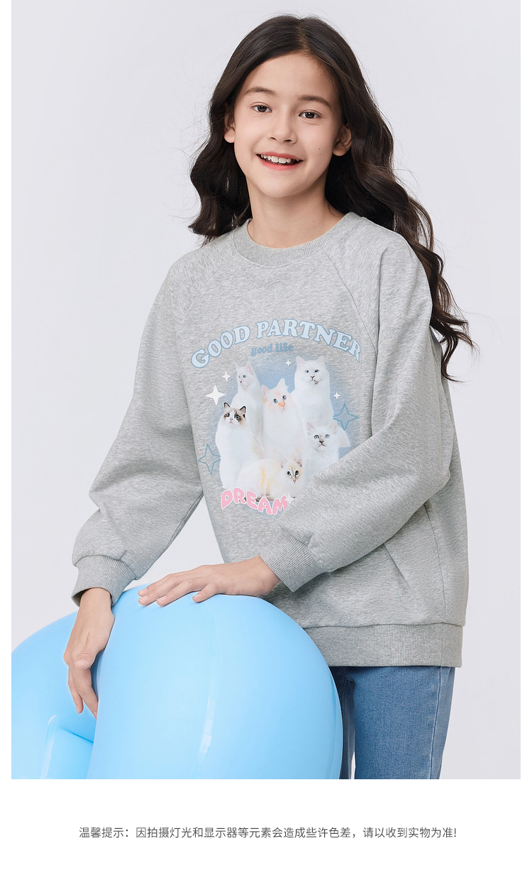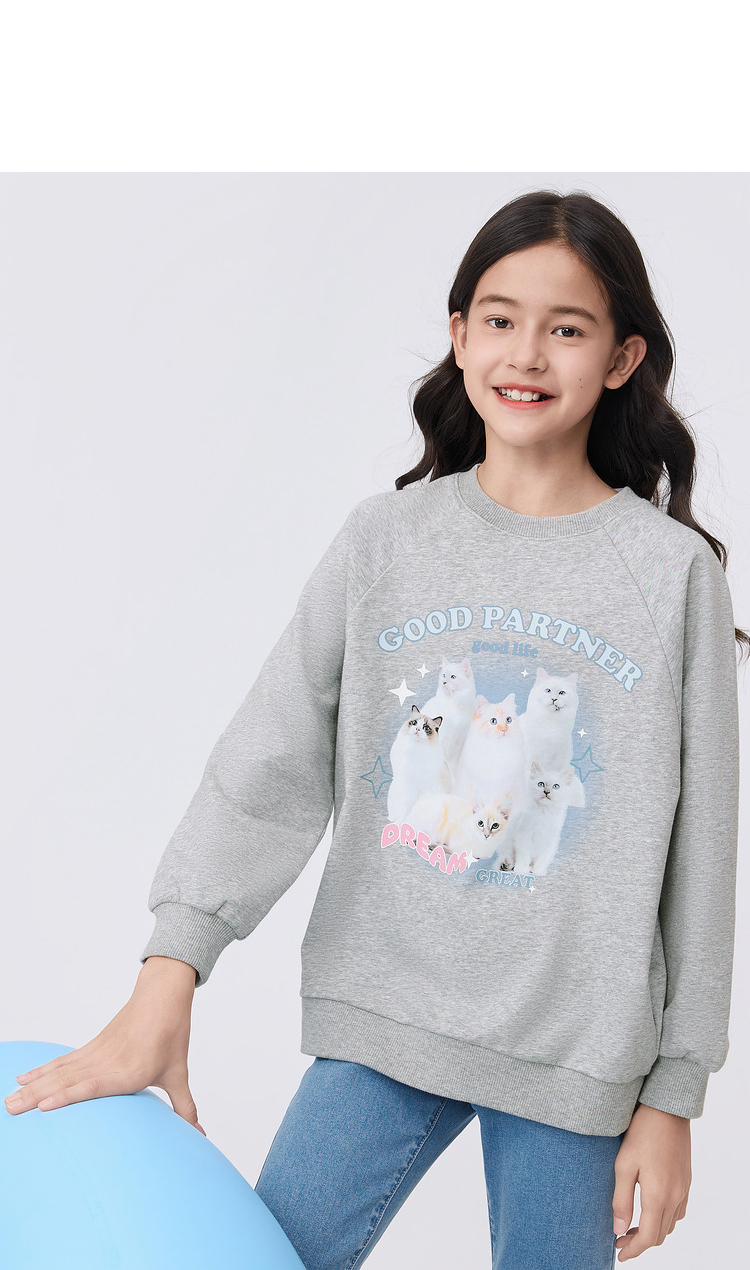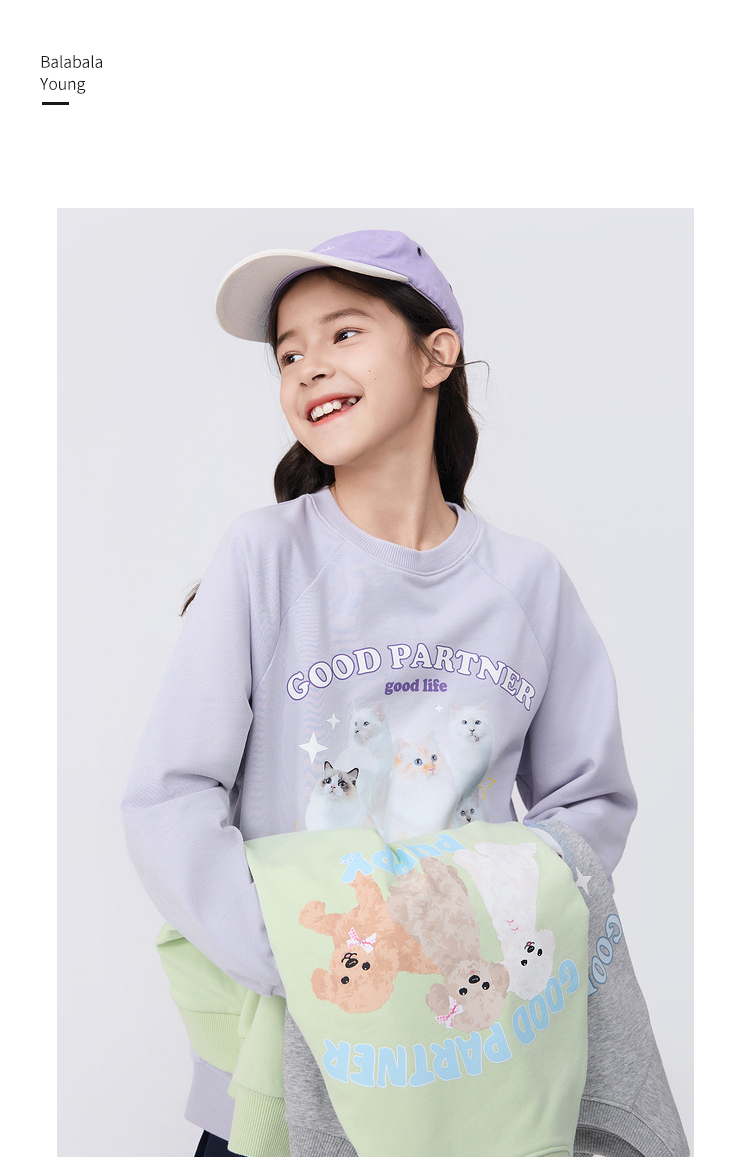 巴拉巴拉童装女童卫衣春装新款中大童长袖上衣圆领套头萌宠潮