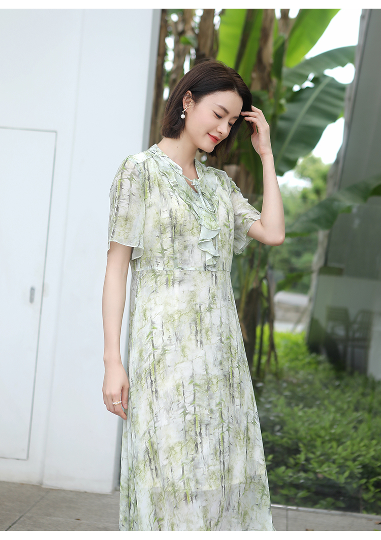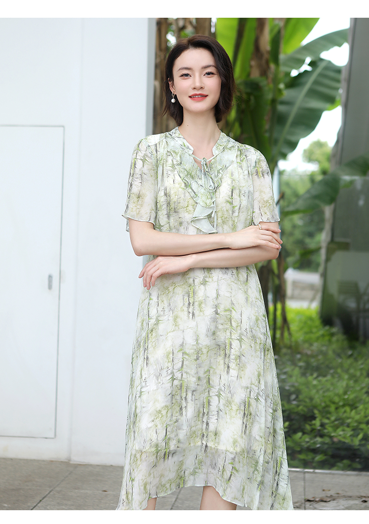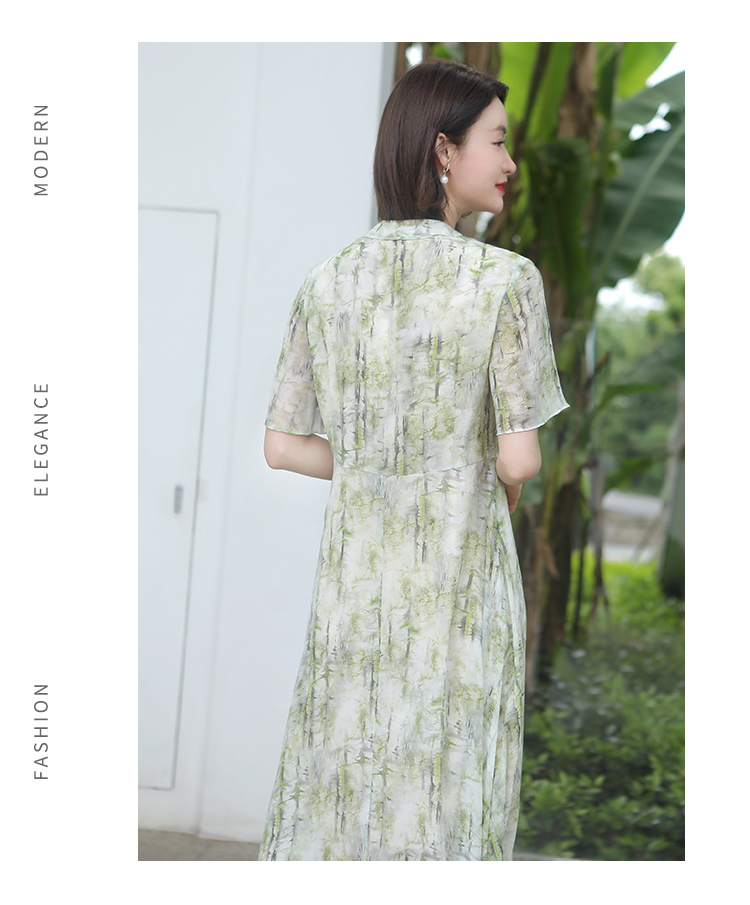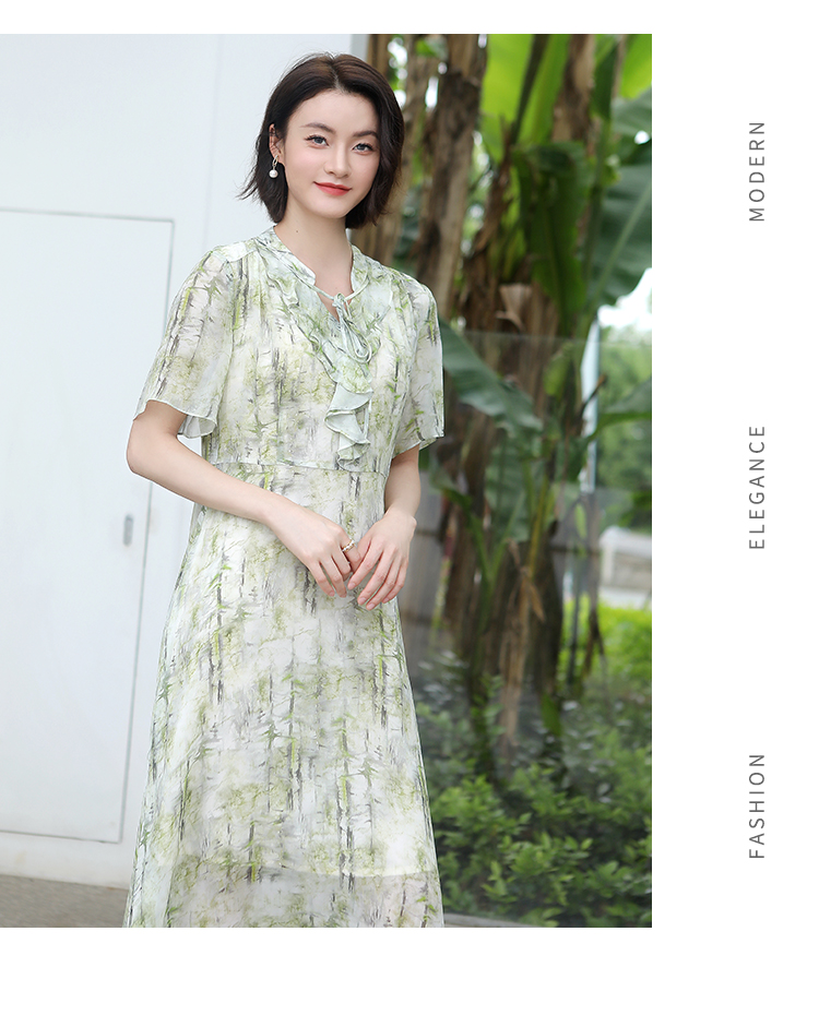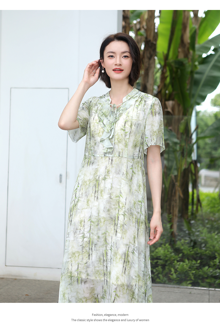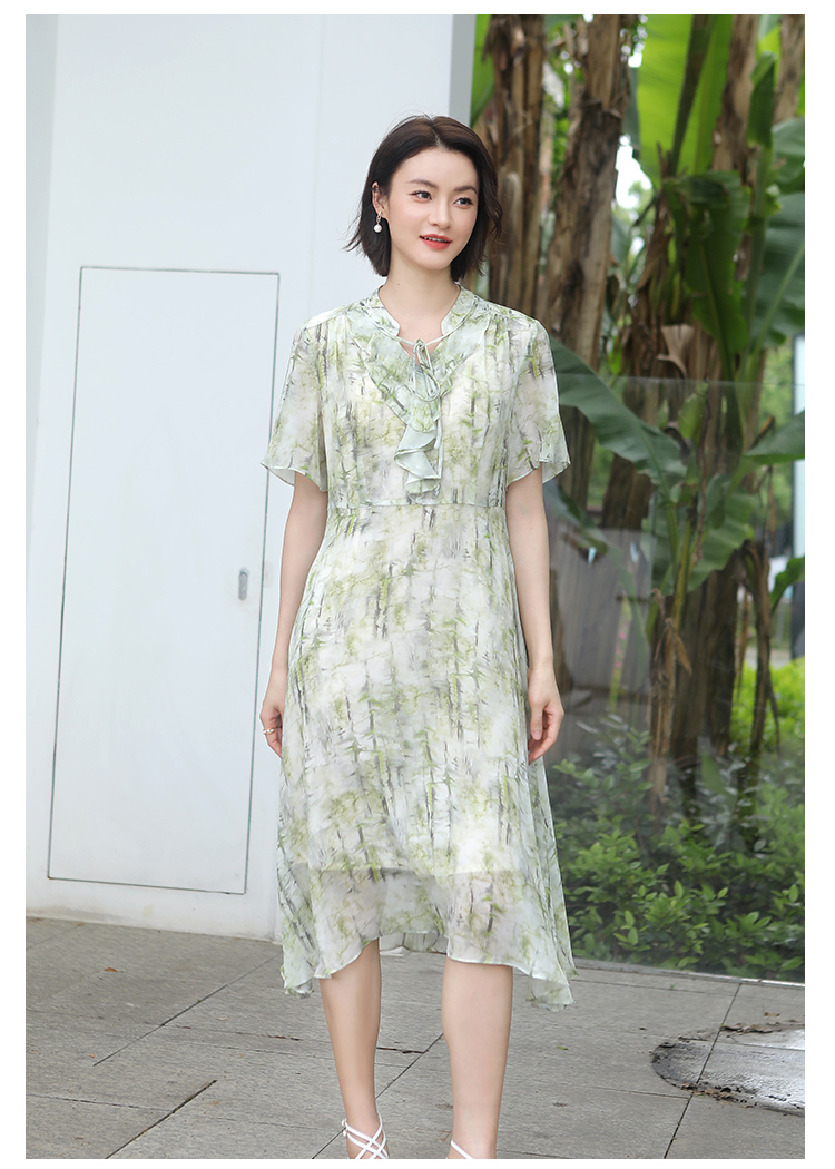佐尔美夏季新款 气质优雅渐变桑蚕丝中长连衣裙女E32LS89