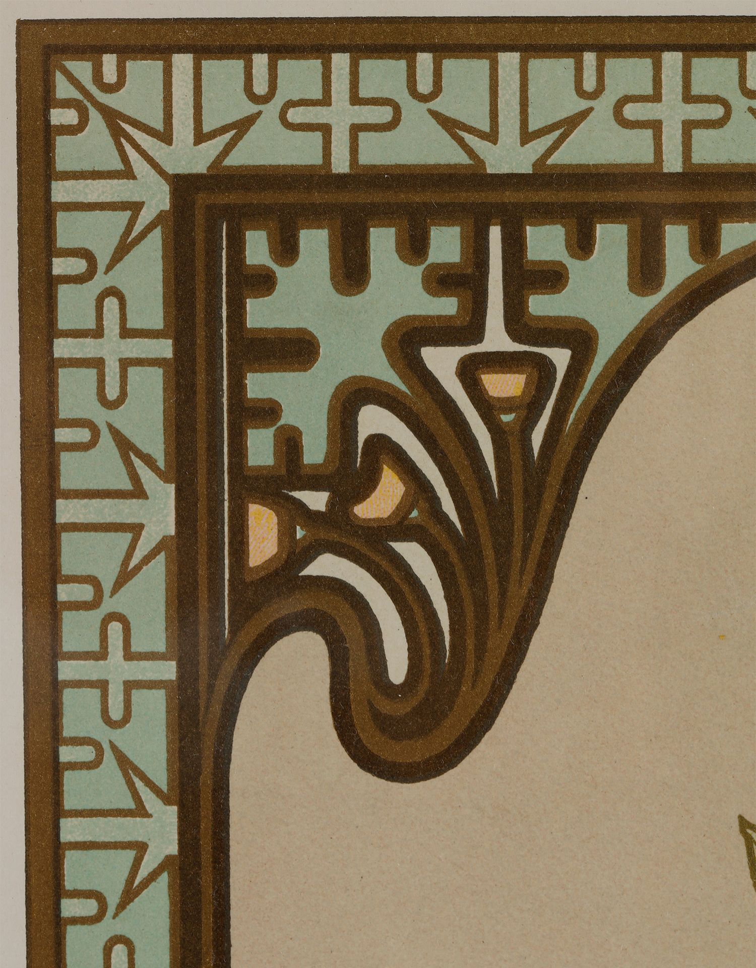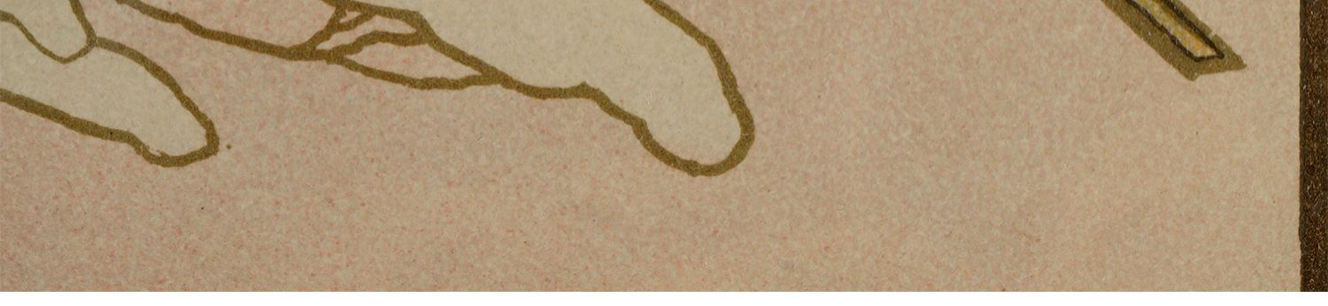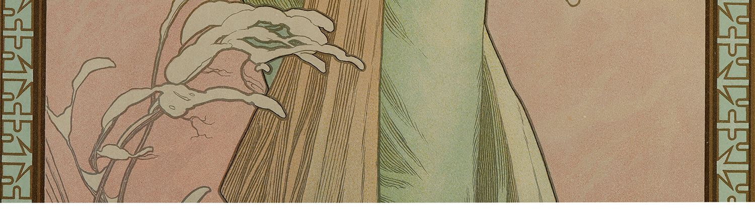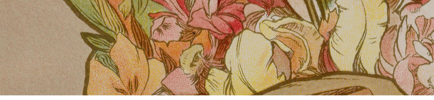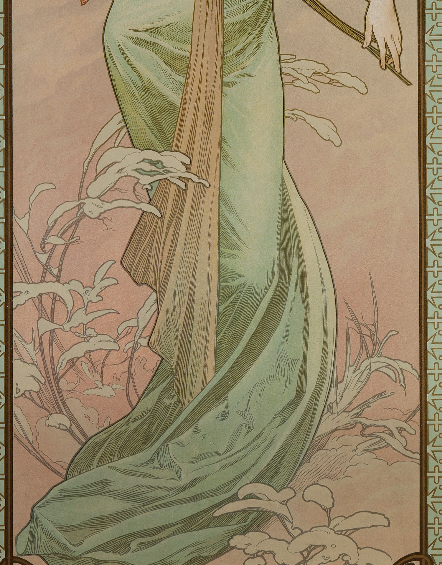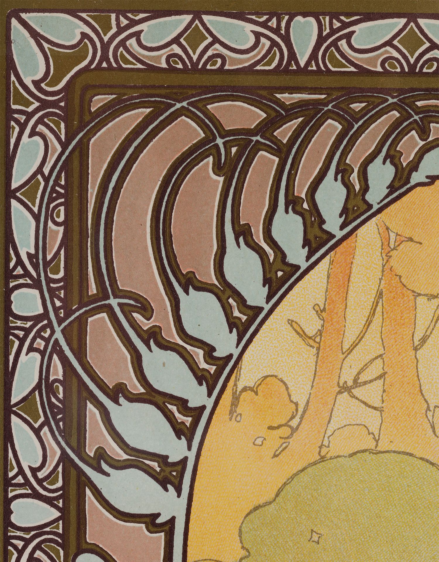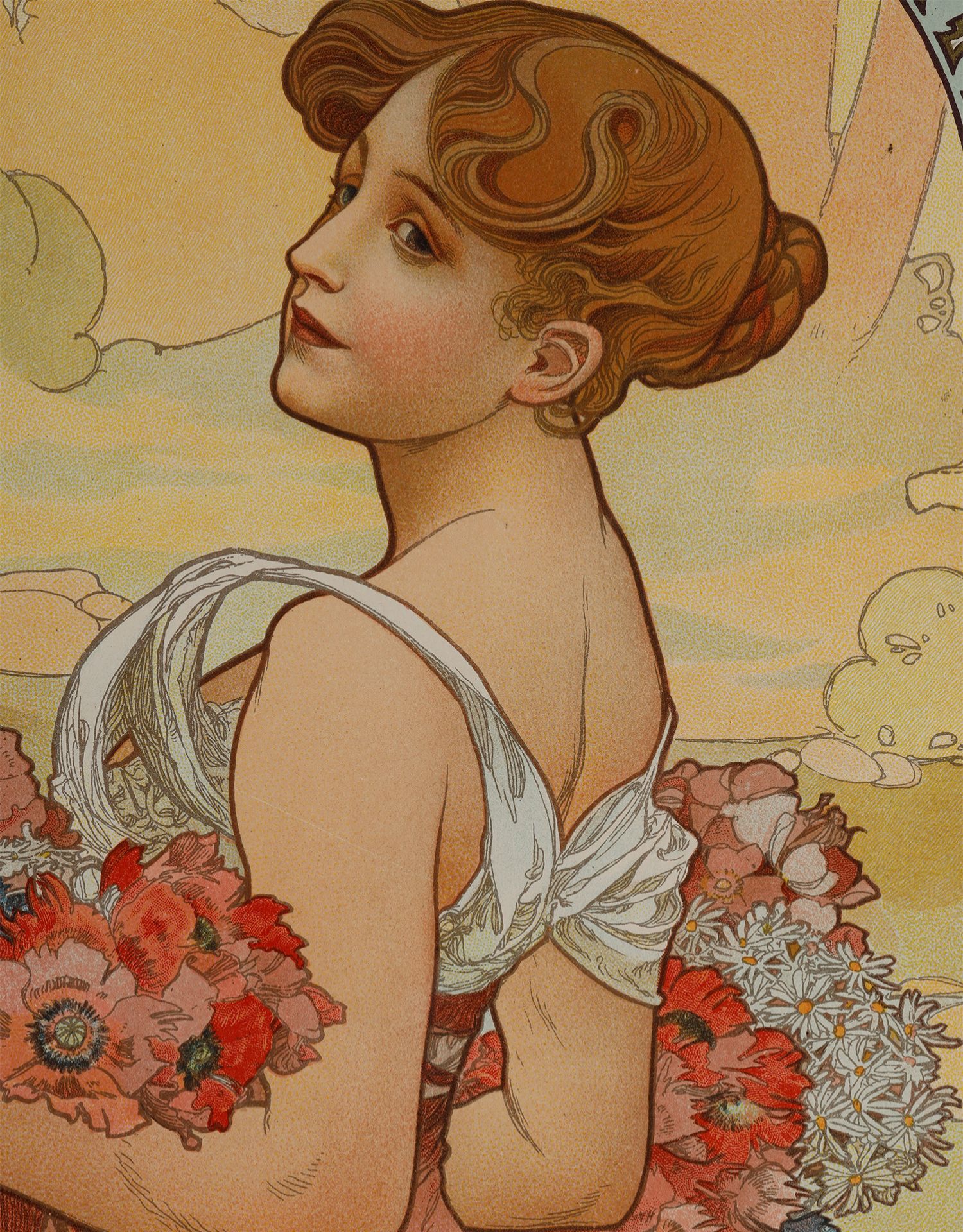 独角鹿西洋古董新艺术时期穆夏签名原版版画春Printemps与夏Eté