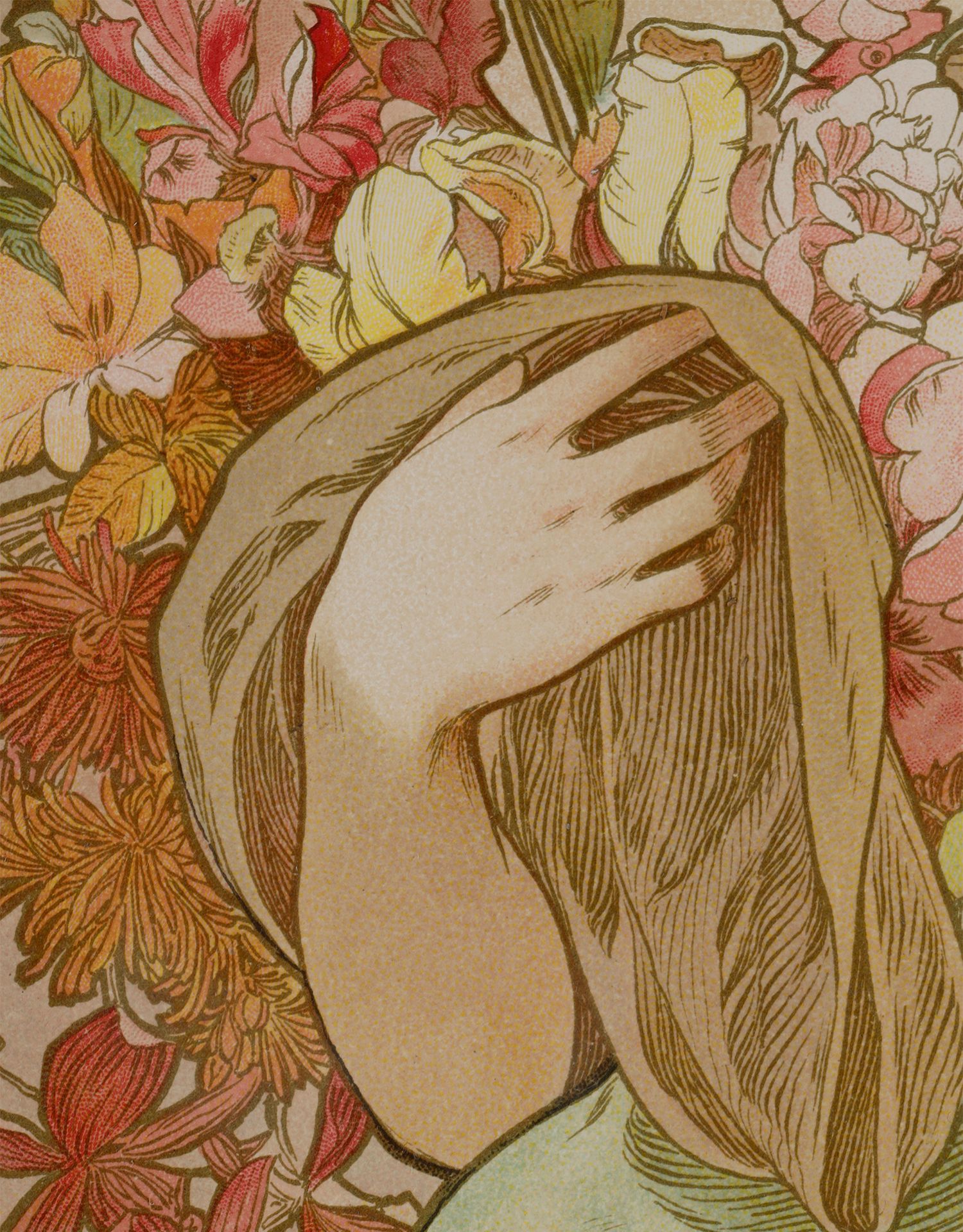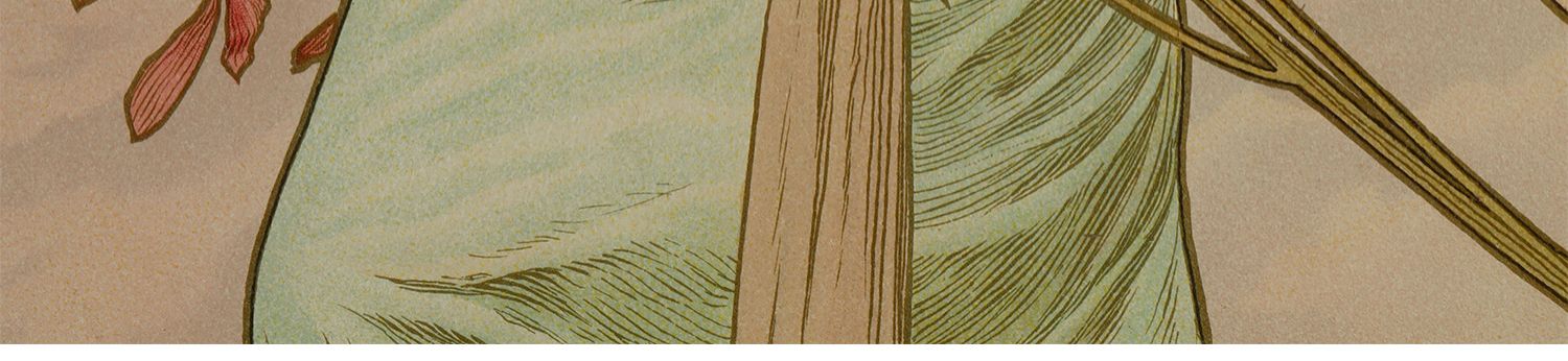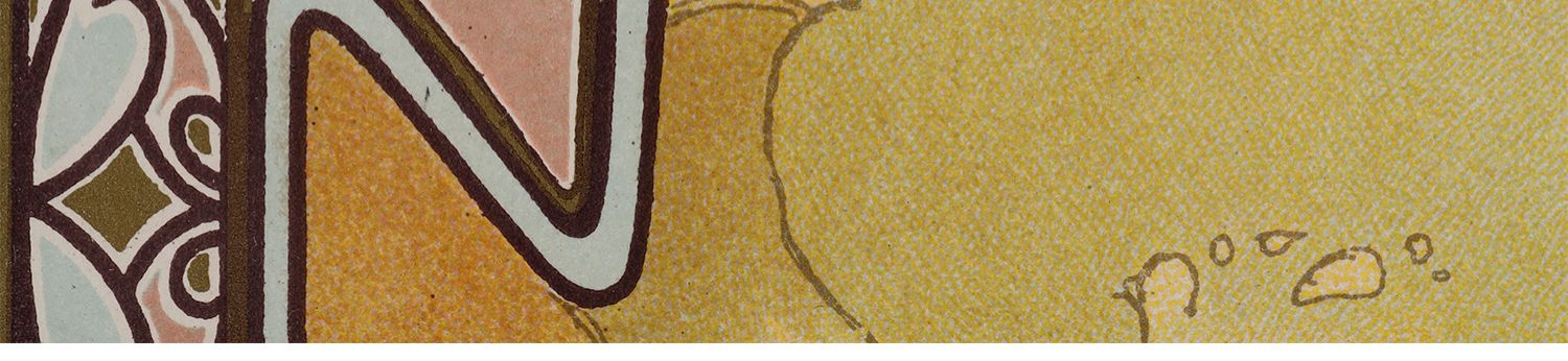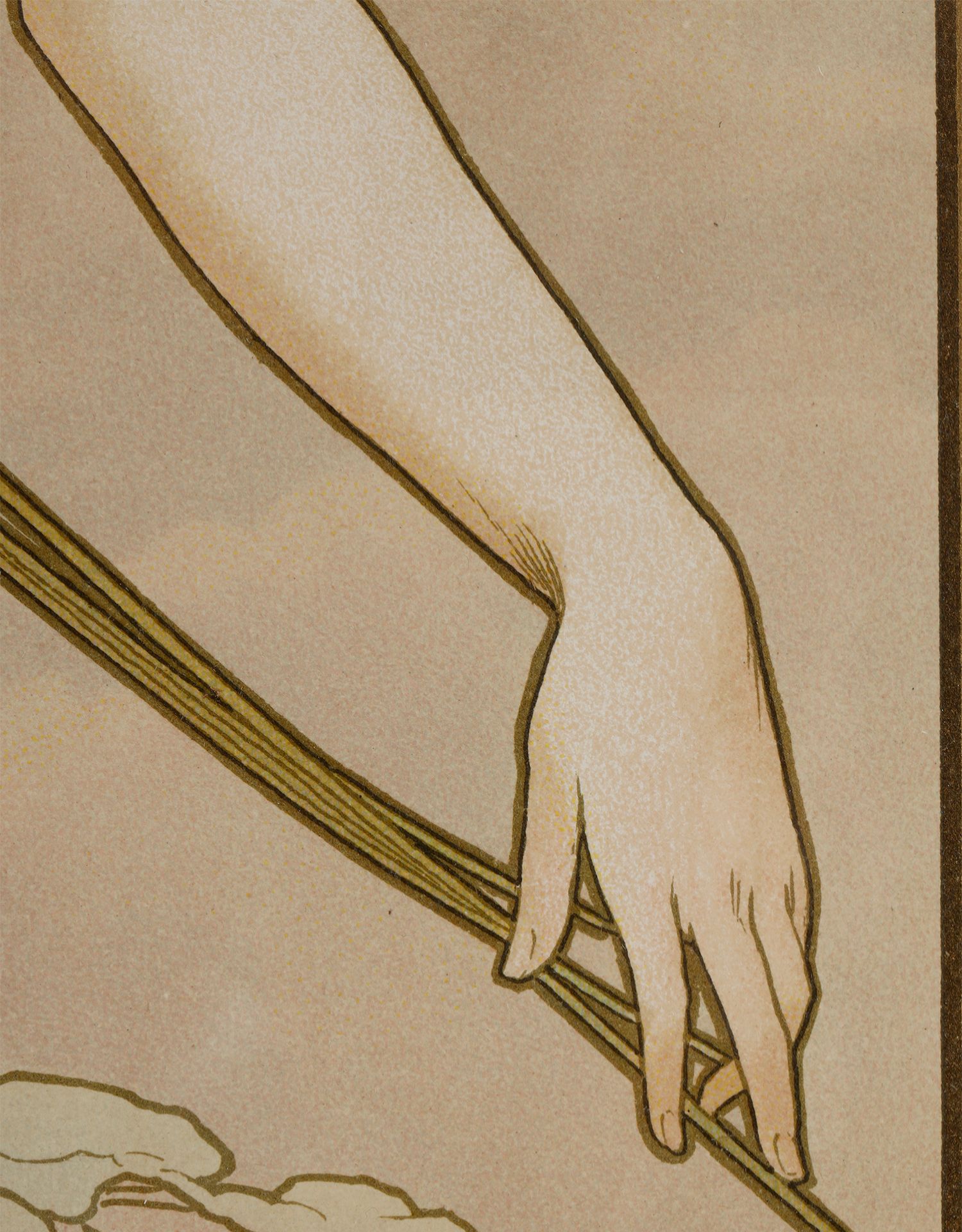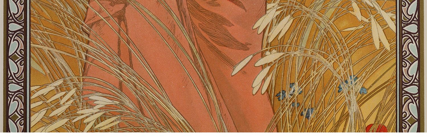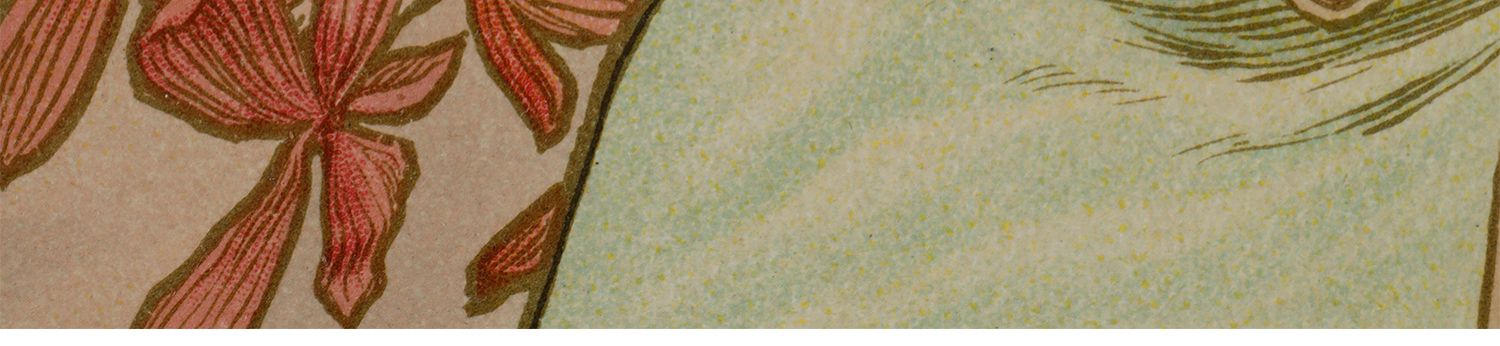 独角鹿西洋古董新艺术时期穆夏签名原版版画春Printemps与夏Eté