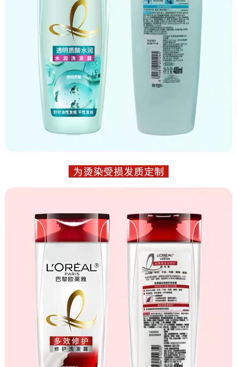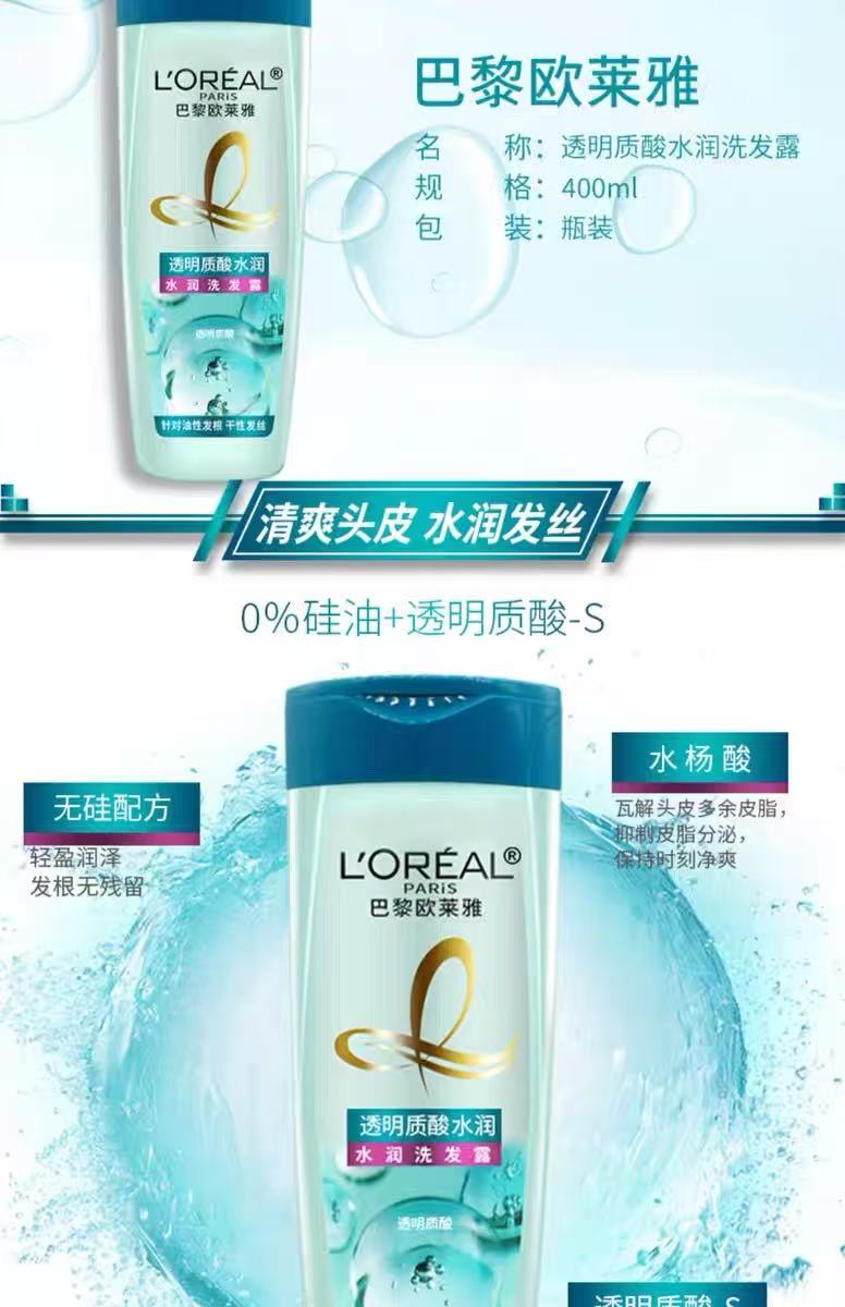 欧莱雅透明质酸水润洗发露400ml
