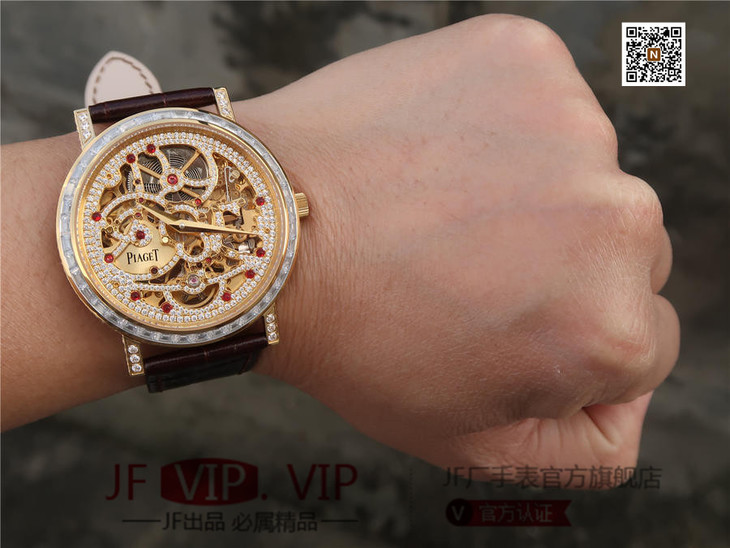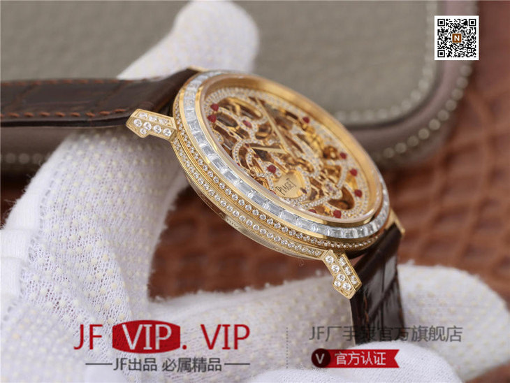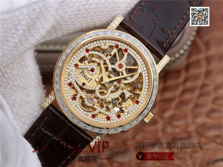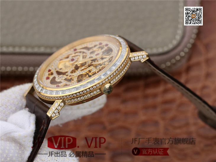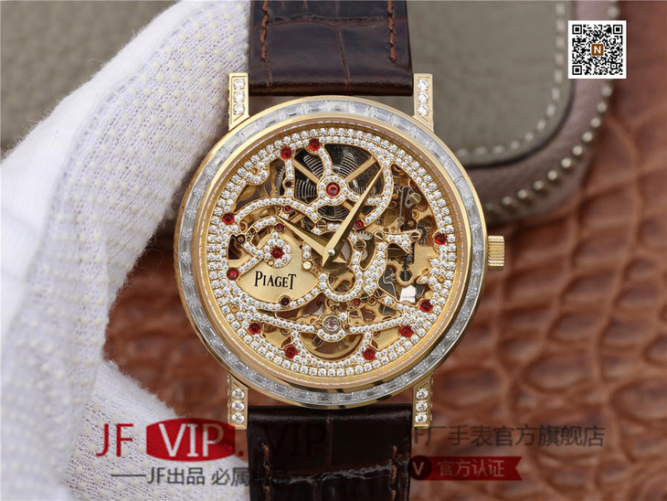 BBR伯爵超薄珠宝镂空腕表.搭配1200S全镂空手动上链机芯,动力储存72小时,研发耗时二年。推出伯爵 Aliplano超薄腕表尺寸为40mm