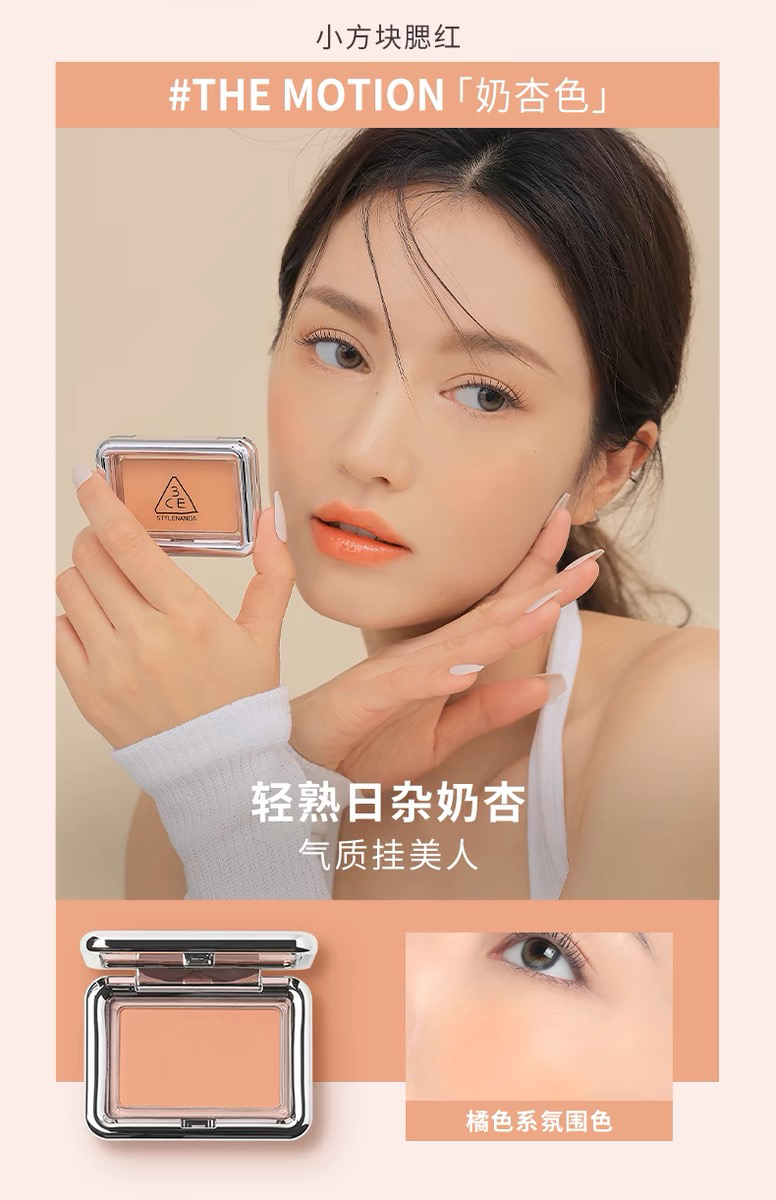 新色 3ce腮红SLIDE SLOWLY豆沙粉、THE MOTION嫩三文鱼奶杏色