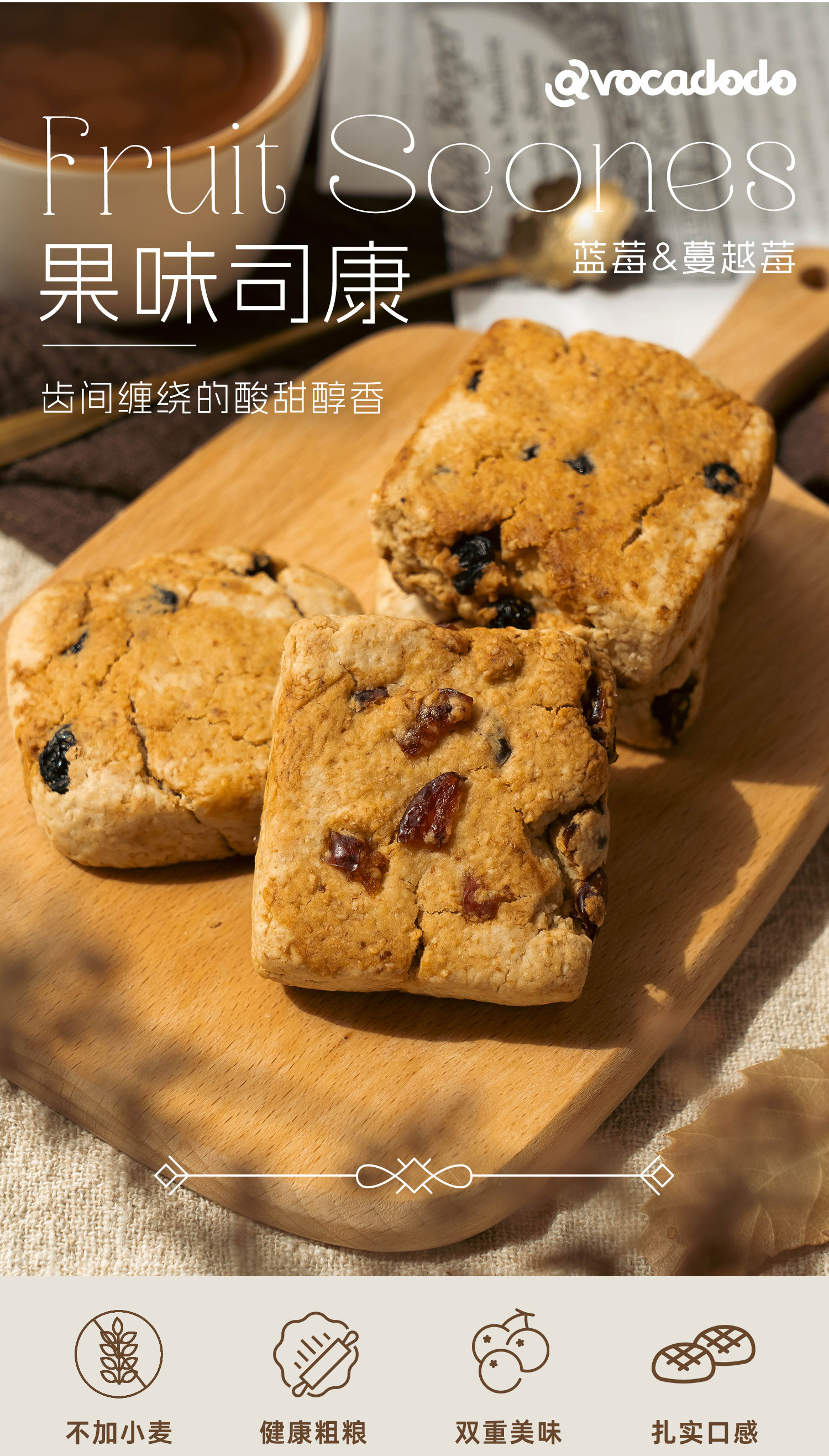 Avocadodo蔓越莓蓝莓司康不加小麦麸质蛋奶敏宝早餐牛油果果桥本