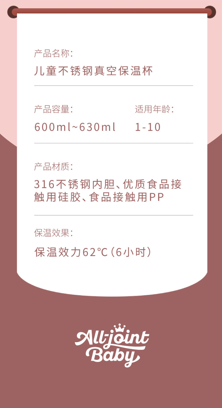 (超值)All-Joint优仅 儿童保温杯套装(含杯套和钱包) 600ml