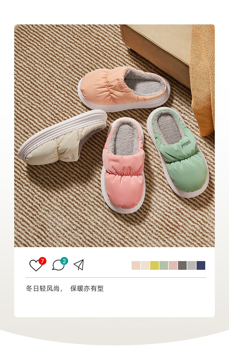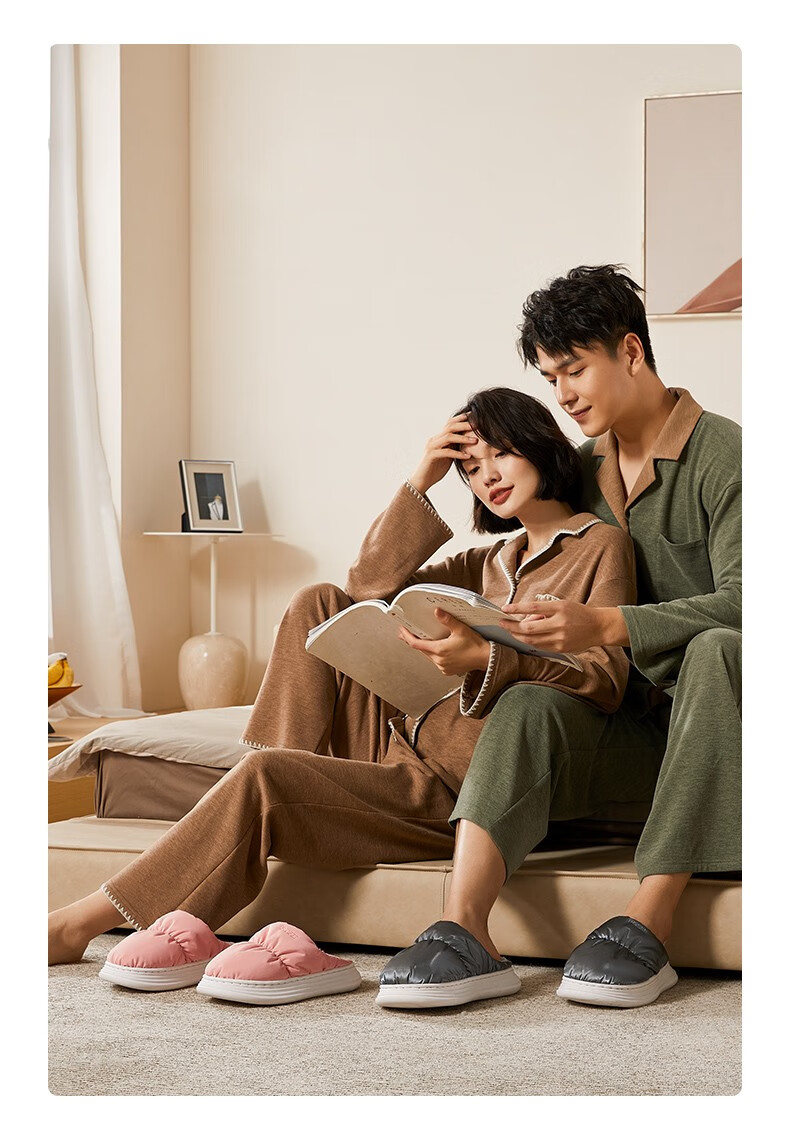 朴西棉拖鞋女冬季家居家踩屎感防滑情侣家用厚底棉拖 38~40码