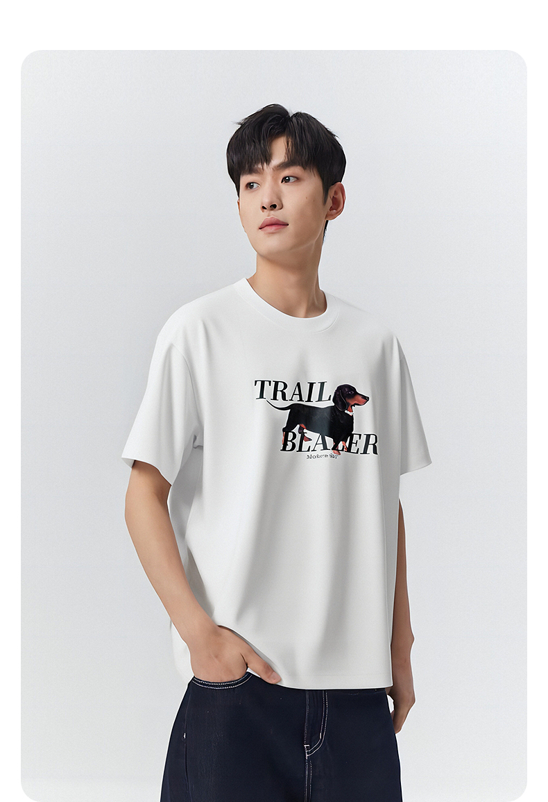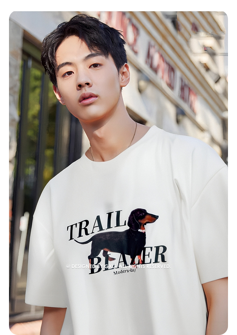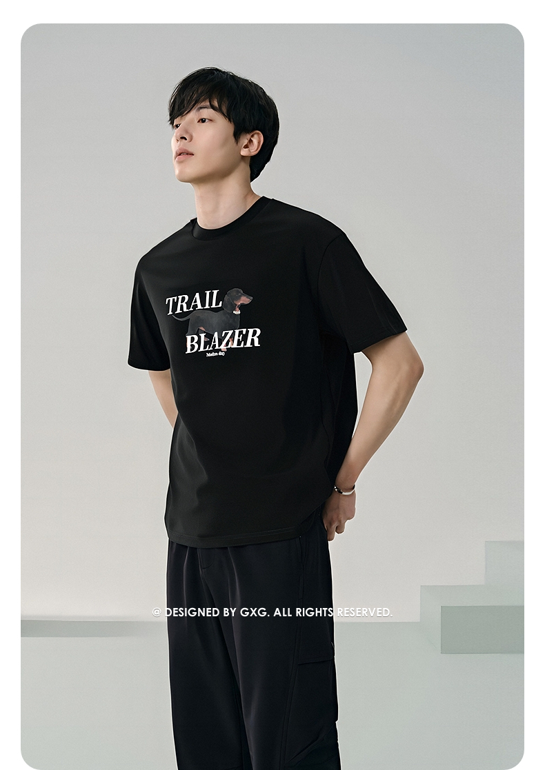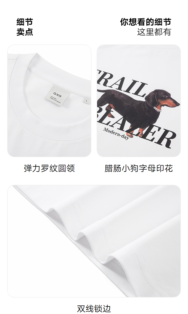 【凉感】GXG男装 圆领T恤腊肠狗图案印花双色短袖上衣 25夏新品