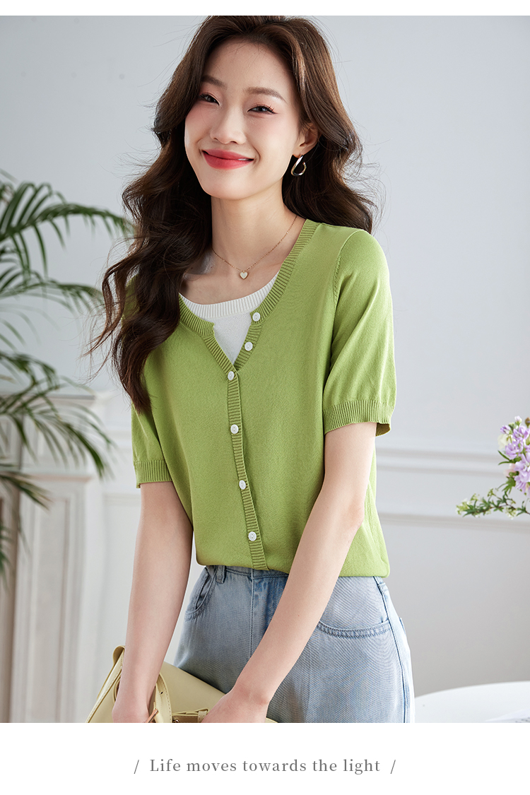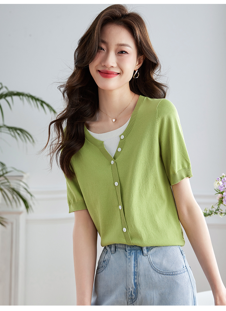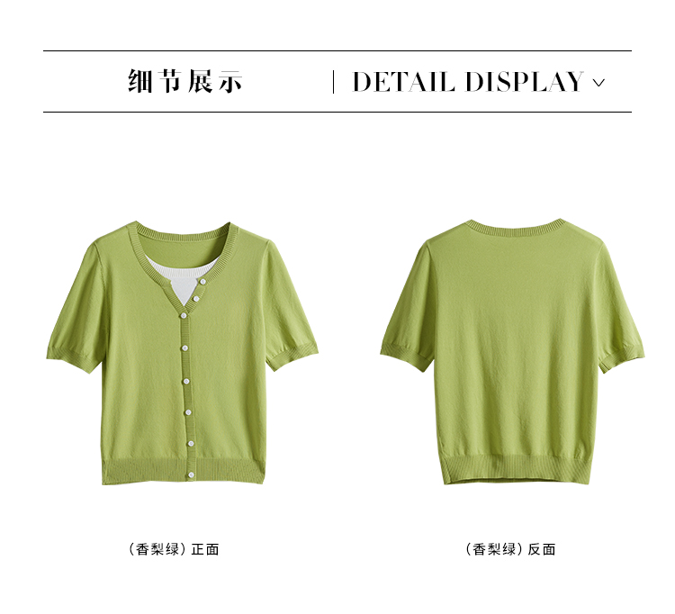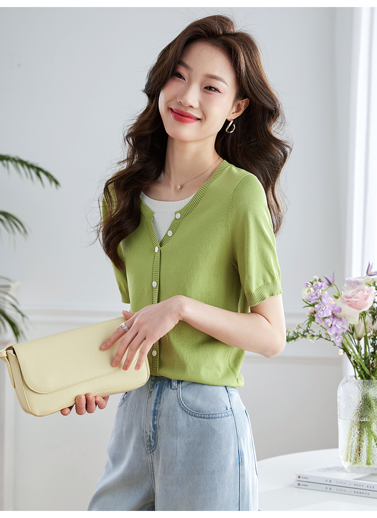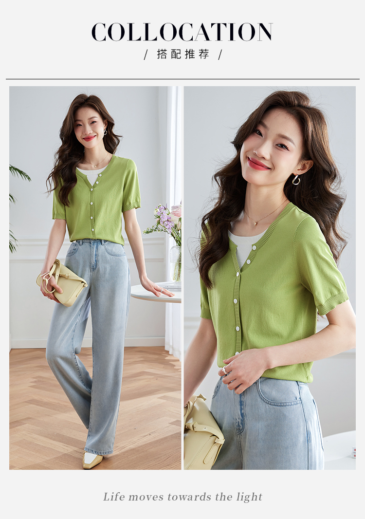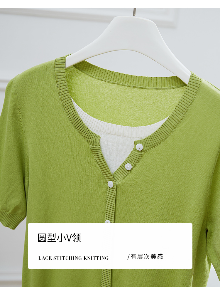 【专属特价】熙世界假两件短袖针织衫女薄款2025春夏新款别致冰丝上衣