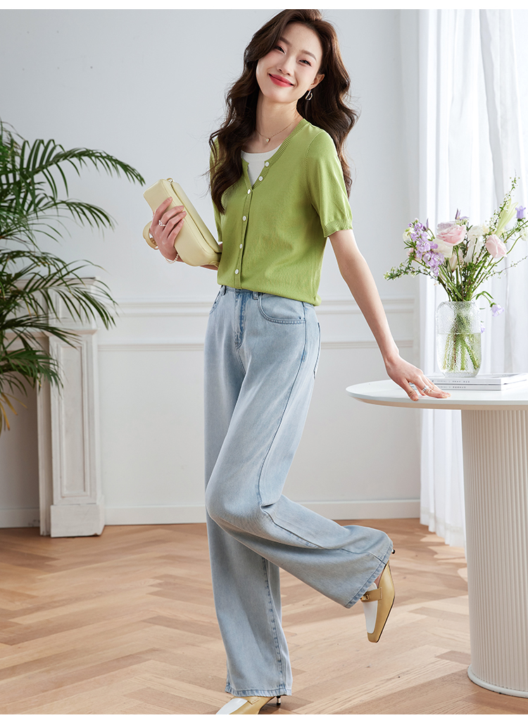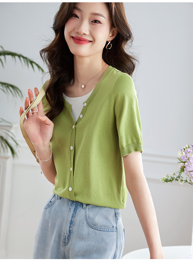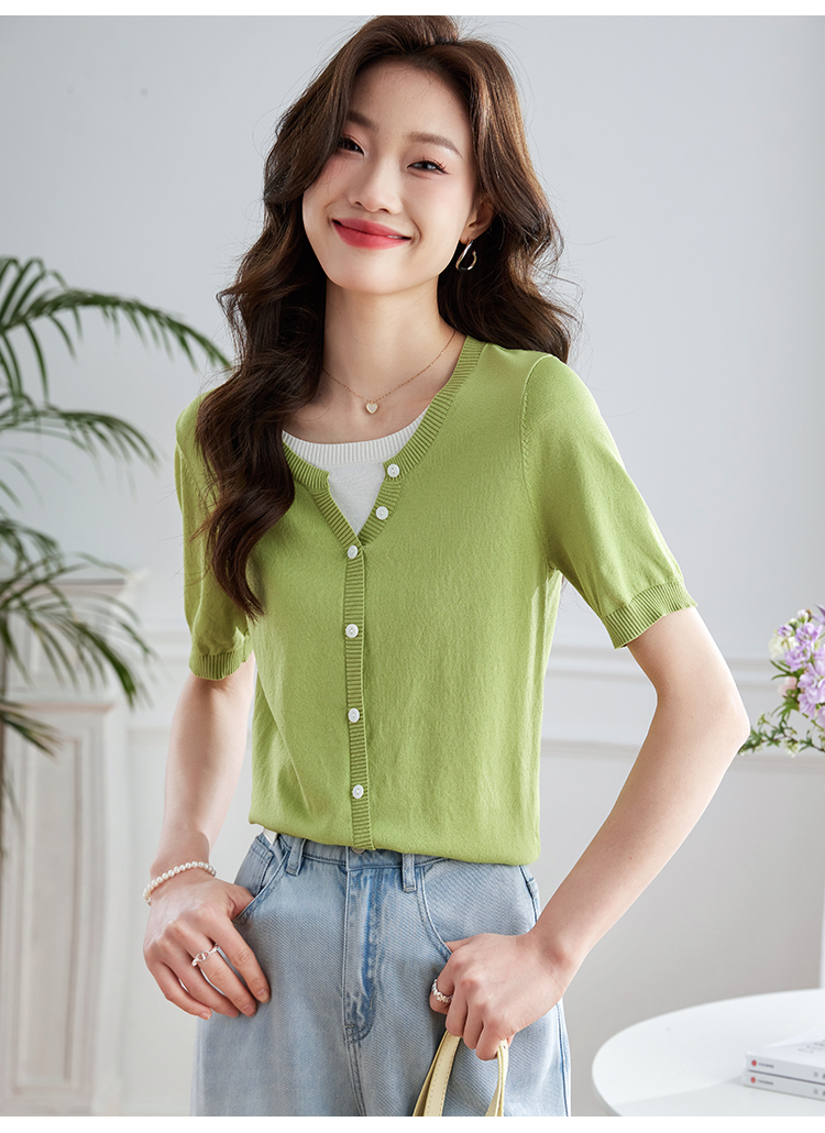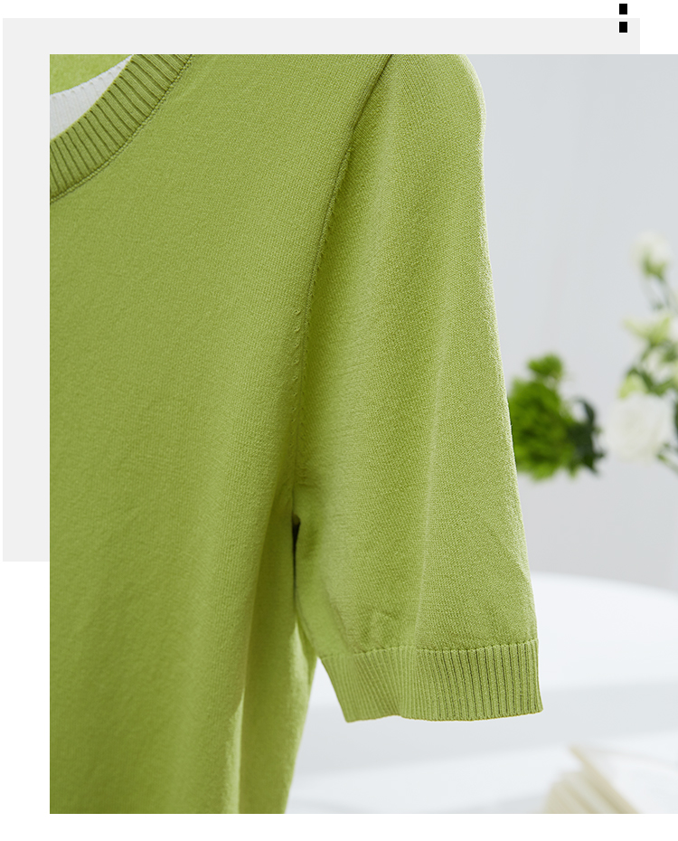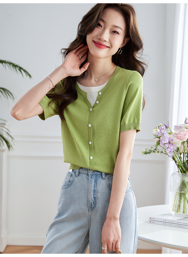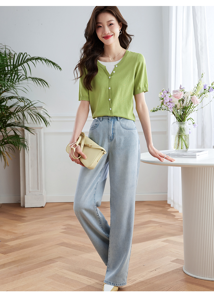 【专属特价】熙世界假两件短袖针织衫女薄款2025春夏新款别致冰丝上衣