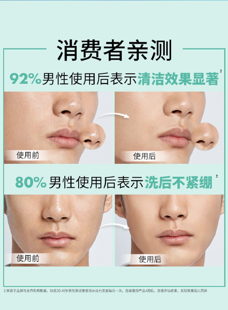碧欧泉男士专用洗面奶水动力洁面乳护肤品补水保湿清爽不紧绷125ml