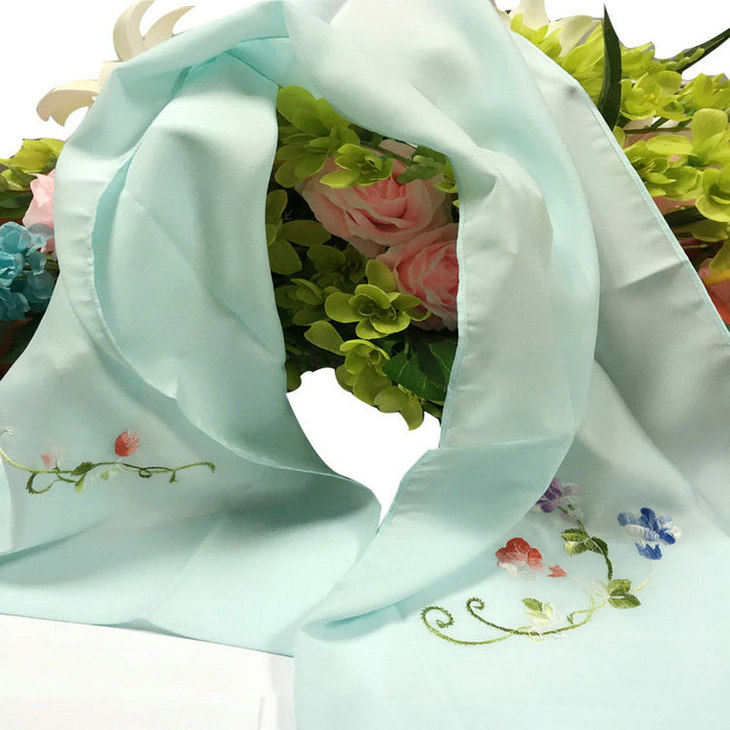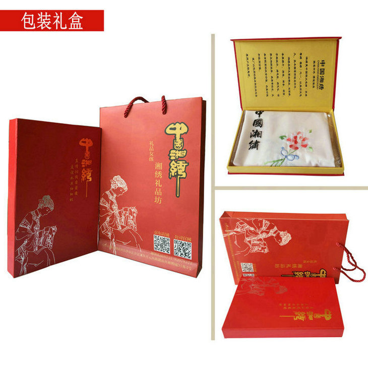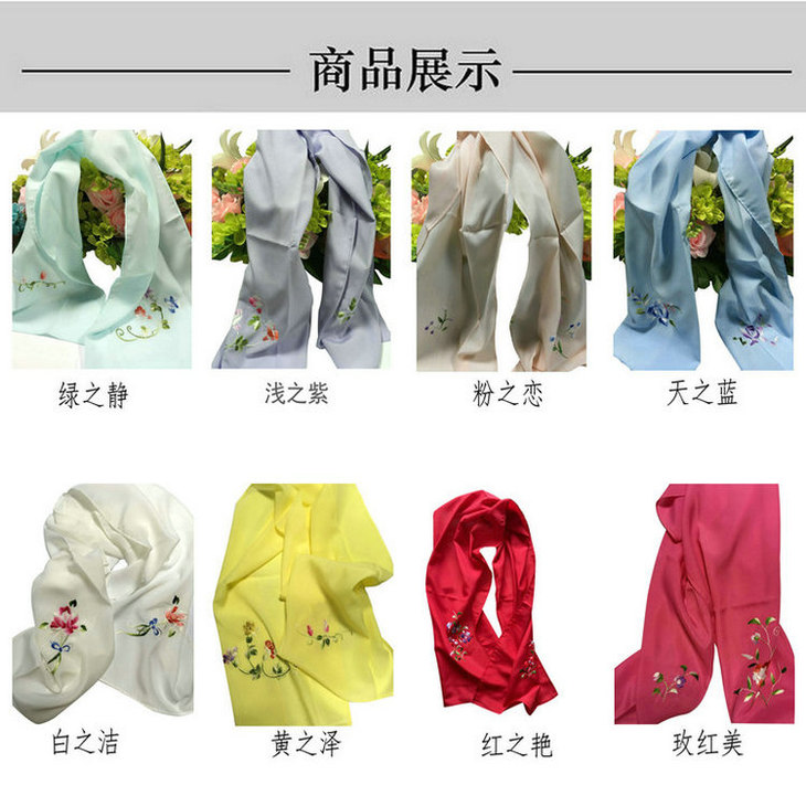 凯崎湘绣 仿丝围巾 纯手工双面刺绣 绣花丝巾 古典风礼品 出国送老外随手礼白色平金多款可选