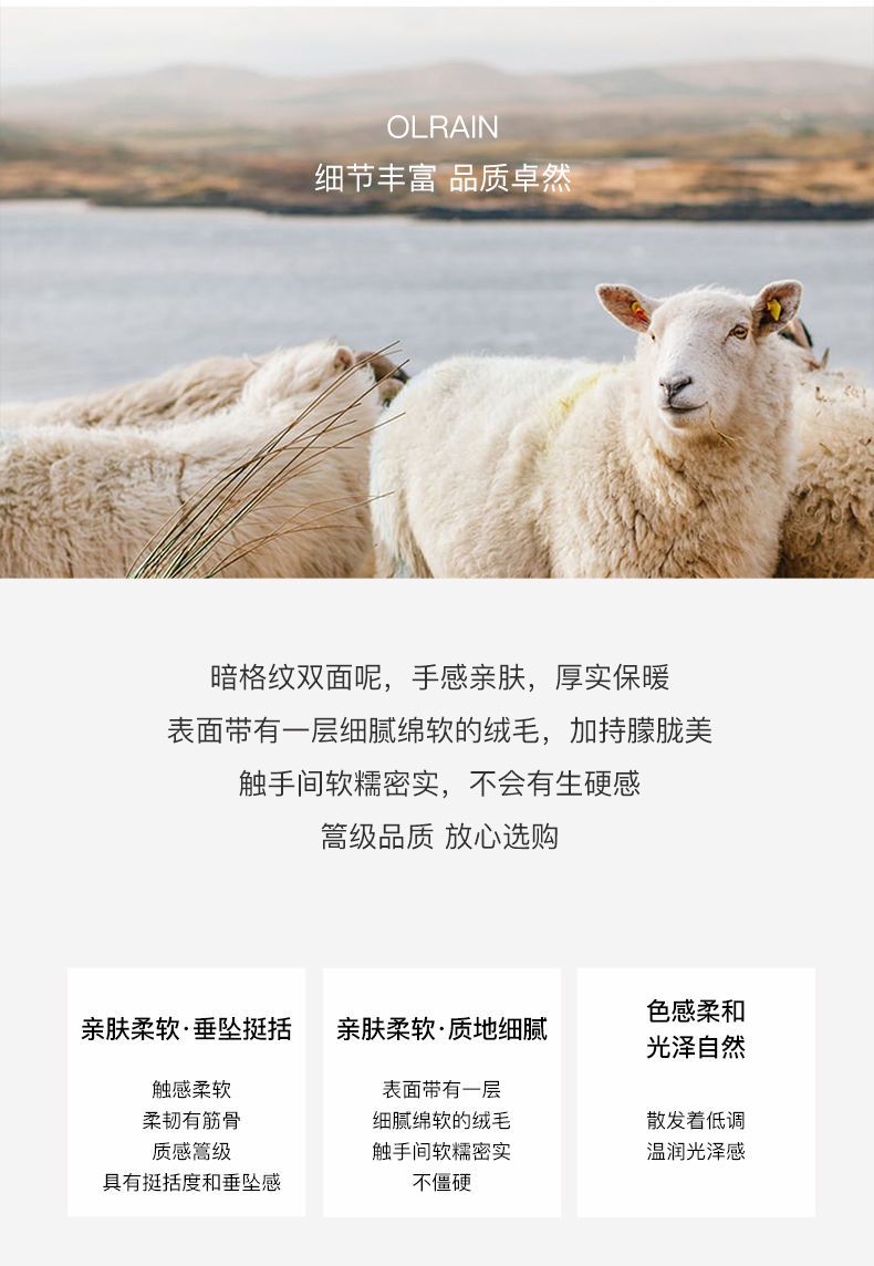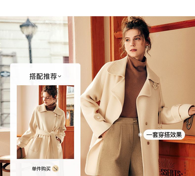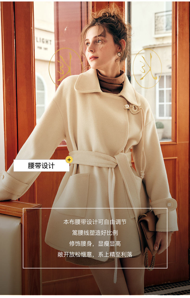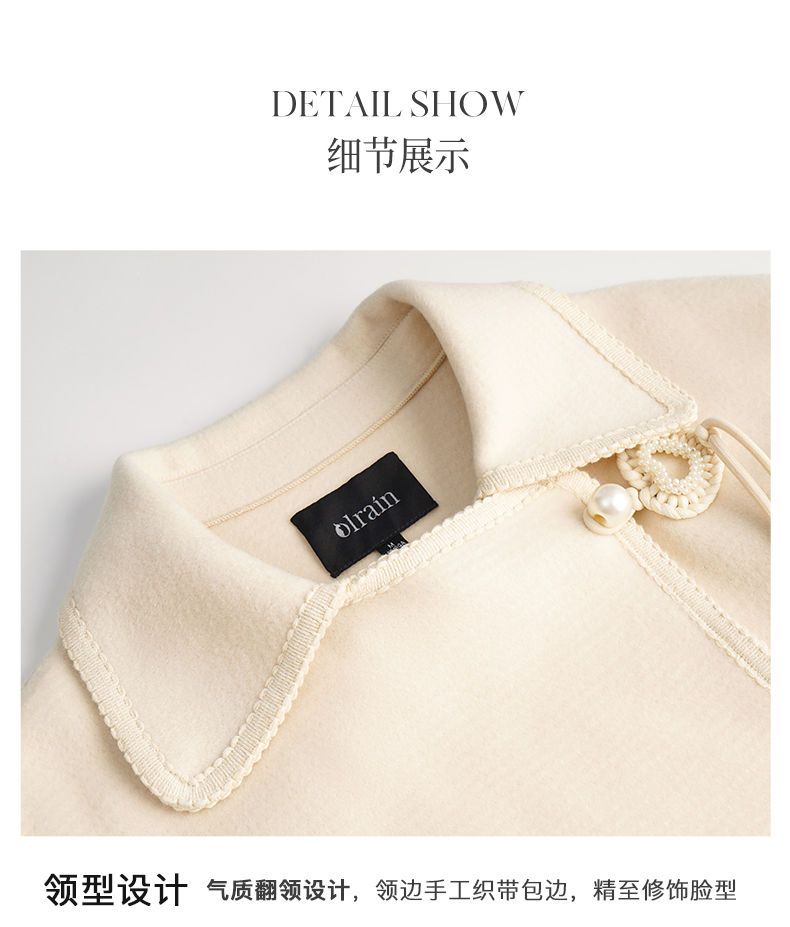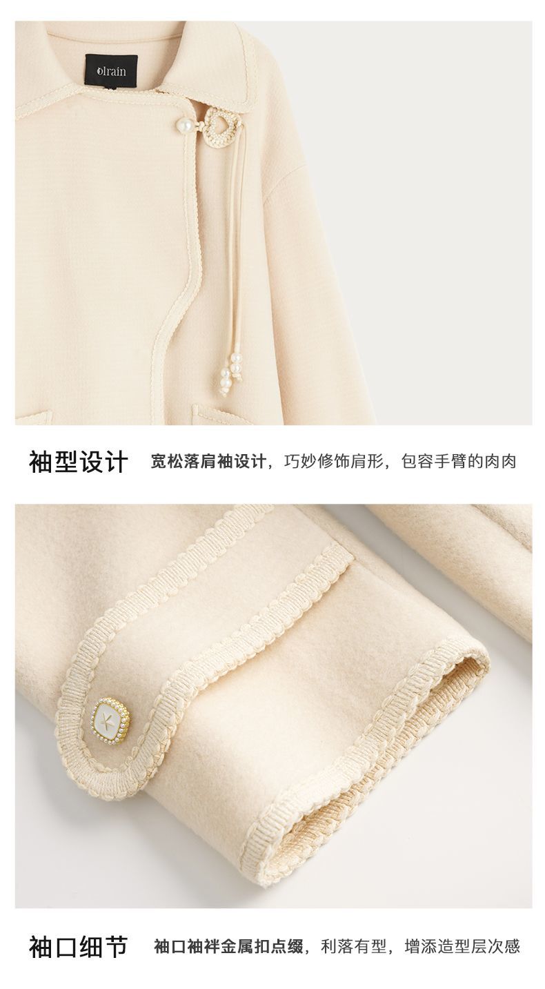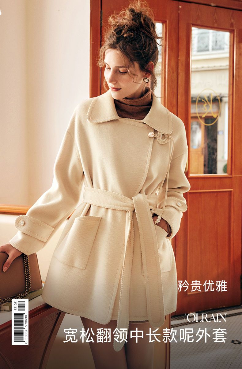 OLrain欧芮儿法式中长款双面毛呢外套女春2025新款两穿加厚大衣