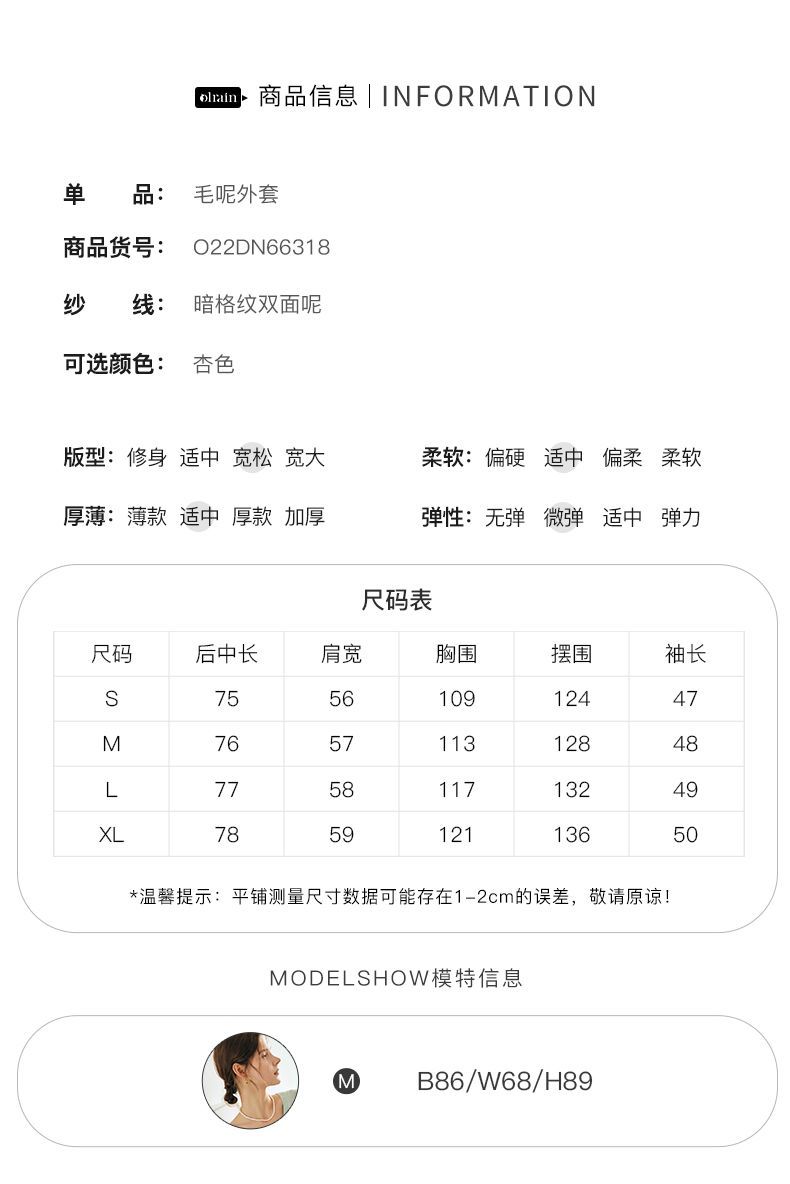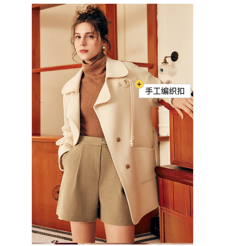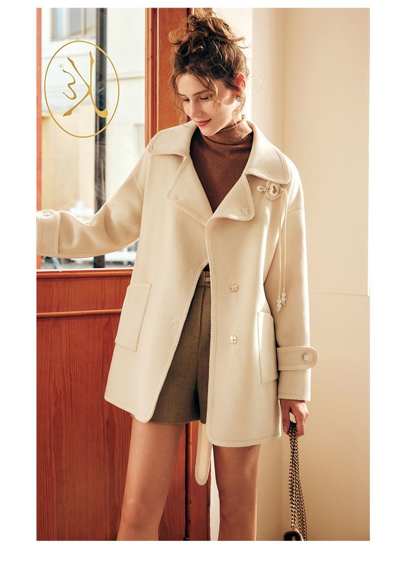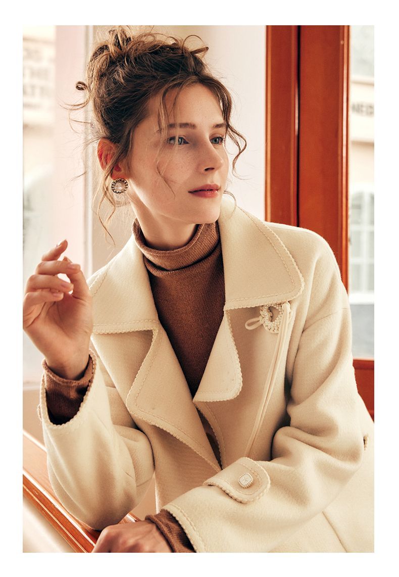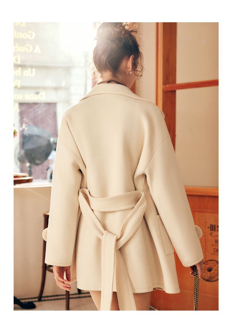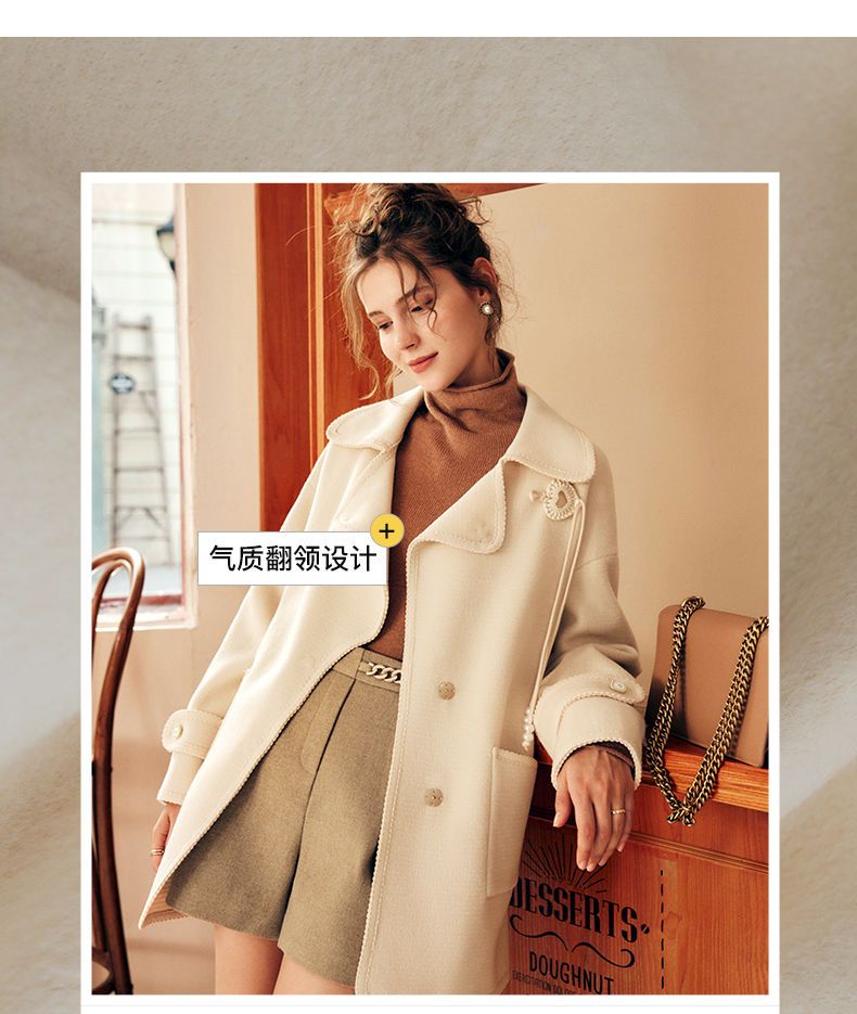 OLrain欧芮儿法式中长款双面毛呢外套女春2025新款两穿加厚大衣