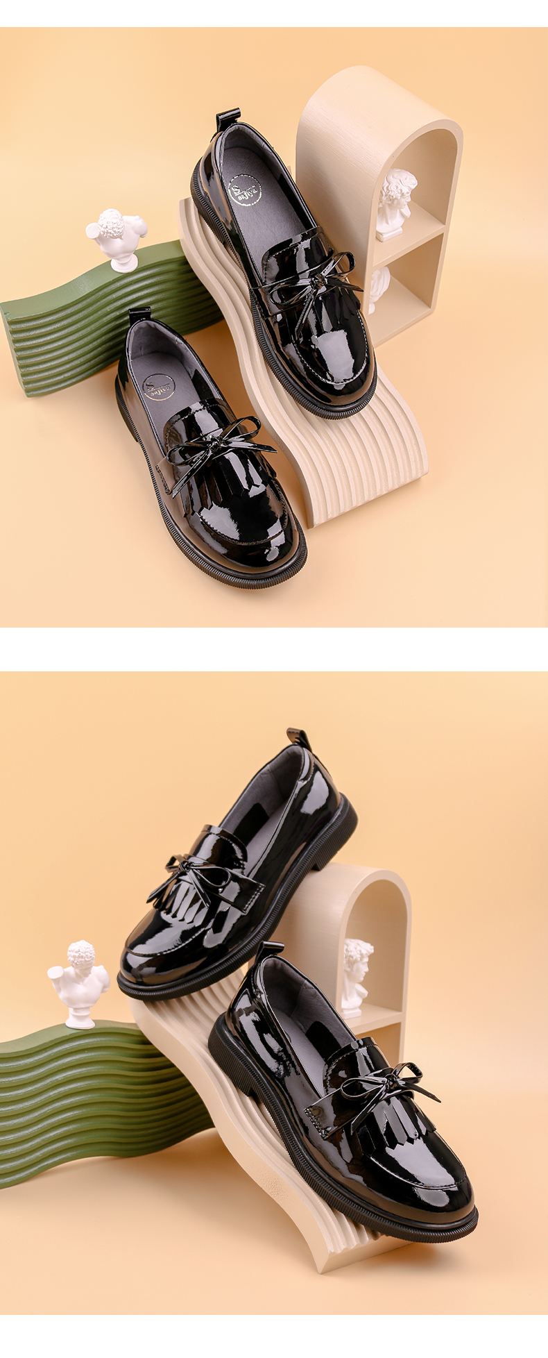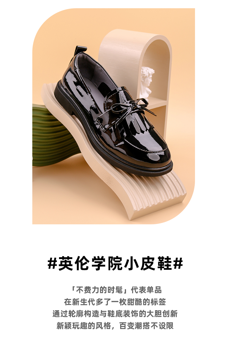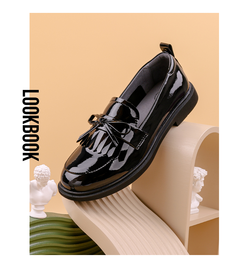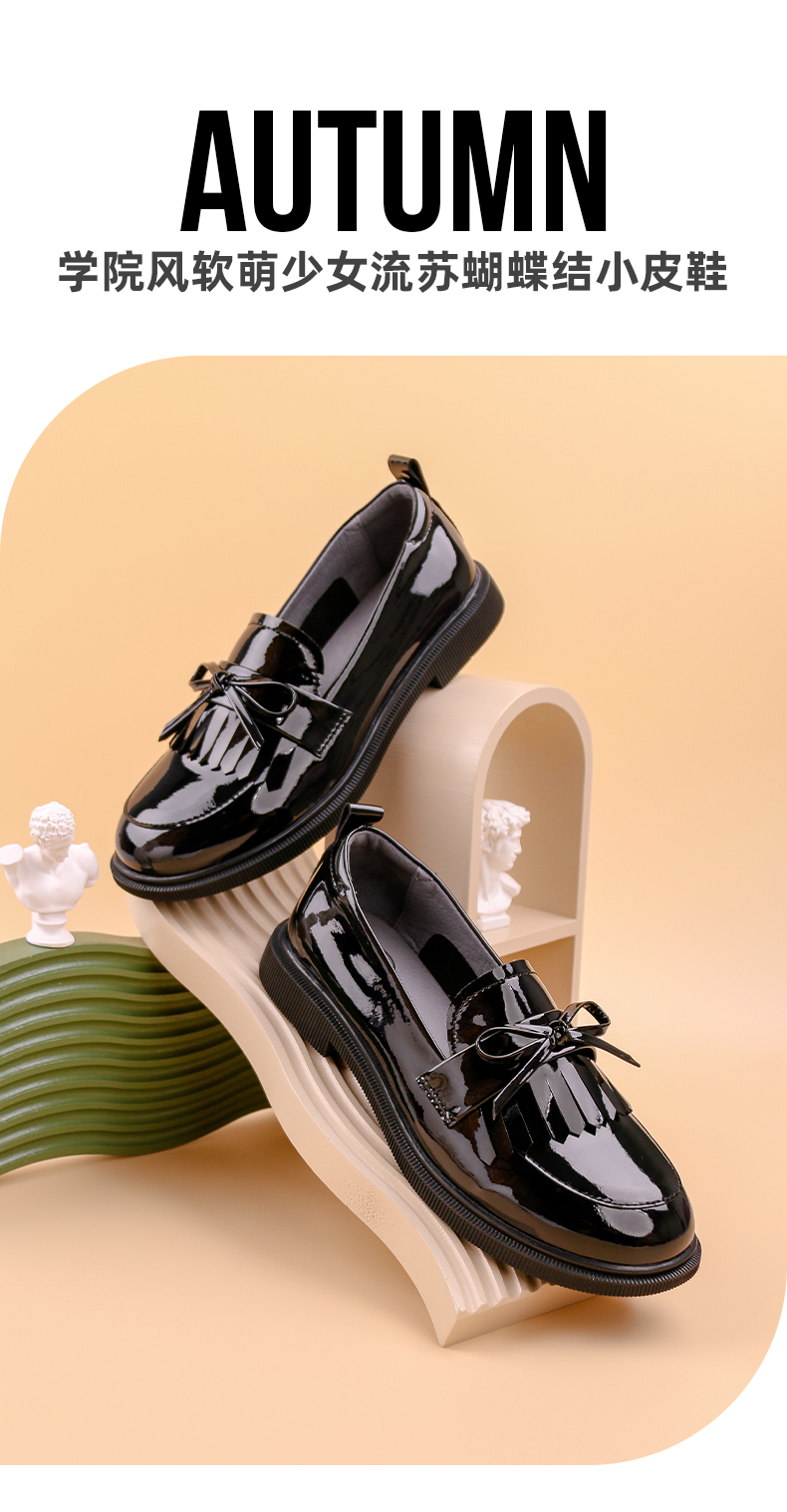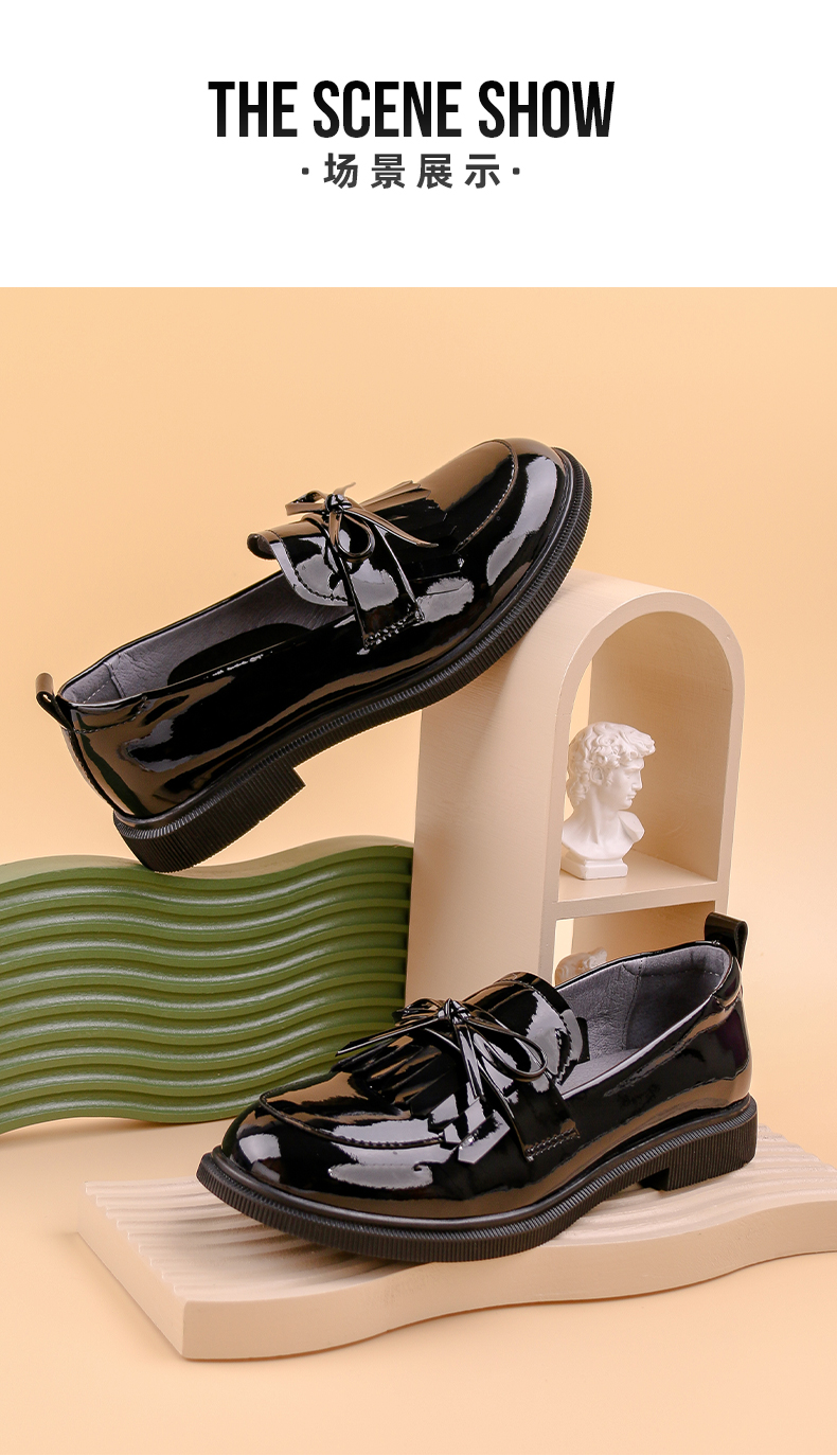 Safiya/索菲娅 2022早秋学院风一脚蹬乐福鞋少女流苏蝴蝶结小皮鞋 SF23112009